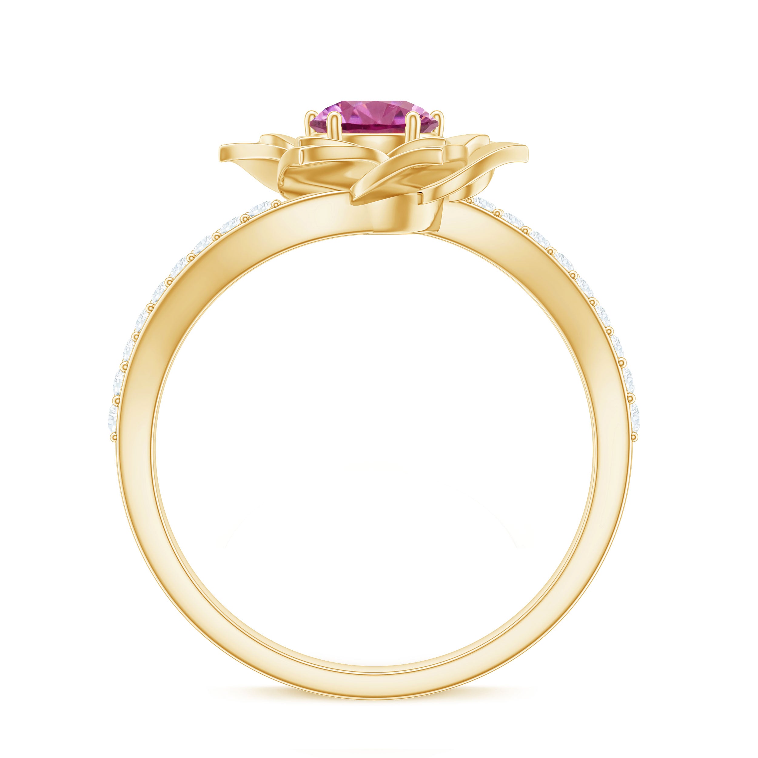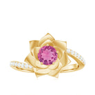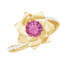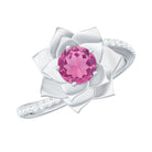 Show off your personal fashion with the exquisite Pink Tourmaline Gold Floral Ring, adorned with dazzling Round Shape Pink Tourmaline and Diamond stones. This stunning Bypass Flower Engagement Ring is a one-of-a-kind piece that any woman would love to wear.