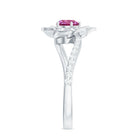 Pink Tourmaline and Diamond Flower Engagement Ring with Bypass Shank