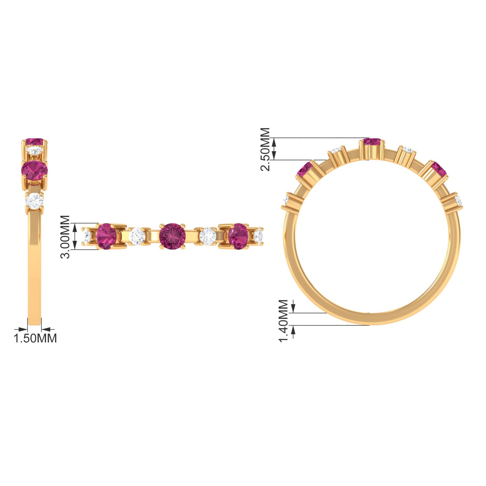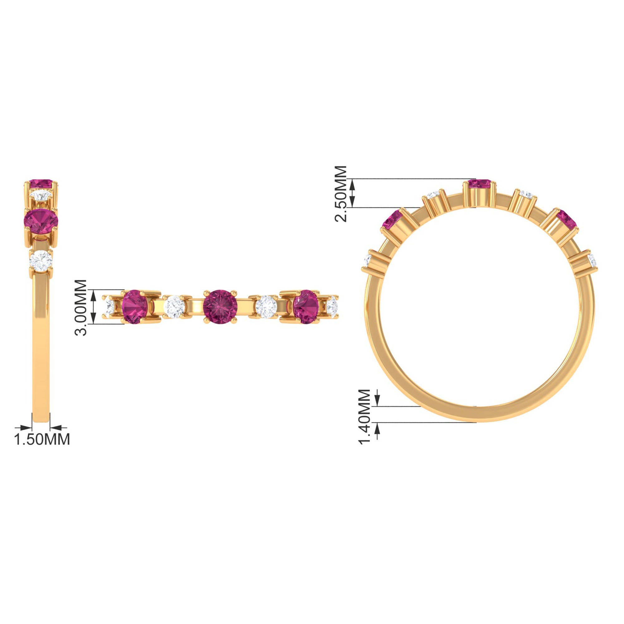 Pink Tourmaline and Diamond Half Eternity Ring