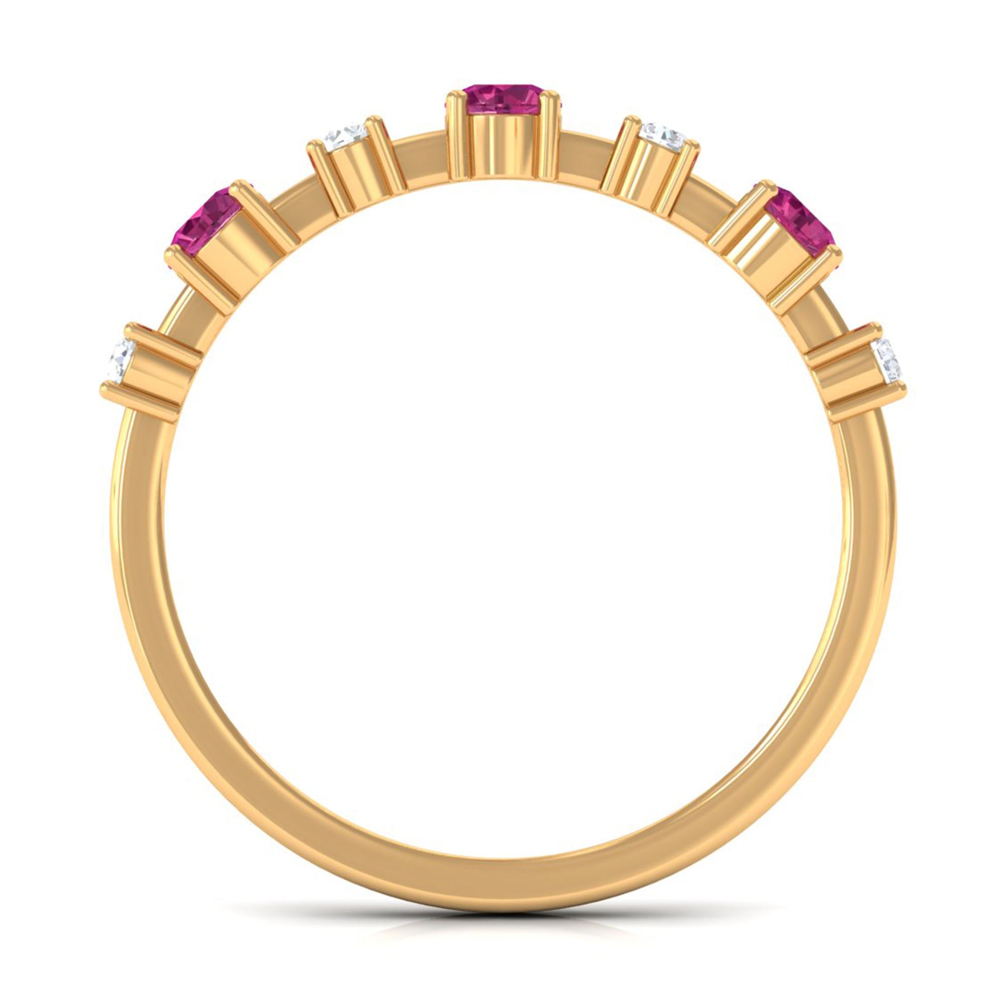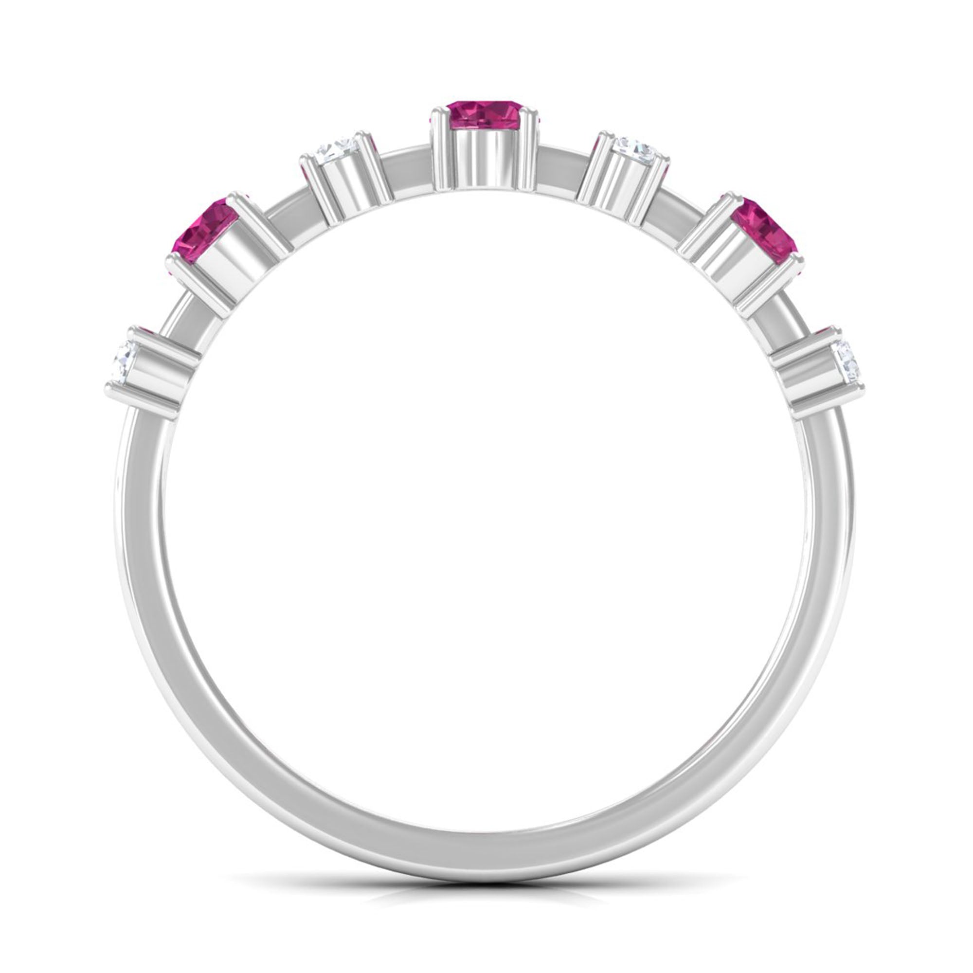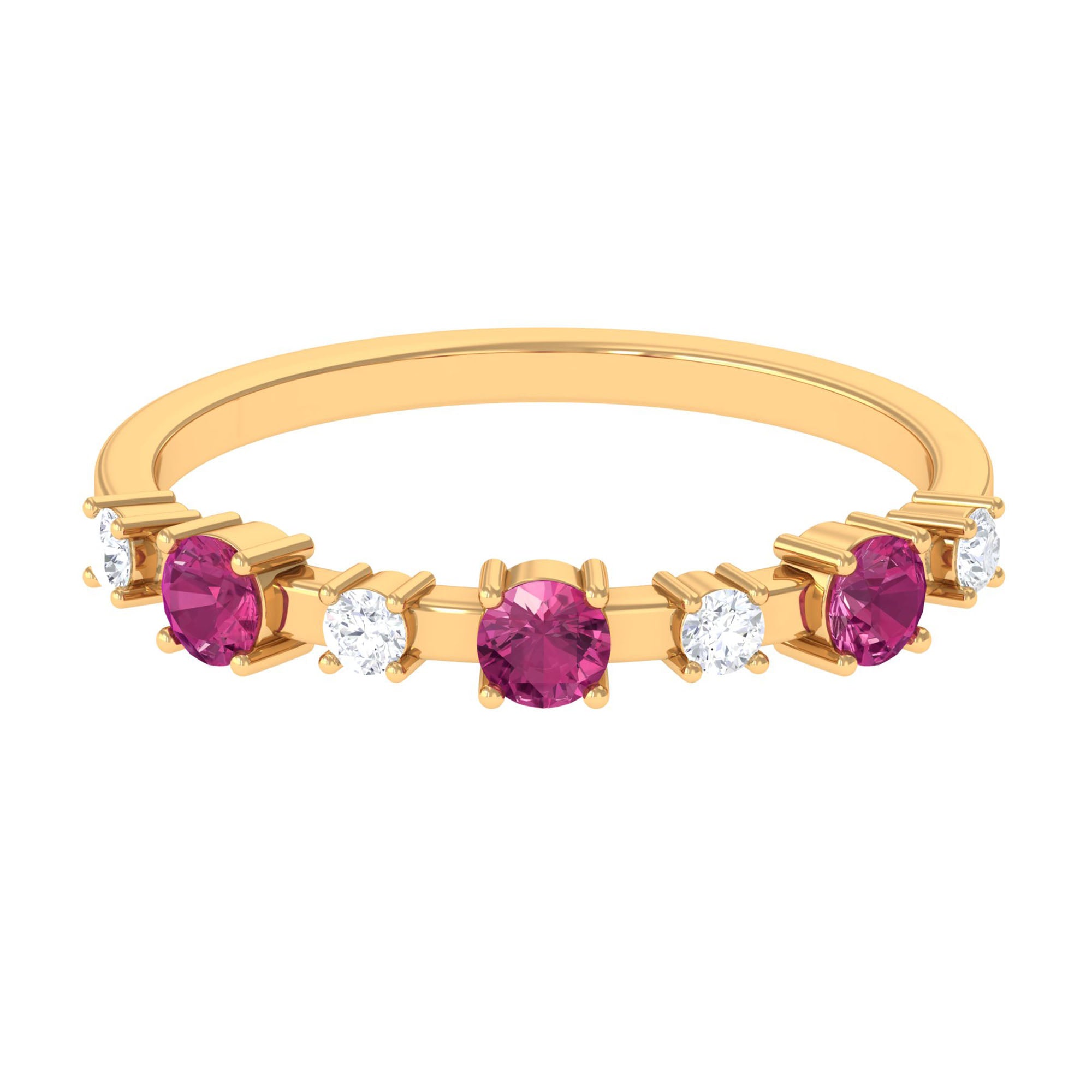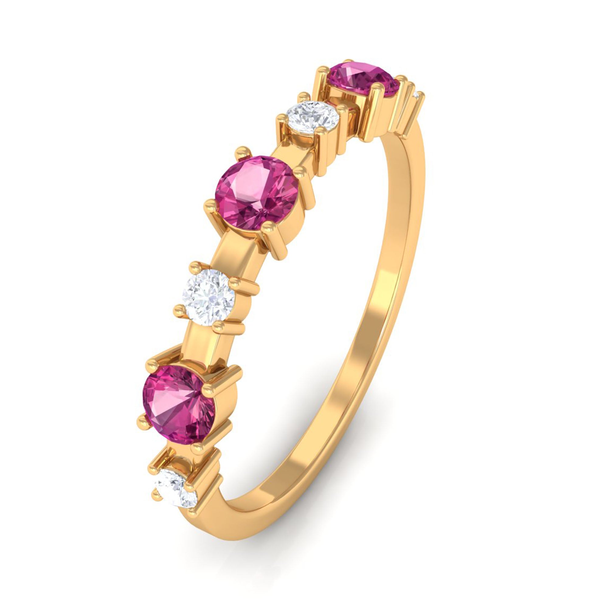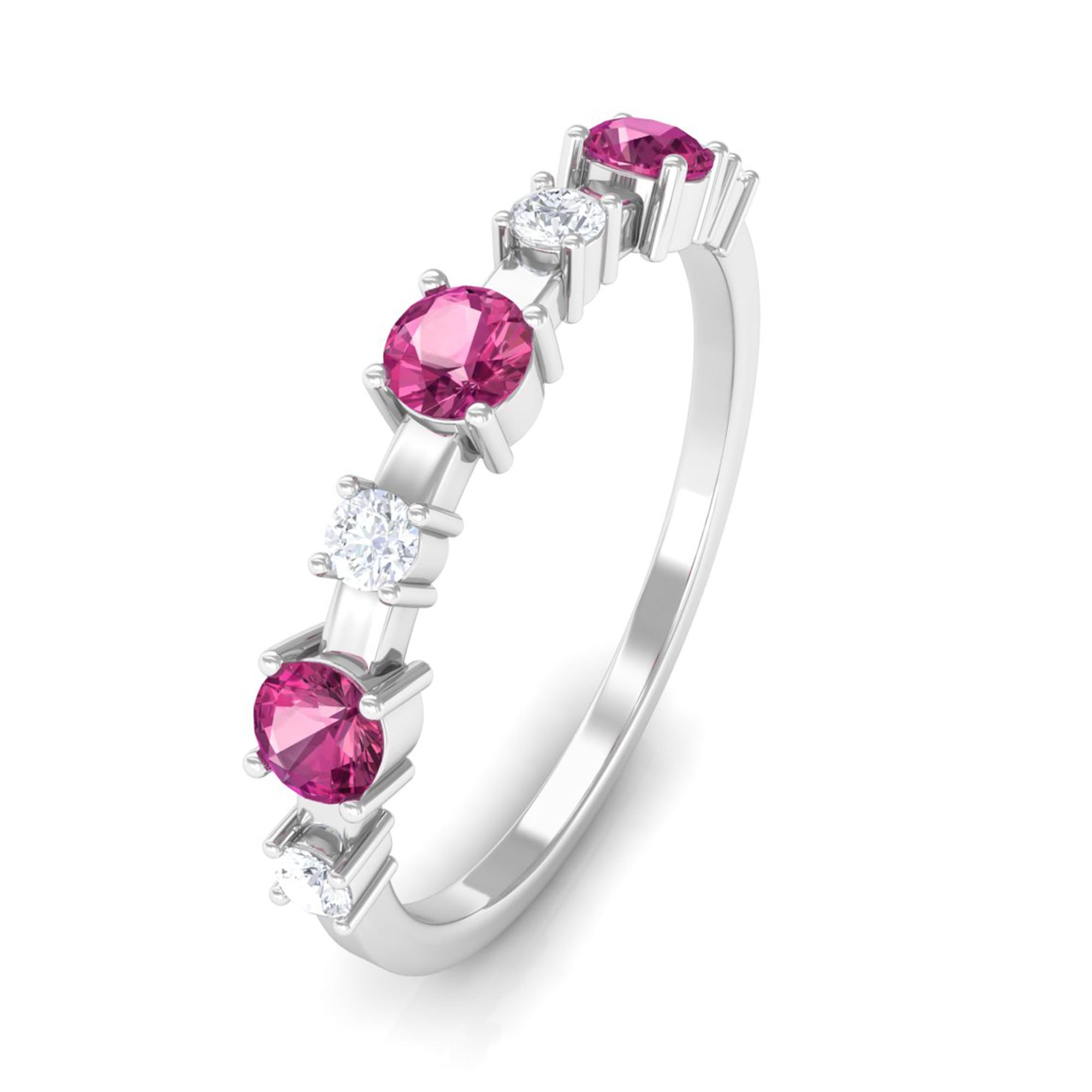 Experience the timeless elegance of this Pink Tourmaline and Diamond Half Eternity Ring. A stunning combination of beauty and brilliance.