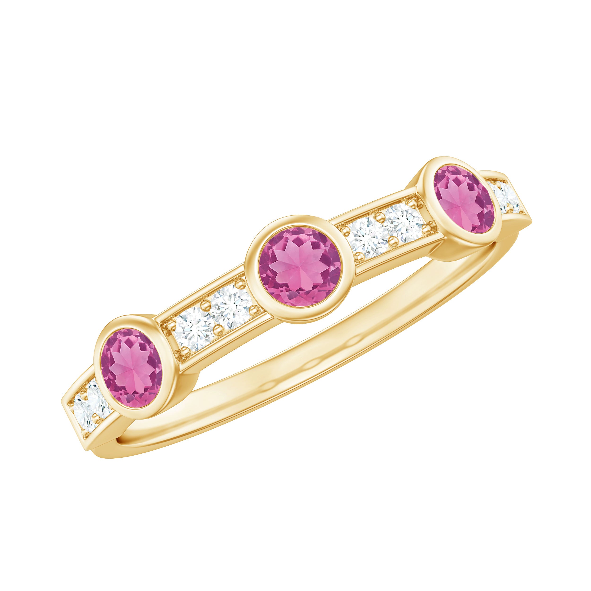 Pink Tourmaline and Diamond Minimal Half Eternity Band Ring