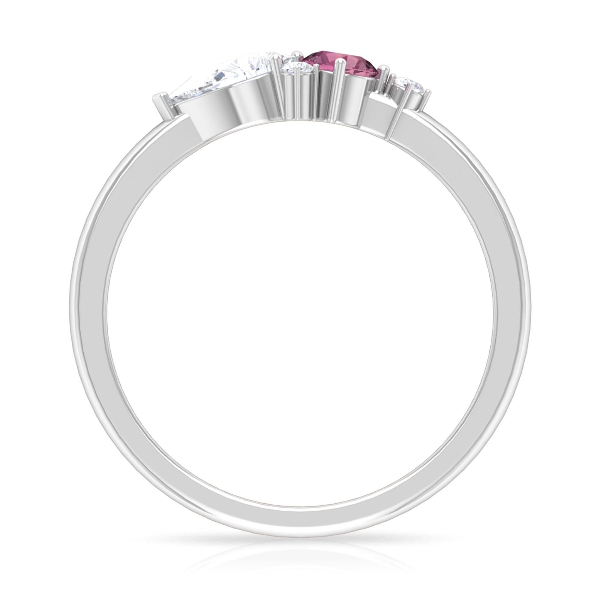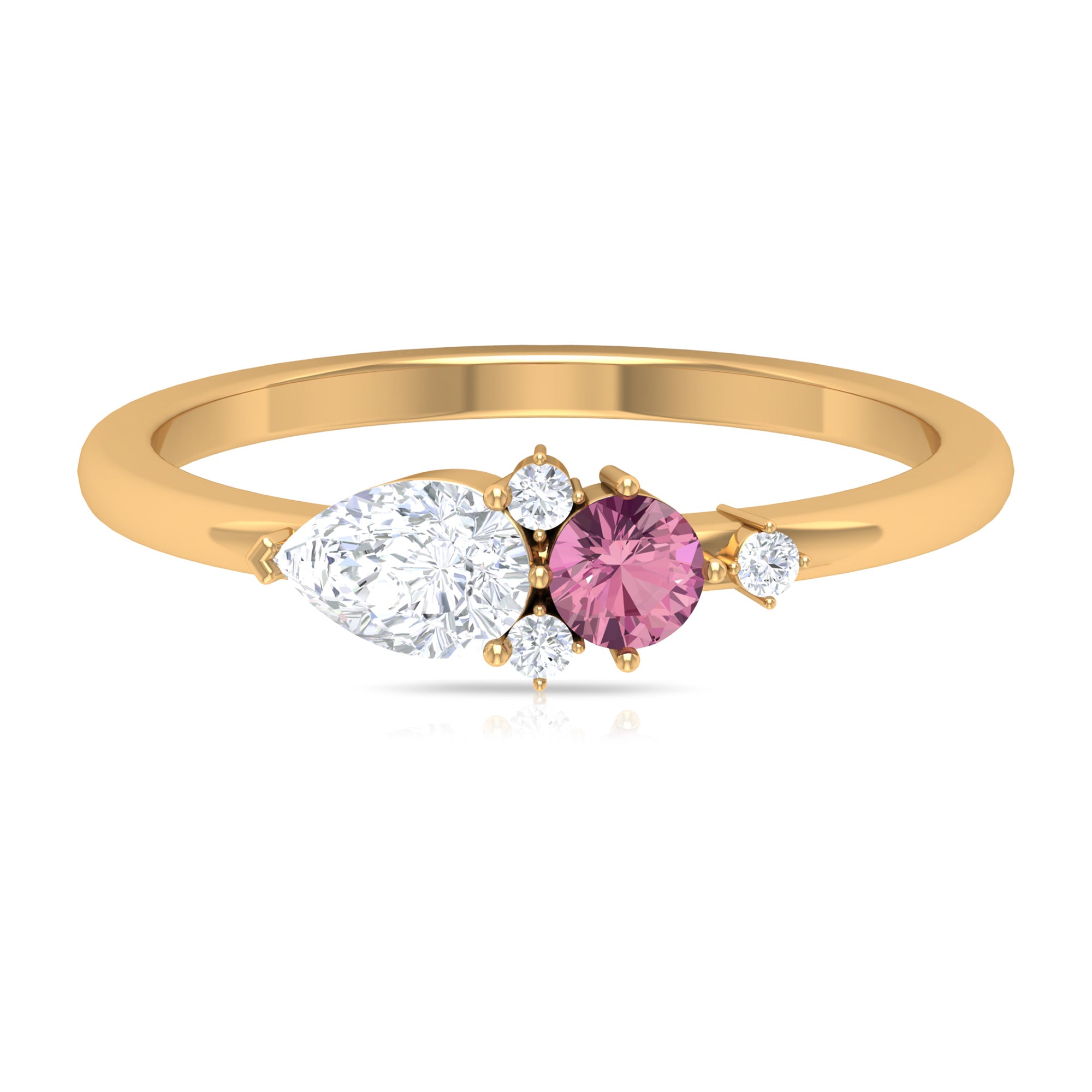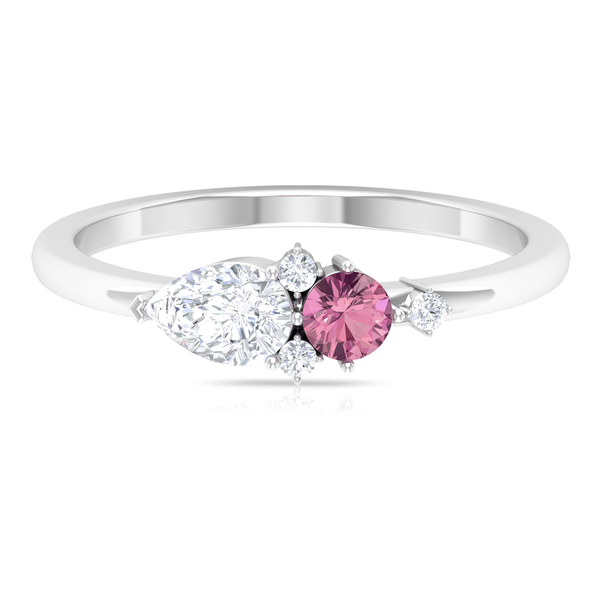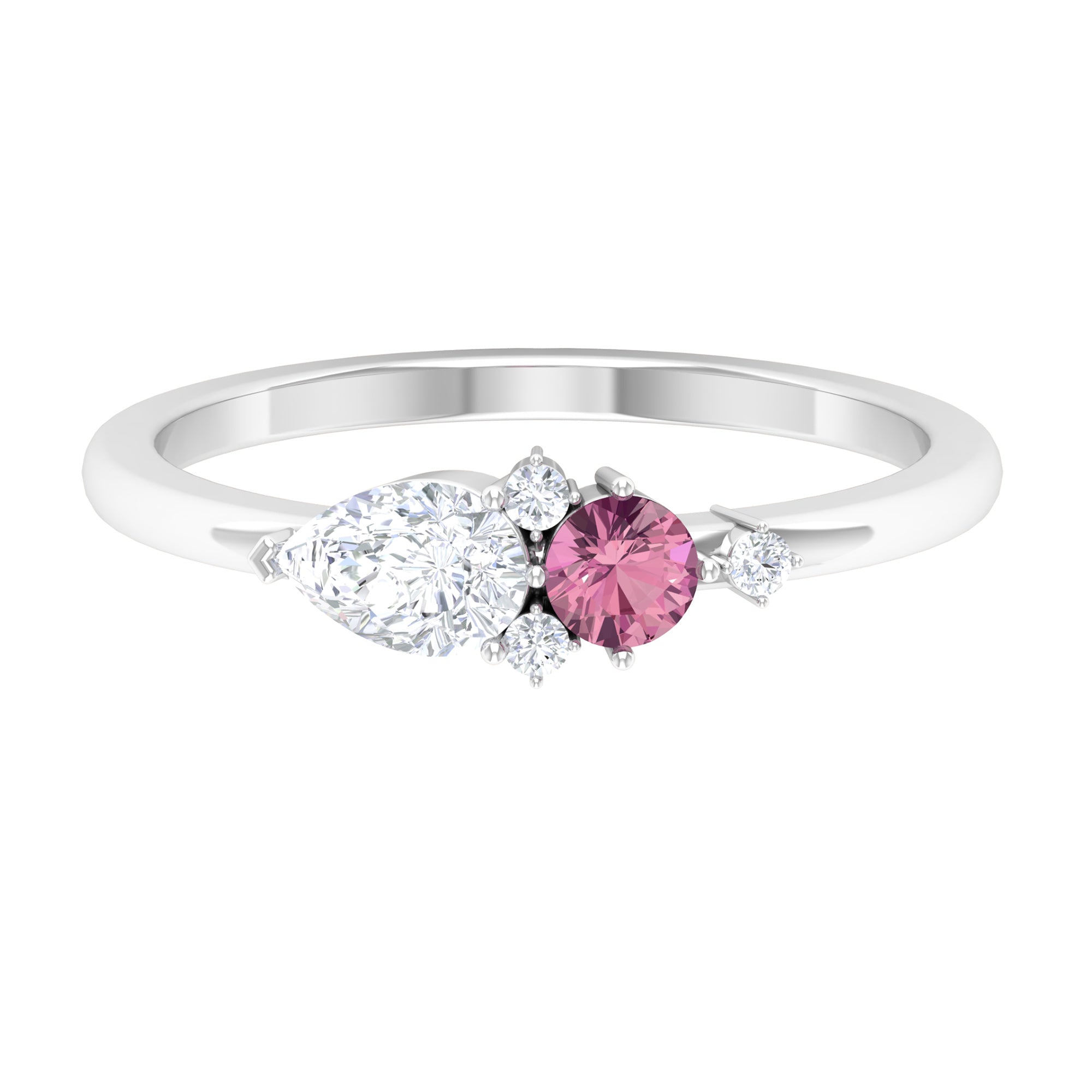 The stunning Cluster Promise Ring is embellished with Round Shape Pink Tourmaline, while Pear and Round Shape Moissanite secured in Prong Setting set as a cluster. Sway her away by getting this gorgeous Pink Tourmaline Ring for her as a Birthday Gift or Anniversary Gift, she would surely adore it for her whole life.