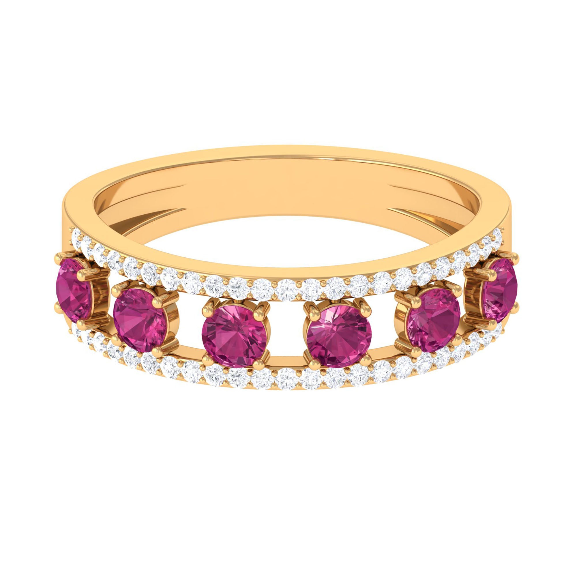 Celebrate your love with this Pink Tourmaline Anniversary Ring. Sparkling Diamond gemstones add a touch of brilliance to this special occasion.