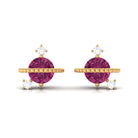Pink Tourmaline Celestial Stud Earrings with Diamond