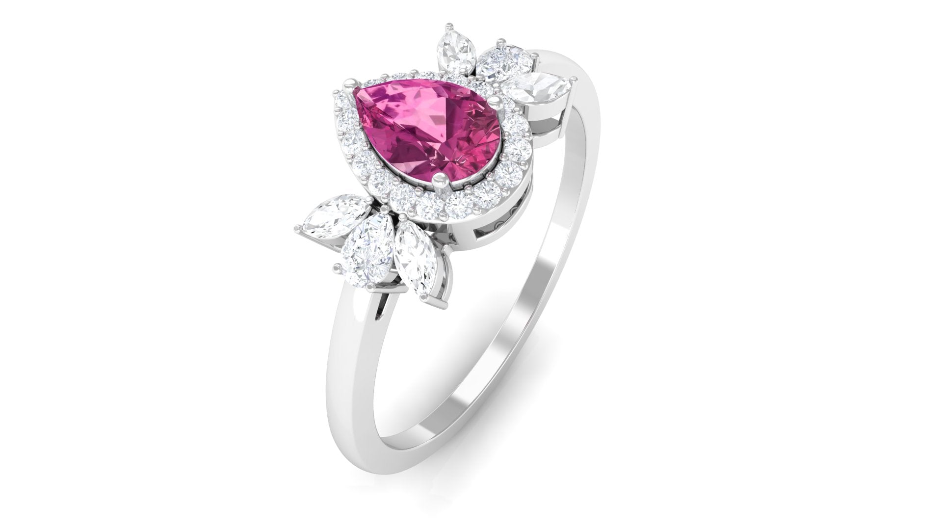 Pink Tourmaline Engagement Ring with Diamond Halo