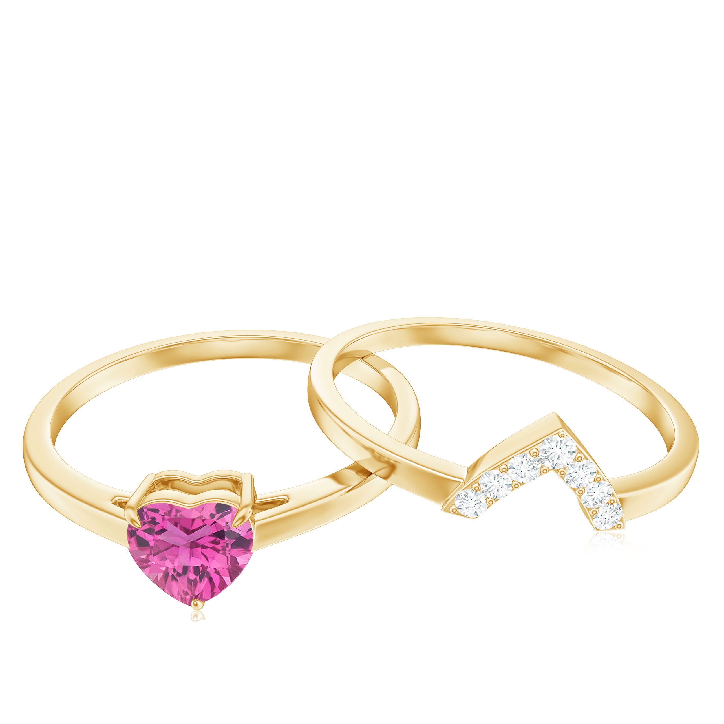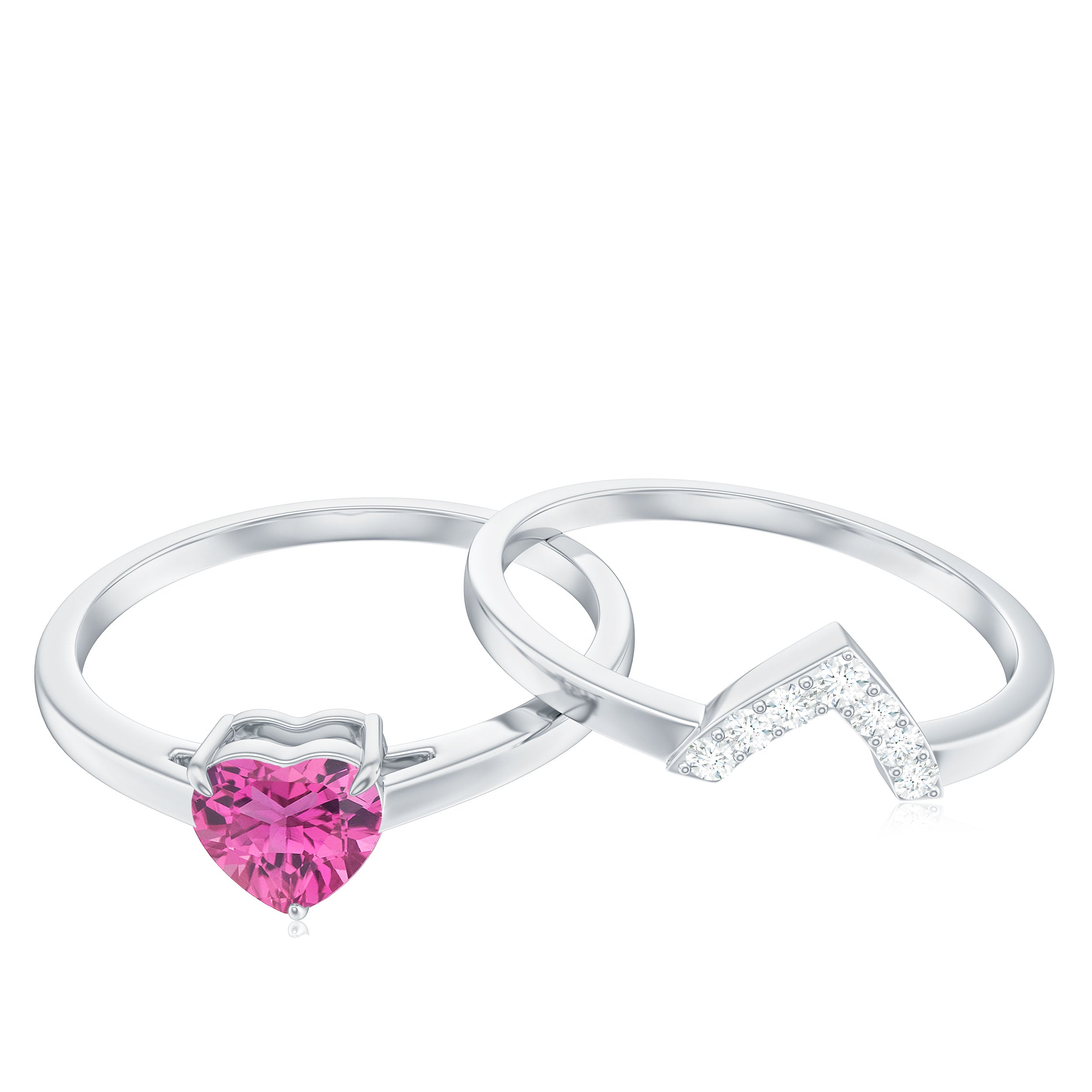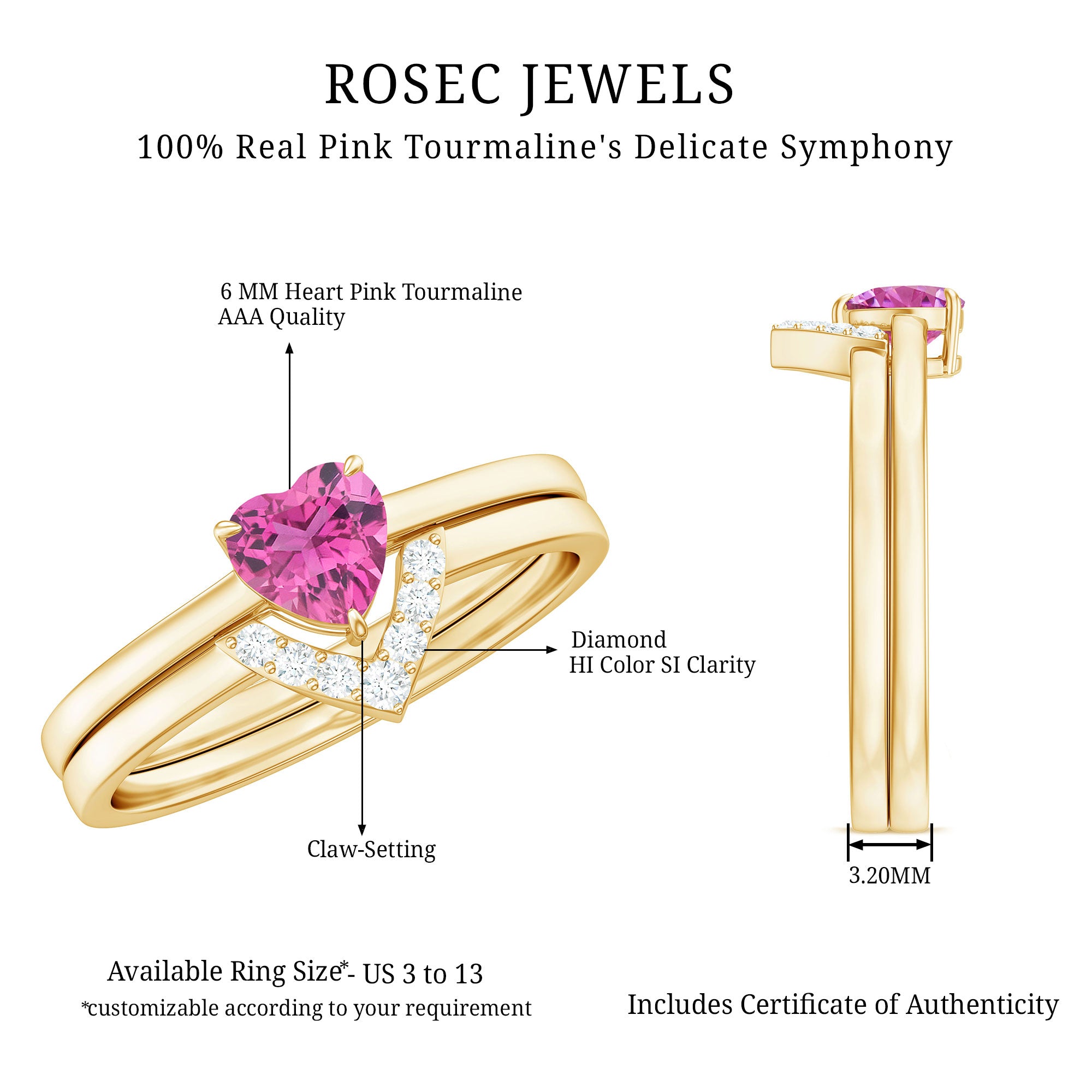 Embrace the language of love with this Pink Tourmaline Heart Ring Set. Sparkling Diamond amplifies the romance and beauty of this enchanting duo.