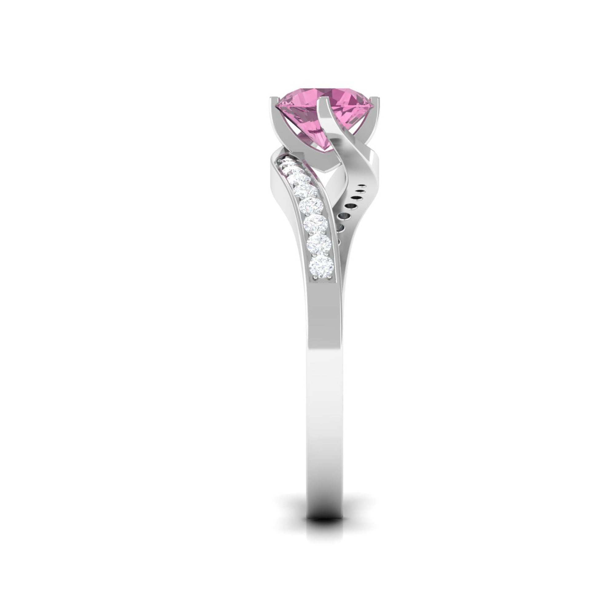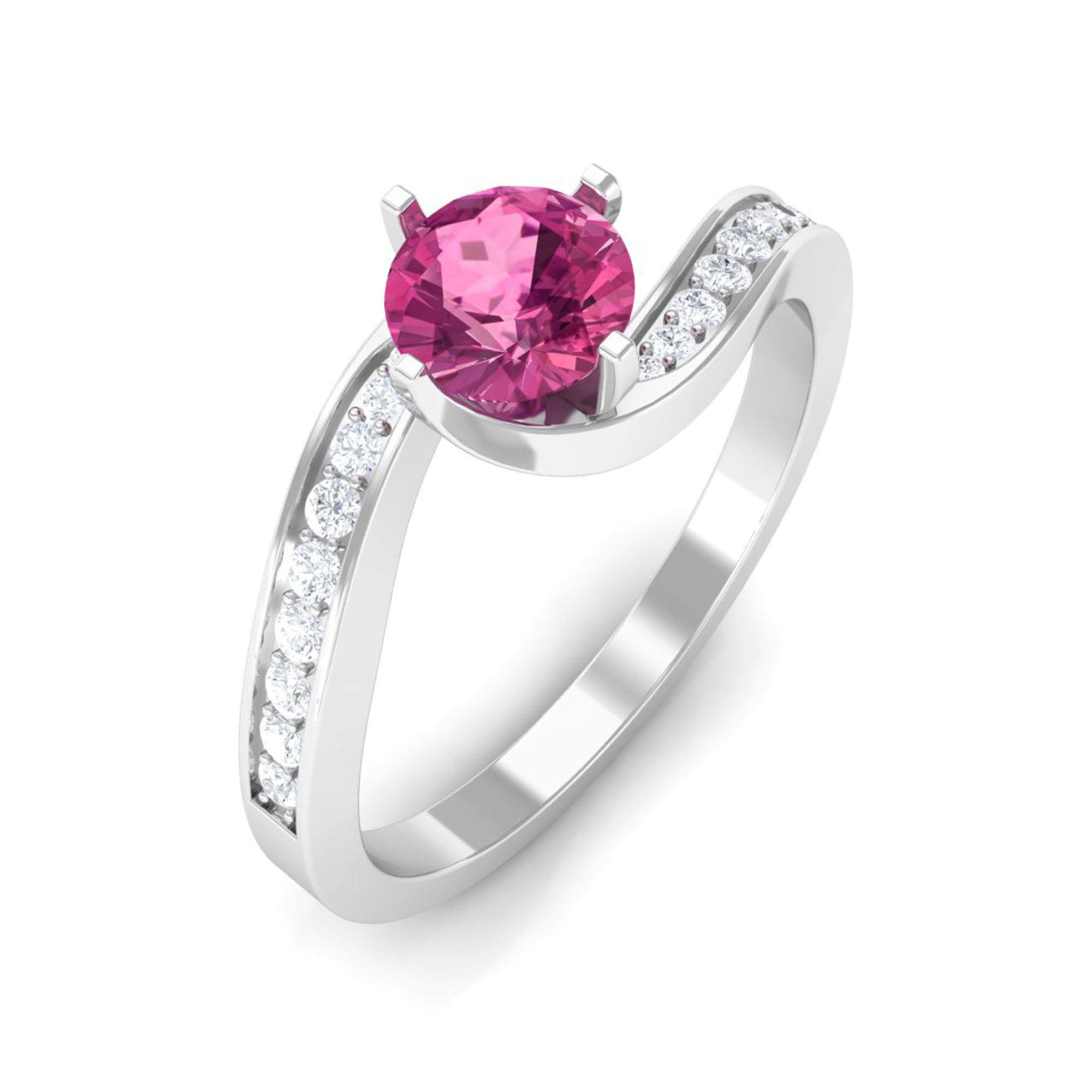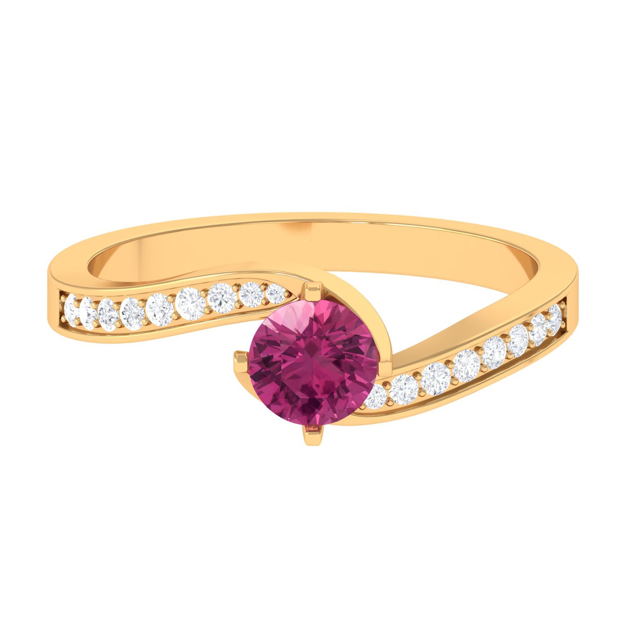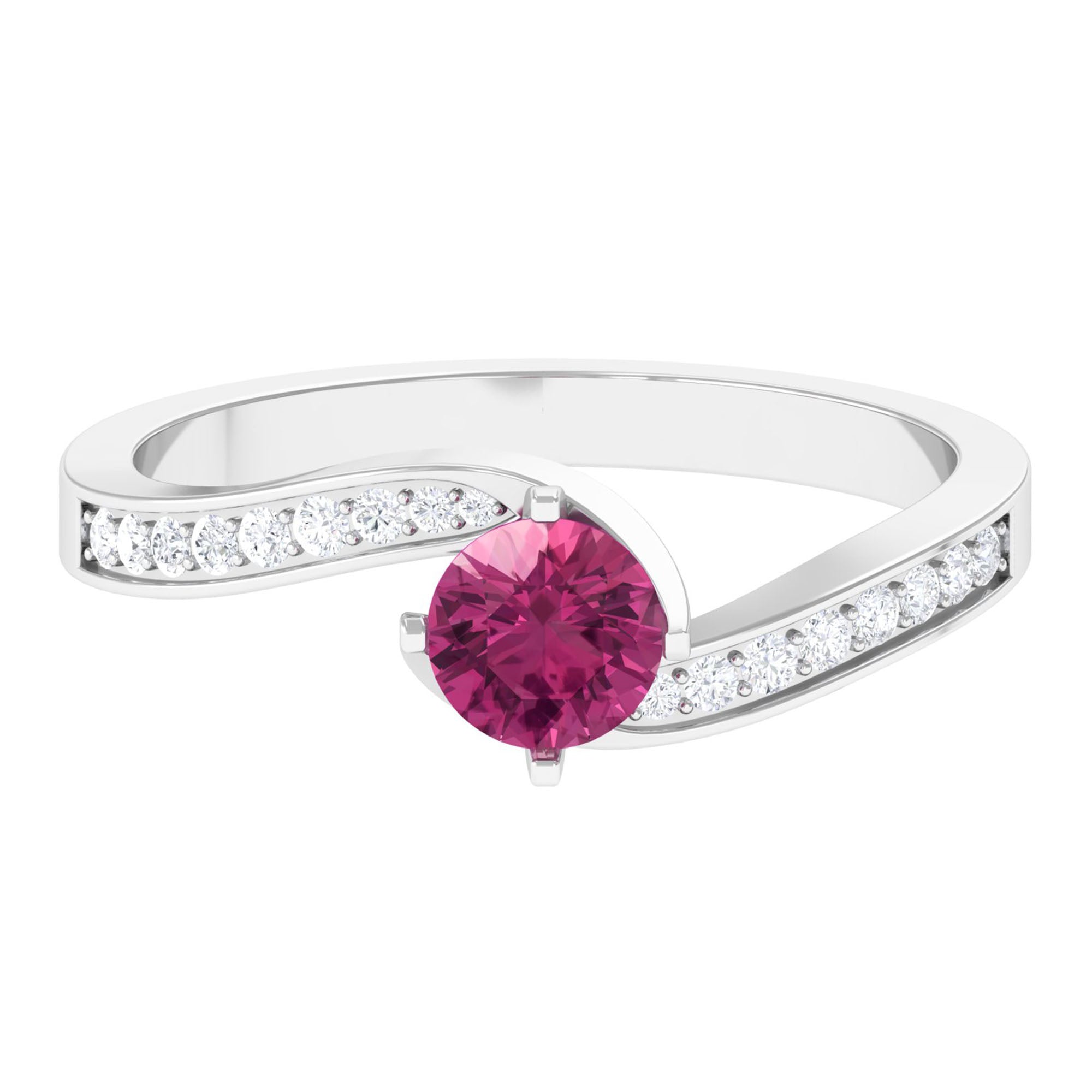 Pink Tourmaline Solitaire Bypass Ring with Diamond
