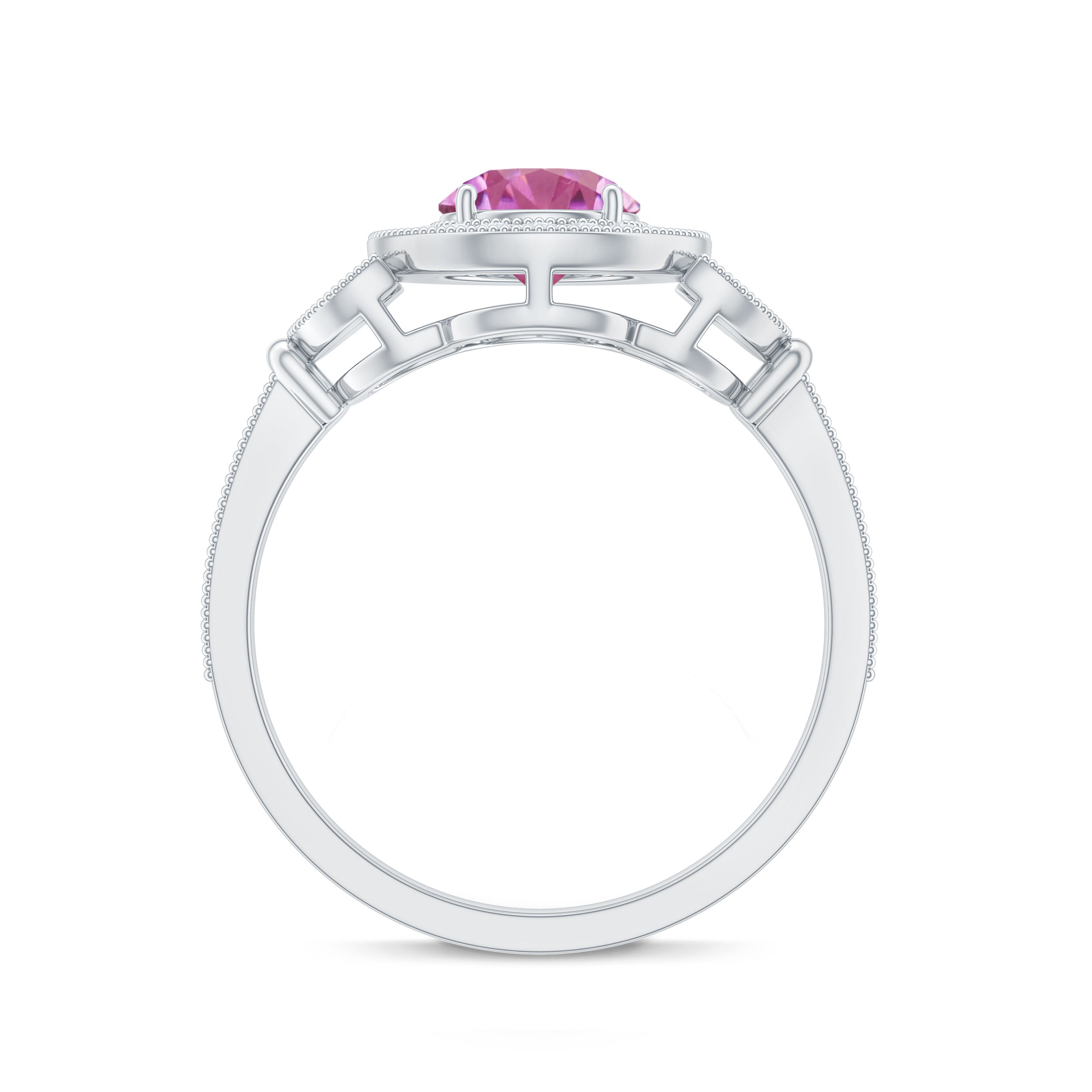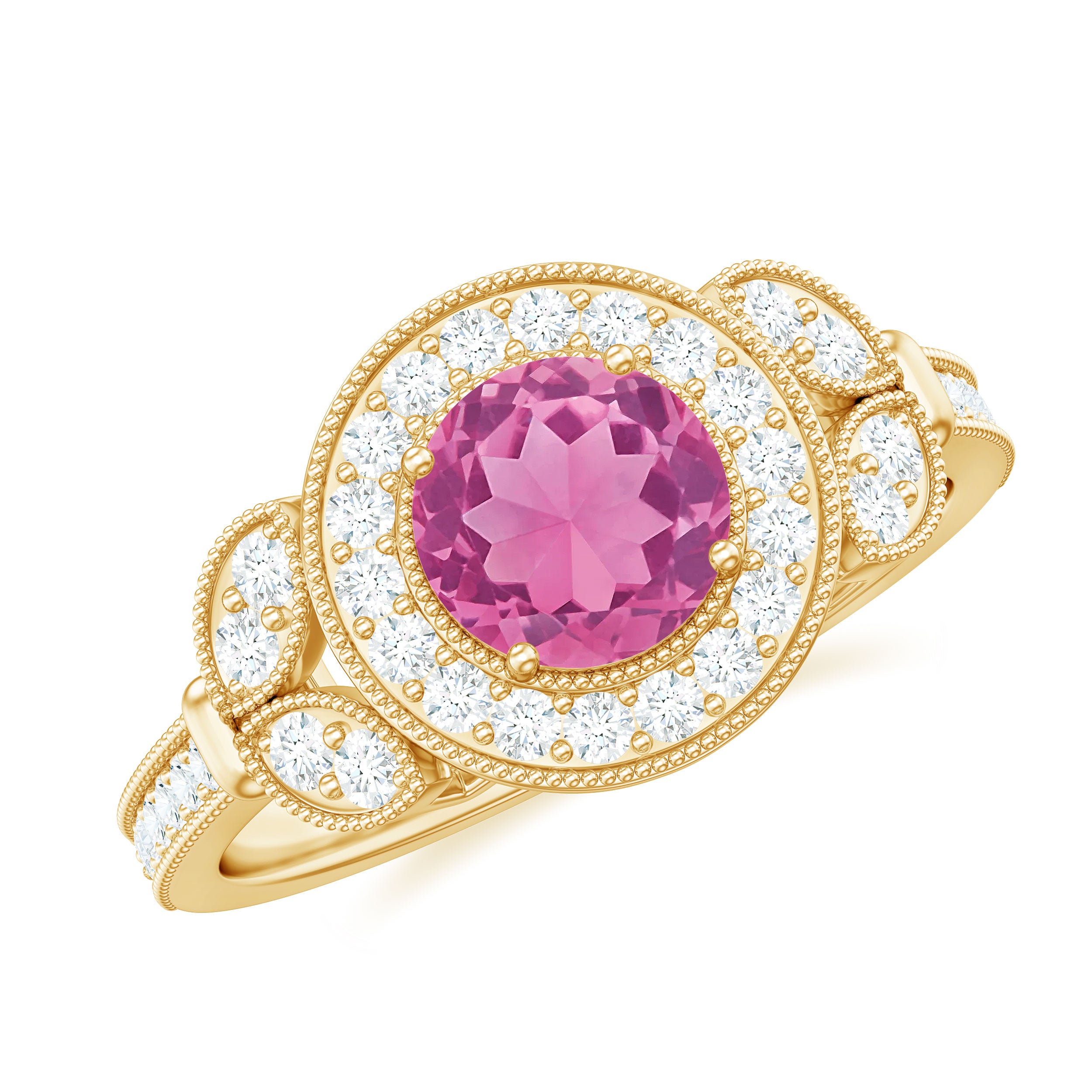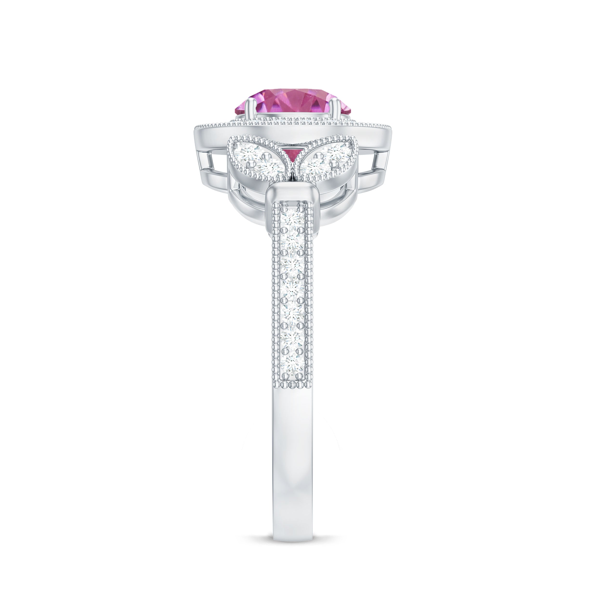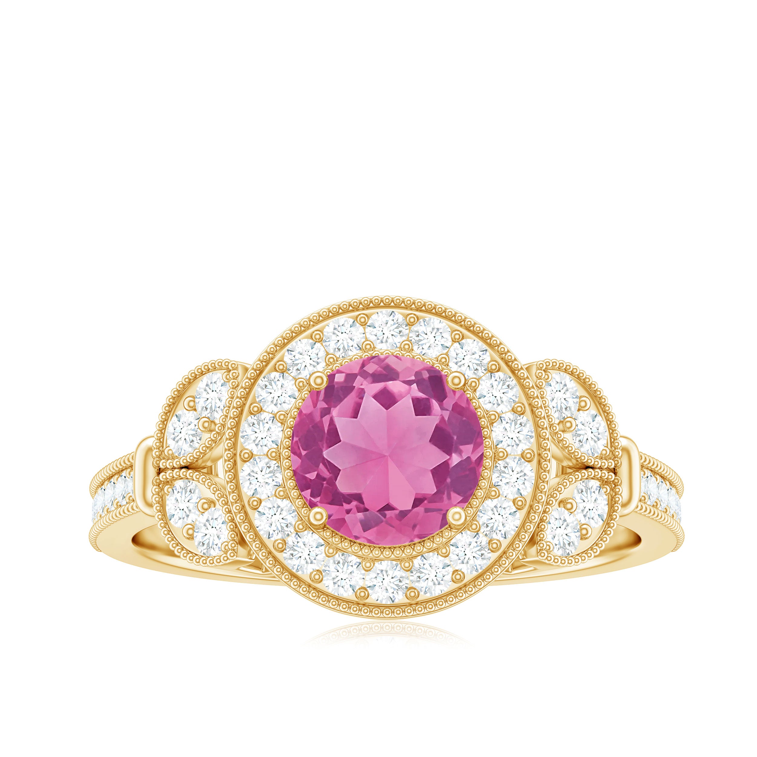 Pink Tourmaline Vintage Style Engagement Ring with Diamond