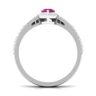 Leave her in awe with your impeccable choice of this exquisite ring set. The bridal set features a 5X7 mm pear-cut Pink tourmaline, delicately held in a prong setting. The ring set is enhanced by a halo of round, gleaming Diamond stones that encircle the Pink tourmaline, adding a captivating sparkle. The chevron band, adorned with more radiant Diamond stones, beautifully complements the centerpiece. Present her with this remarkable ring set and watch her marvel at its exquisite craftsmanship and timeless elegance.