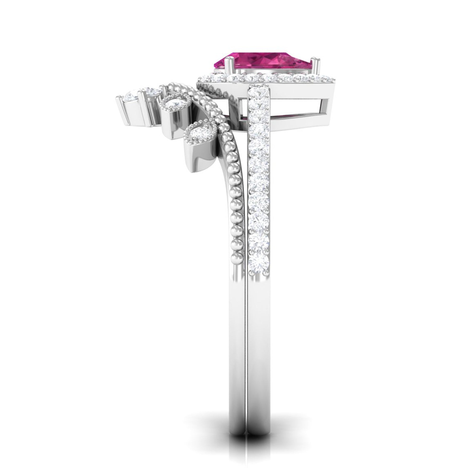 Pink tourmaline Vintage Teardrop Wedding Ring Set with Diamond