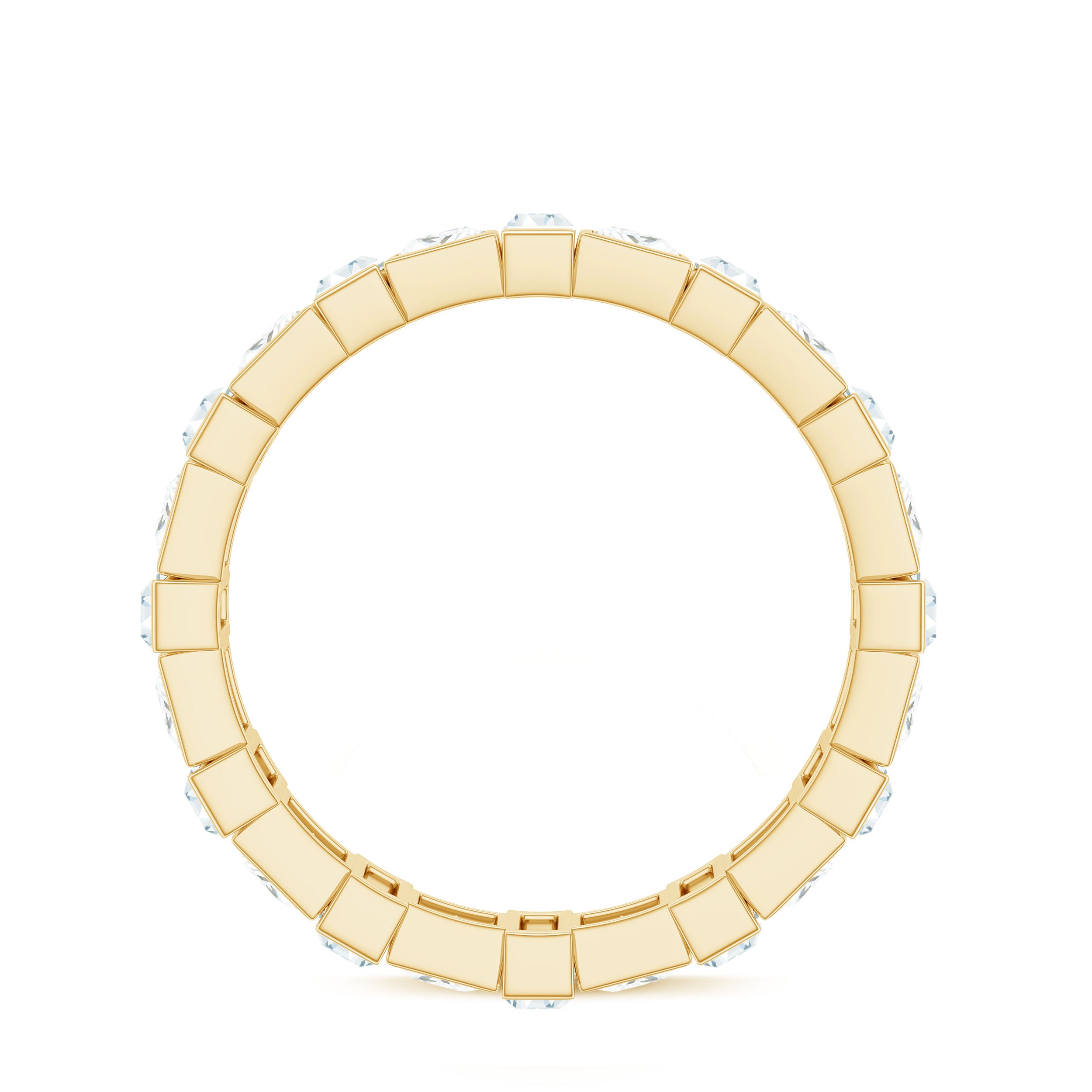 This eternity ring features a stunning alternating pattern of princess and baguette cut zircon stones. The alternating pattern of the stones gives the ring a unique and eye-catching look, perfect for those who want a bold and stylish piece of jewelry. This Cubic Zirconia Ring is also symbolizes unending love and commitment, making it a perfect gift for a special occasion or anniversary.