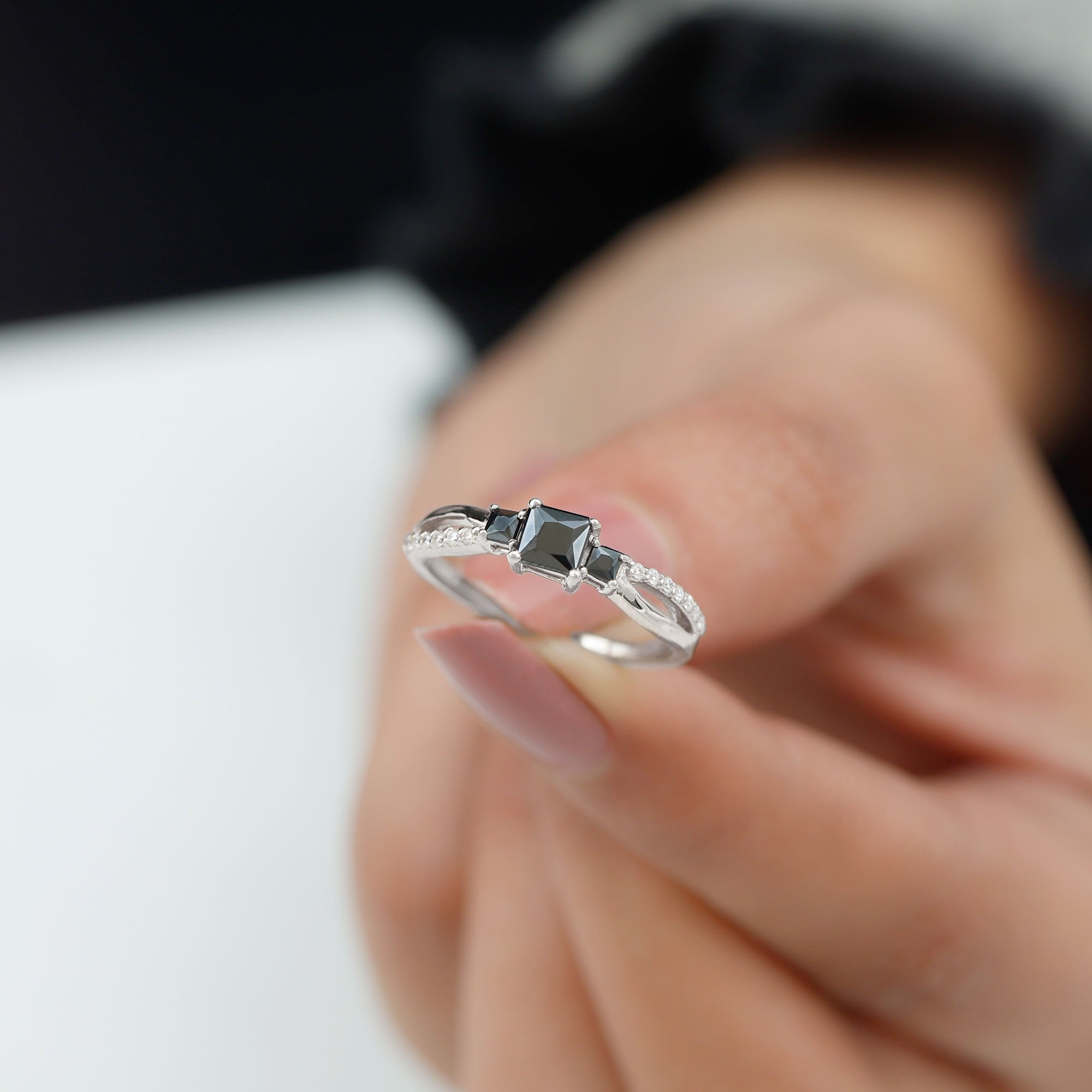 Princess Cut 3 Stone Created Black Diamond Infinity Ring with Diamond