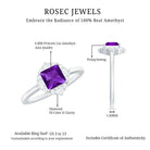Meant to cover your desk-to-dinner looks, this Amethyst Halo Ring makes a wow-worthy statement any day! It boasts a Center Stone of 5 MM Princess Cut Amethyst that allures with its royal appeal, sheltered by Prong Setting. Taking it from ordinary to extraordinary is the dazzling flower-inspired Halo of Round Shape Diamond. Complement your pretty dresses with it to channel the feminine diva in you or team it up with your casuals for an eye-catching work that isnt too loud, this Certified Amethyst Ring is meant to up your fashion game.