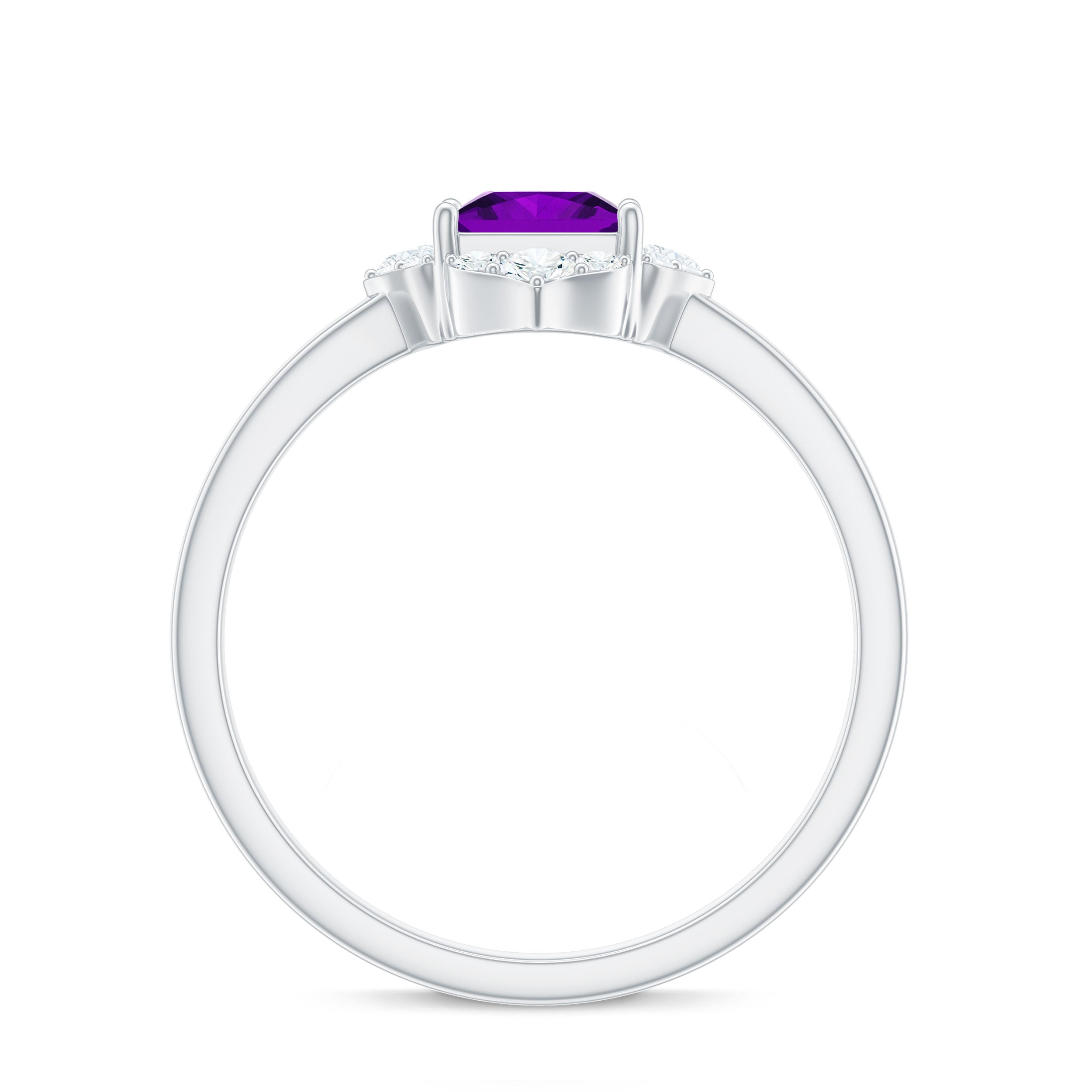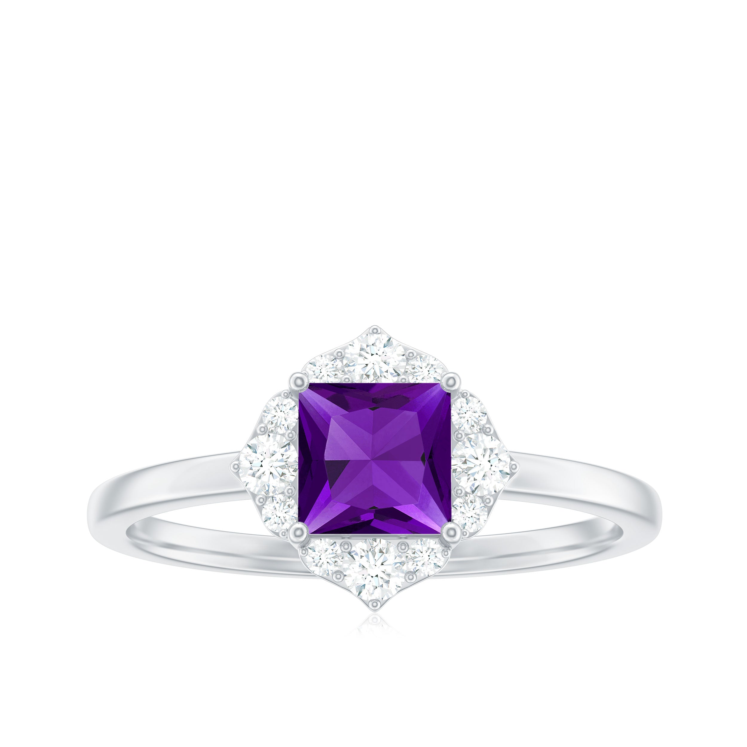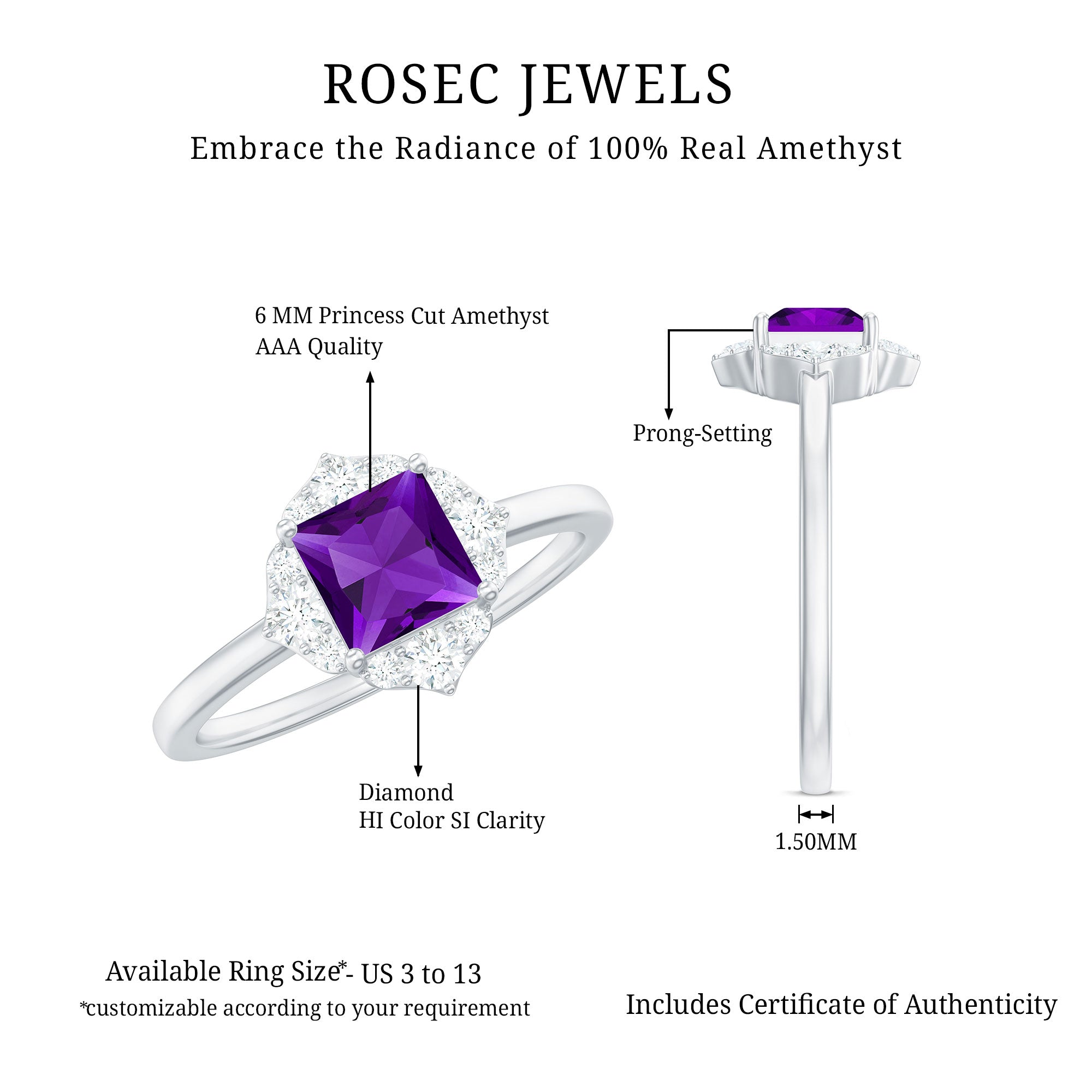 Princess Cut Amethyst and Diamond Flower Halo Ring