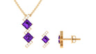 Princess Cut Amethyst Modern Jewelry Set with Diamond
