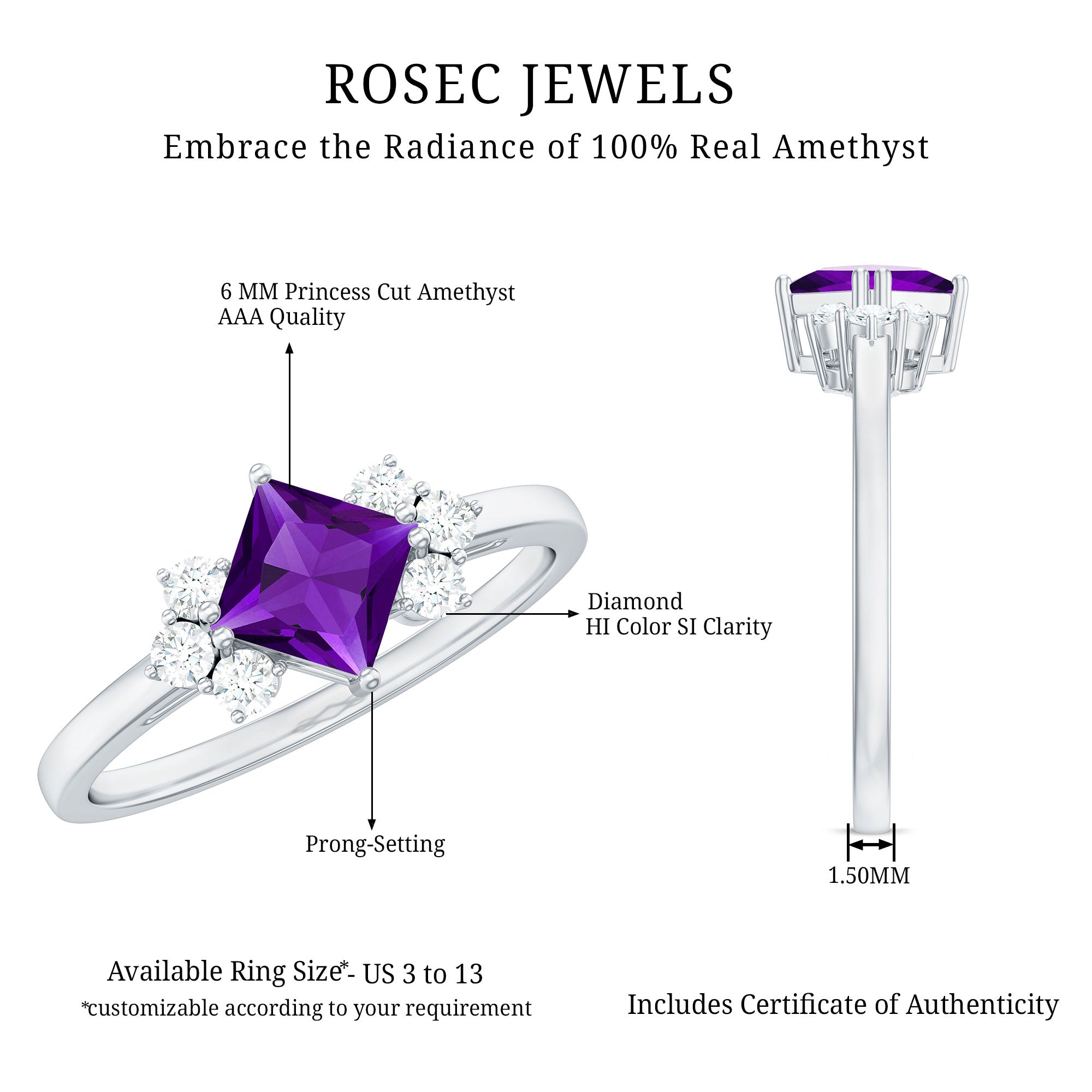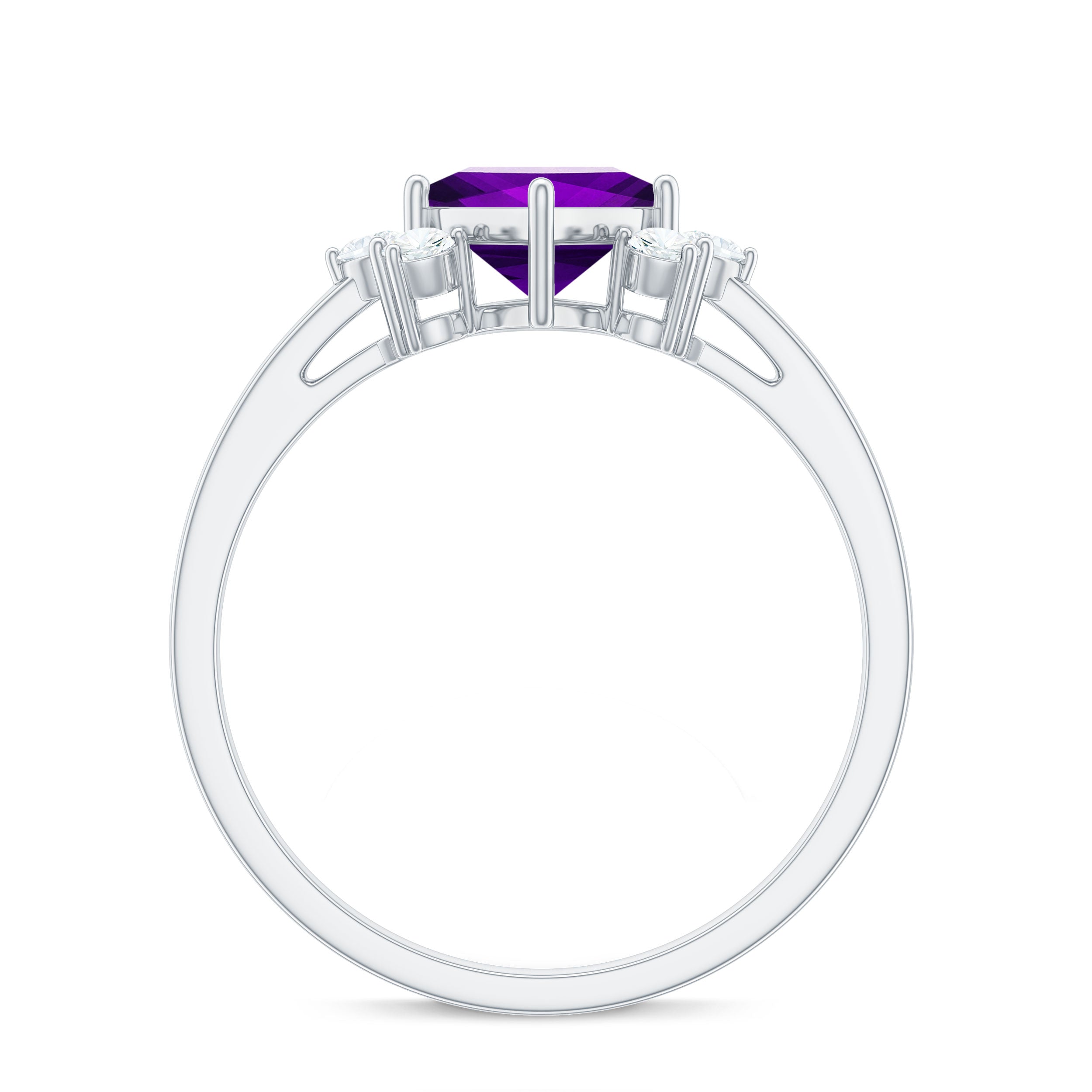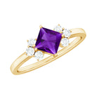 Princess Cut Amethyst Promise Ring with Diamond Trio