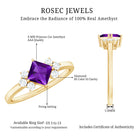 Make a promise that shines bright with this Princess Cut Amethyst Ring, embellished with a trio of Diamond stones. A symbol of devotion and everlasting love.