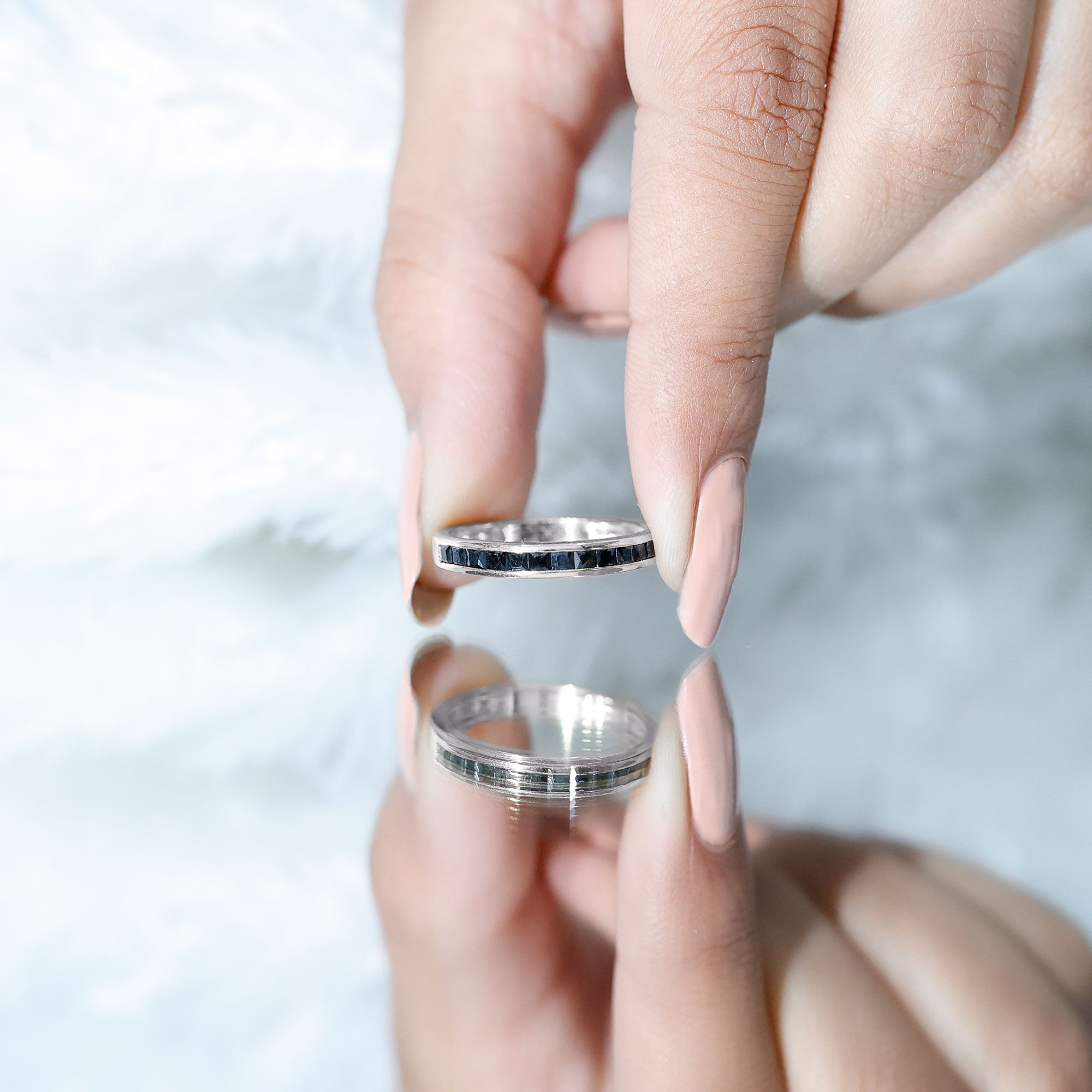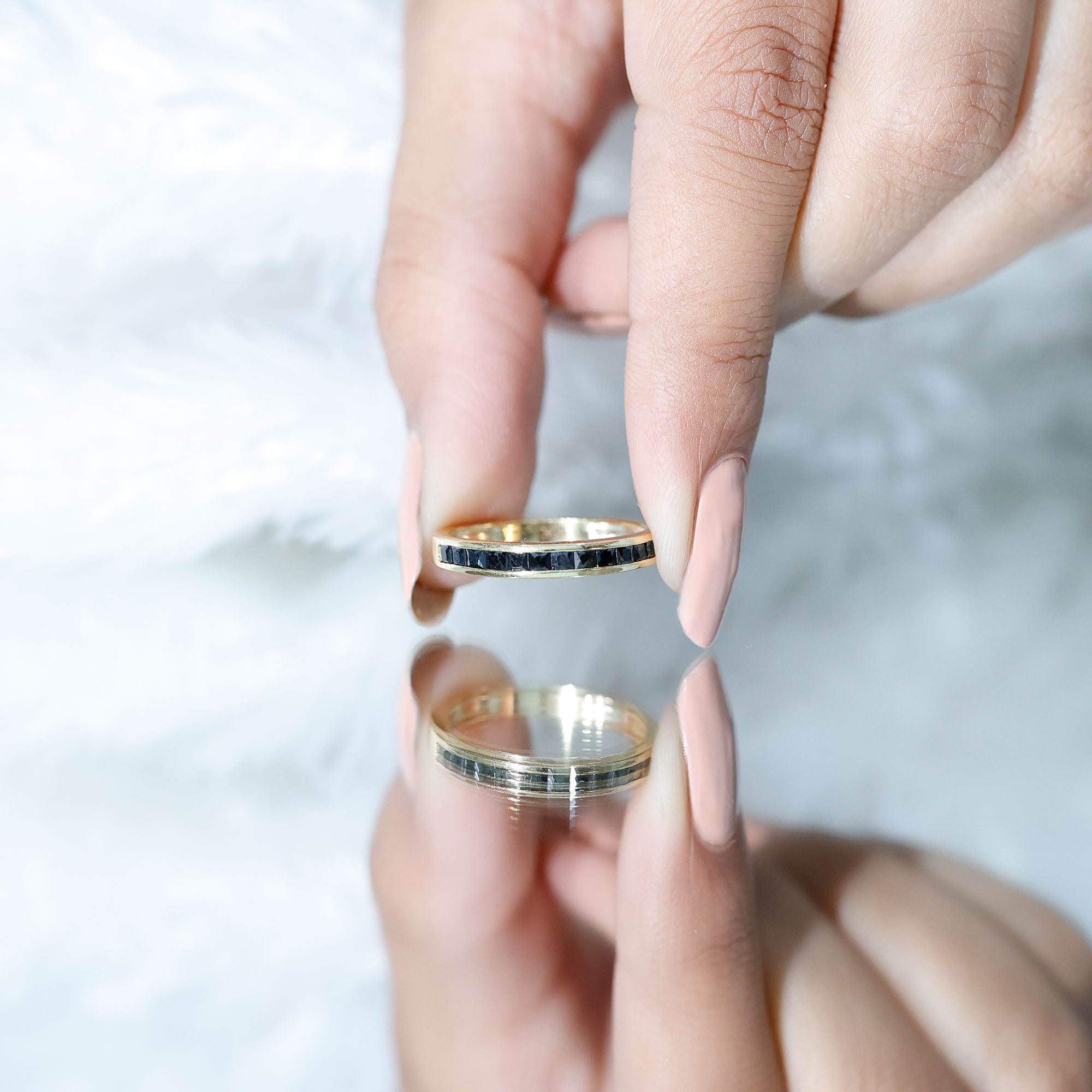 A sleek and modern look defines this Half Eternity Ring, featuring 3 MM princess cut Black Onyx stones set neatly in a secure channel setting. Each Black Onyx gemstone is of AAA quality, known for its rich black color that adds a bold yet elegant touch to the band. This Black Onyx Wedding Band is designed to be stackable, making it easy to pair with other rings or wear alone for a subtle statement. Whether you want it as a wedding band, anniversary ring, or just a special addition to your collection, its timeless design suits any occasion. The channel setting keeps the stones protected while offering a smooth and comfortable fit for daily wear. Its striking black tone makes it a versatile piece that complements many outfits and jewelry combinations. This Black Stone Eternity Band is perfect for those who want a ring that blends classic style with modern design, while also carrying a personal touch through its powerful gemstone. Carefully crafted with attention to detail, this Princess Cut Eternity Band is a symbol of lasting elegance and strength. It makes a thoughtful gift for anniversaries, weddings, or any moment you want to celebrate with something truly special.