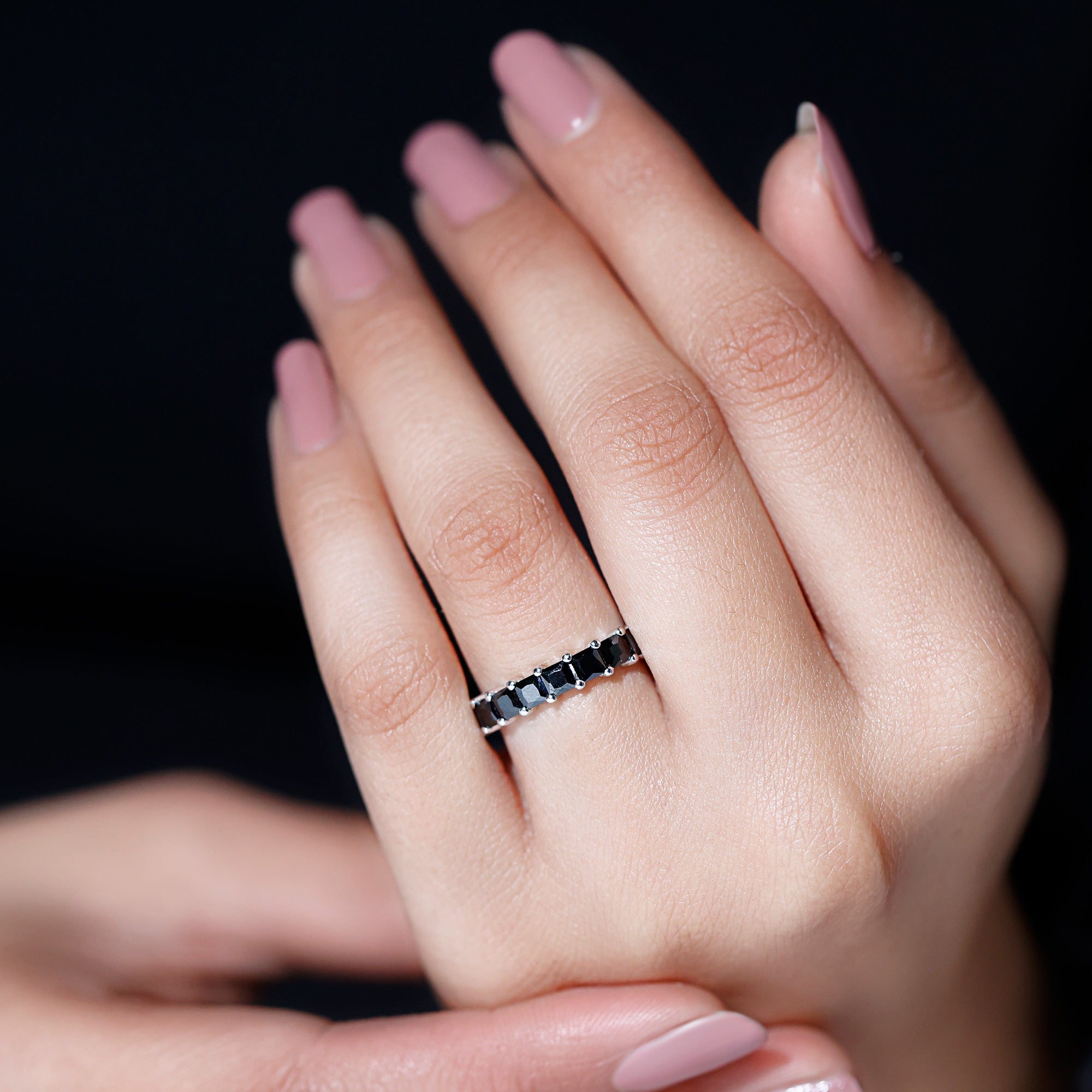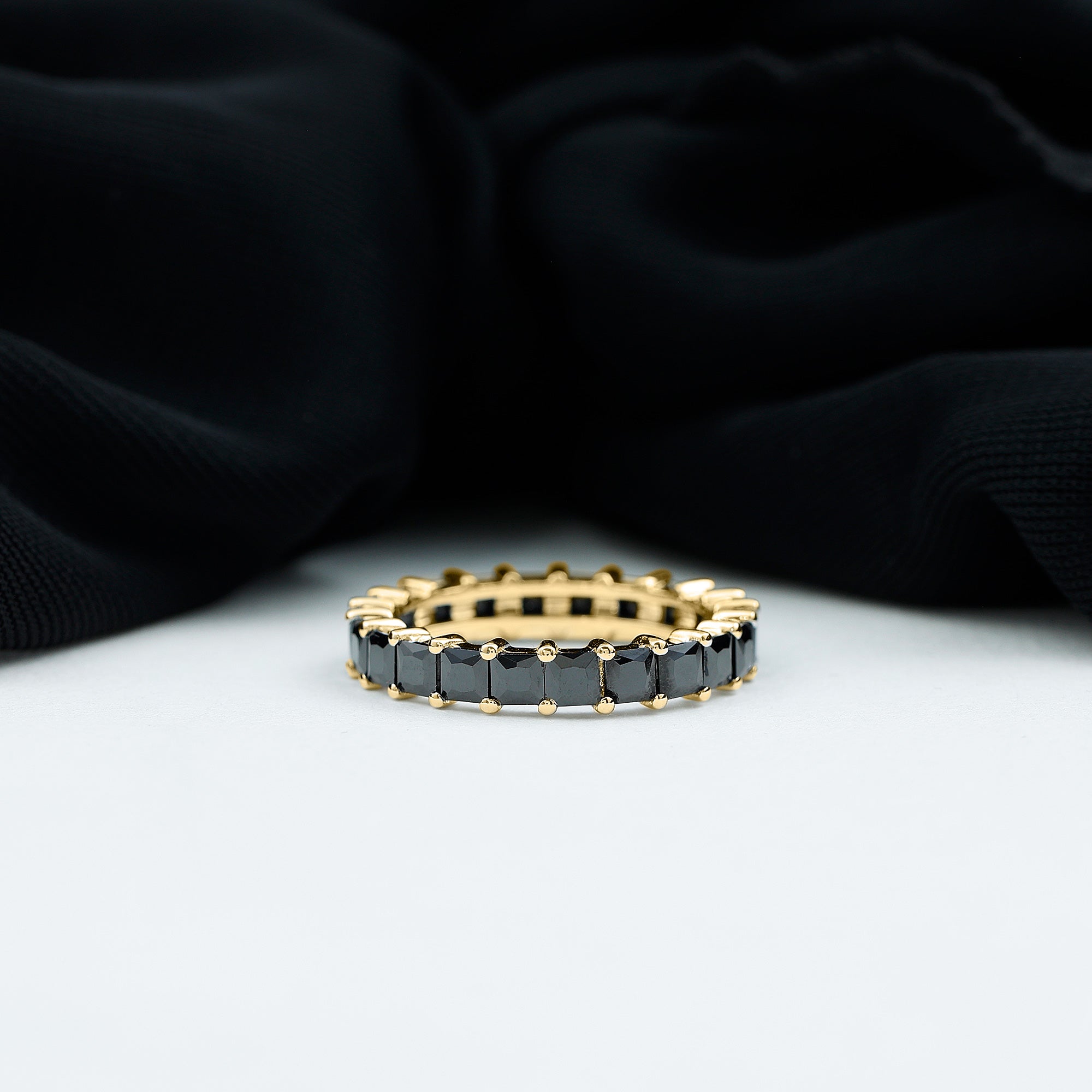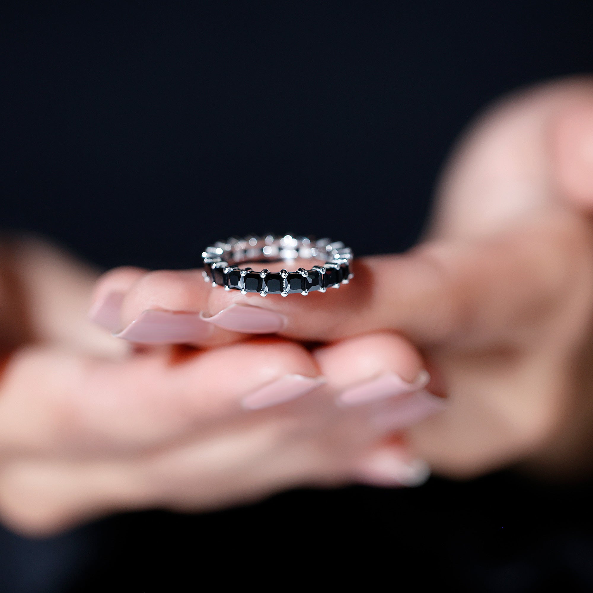 This stunning Full Eternity Band is all about timeless style with a touch of boldness. Designed for stacking, layering, or wearing solo, it features 3 MM princess cut black onyx stones set all the way around the band in shared prong setting. The strong setting and dark stones make this a unique and stylish piece you will love slipping on every day. Whether you are celebrating an anniversary, looking for a wedding band, or just want a sleek new ring for your collection, this piece fits right in. The princess cut gives off just the right amount of charm, while the full eternity design symbolizes never-ending love and connection. Made with AAA quality black onyx, this Eternity Wedding Band is crafted with care and made to last. It is available in a range of metal options, so you can match it to your personal style, and comes in ring sizes from US range 3 to 13, making it easy to find the perfect fit. Wear it stacked with your engagement ring, pair it with other bands, or let it shine all on its own. However you wear it, this Onyx Eternity Band brings elegance, simplicity, and meaning to your everyday look. It also makes a thoughtful gift for someone special, or a great treat for yourself.