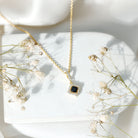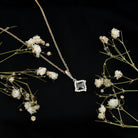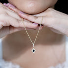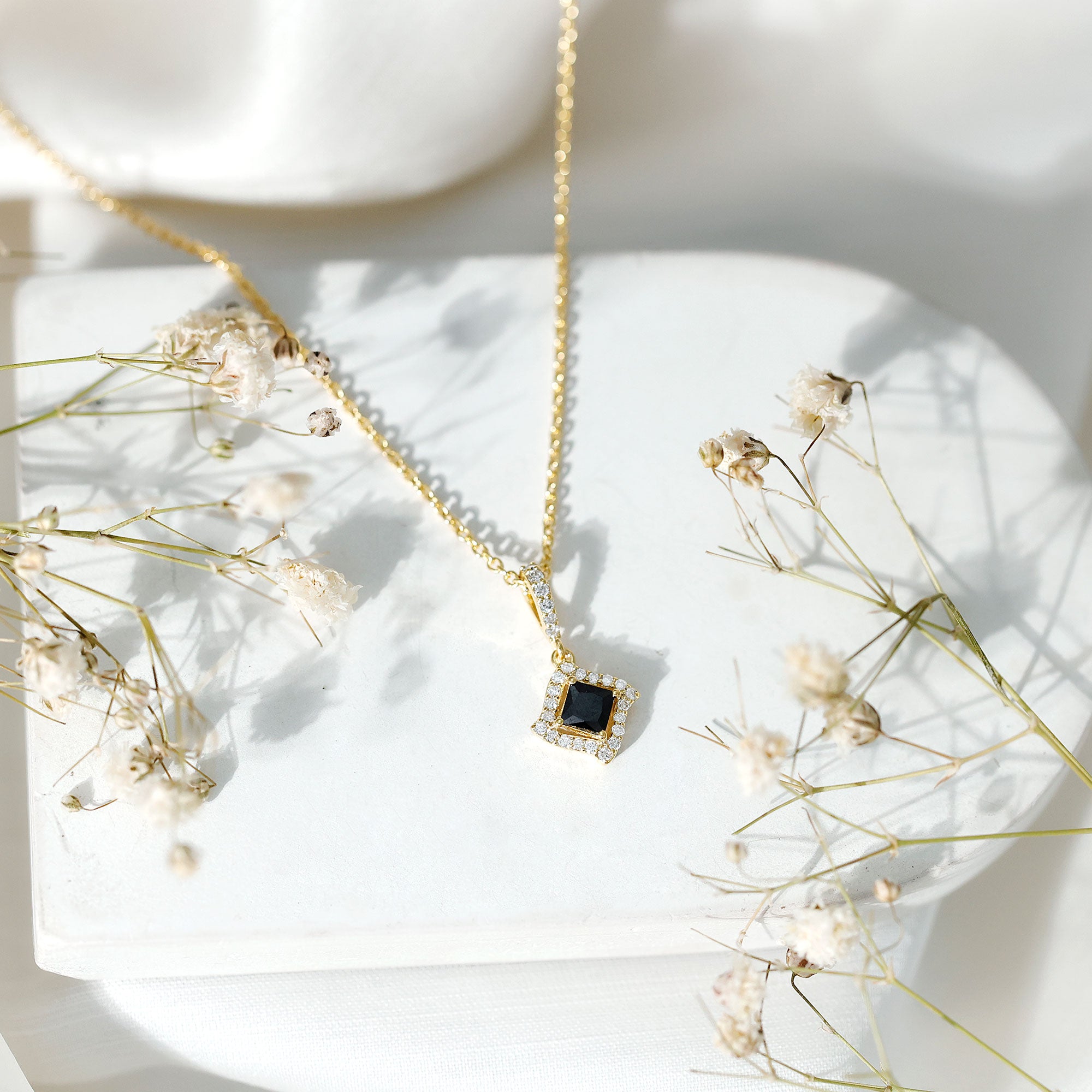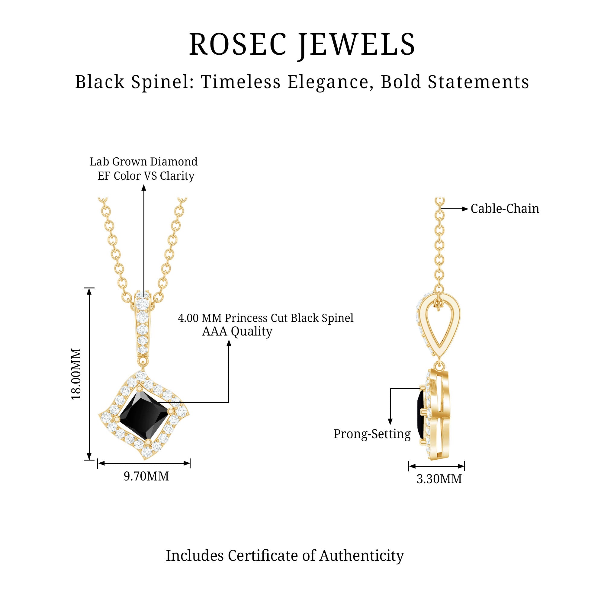 Princess Cut Black Spinel Necklace with Diamond Halo