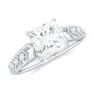Ensure your proposal is unforgettable by presenting this Art Deco Moissanite Ring. Featuring a 6.5 MM Princess Cut Moissanite in a 4 Prong Setting, with Round Moissanite accents on both sides of the shank, this Solitaire Ring symbolizes your love and commitment. Slip this Moissanite Solitaire Ring on her finger to seal your love for each other. The ring has a total weight of 2 Carats and boasts a high-quality of D Color VS1 Clarity. Our gemstones are certified and rigorously checked for quality assurance.