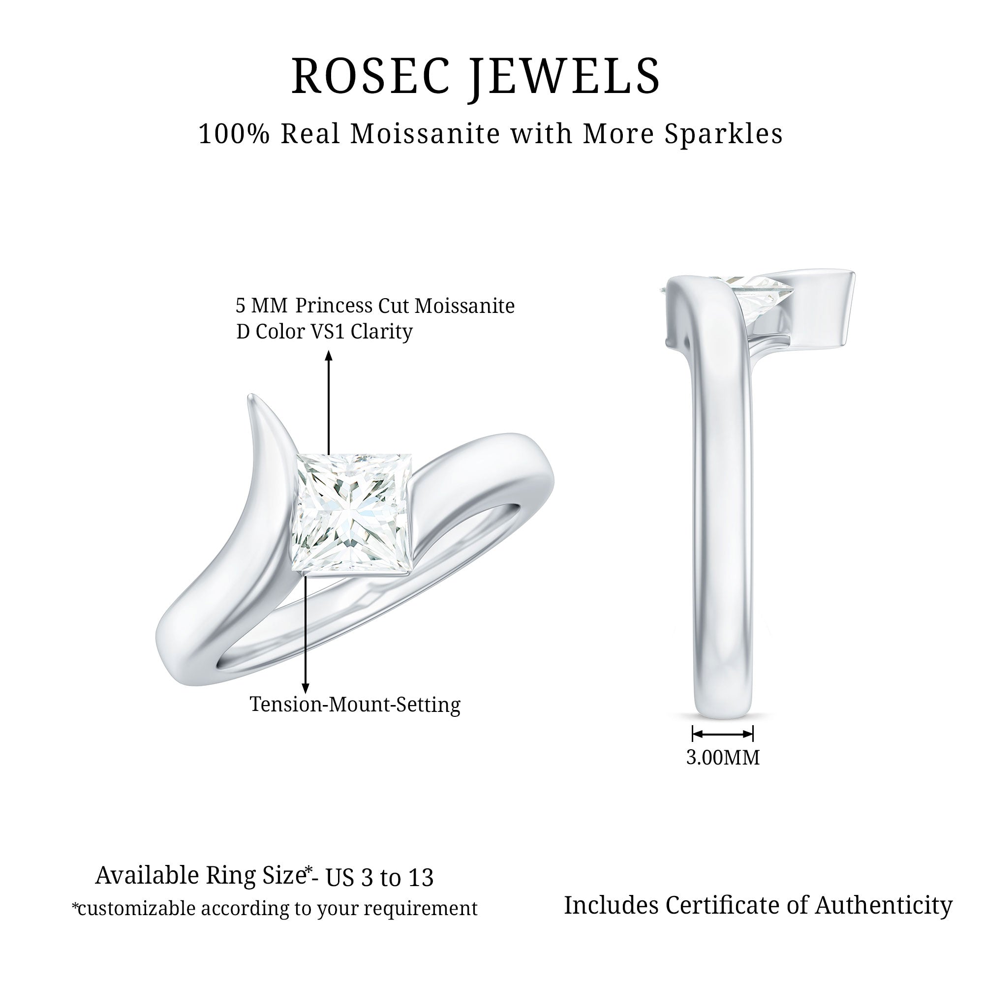 5mm Princess Cut Moissanite Solitaire Ring in Tension Setting