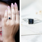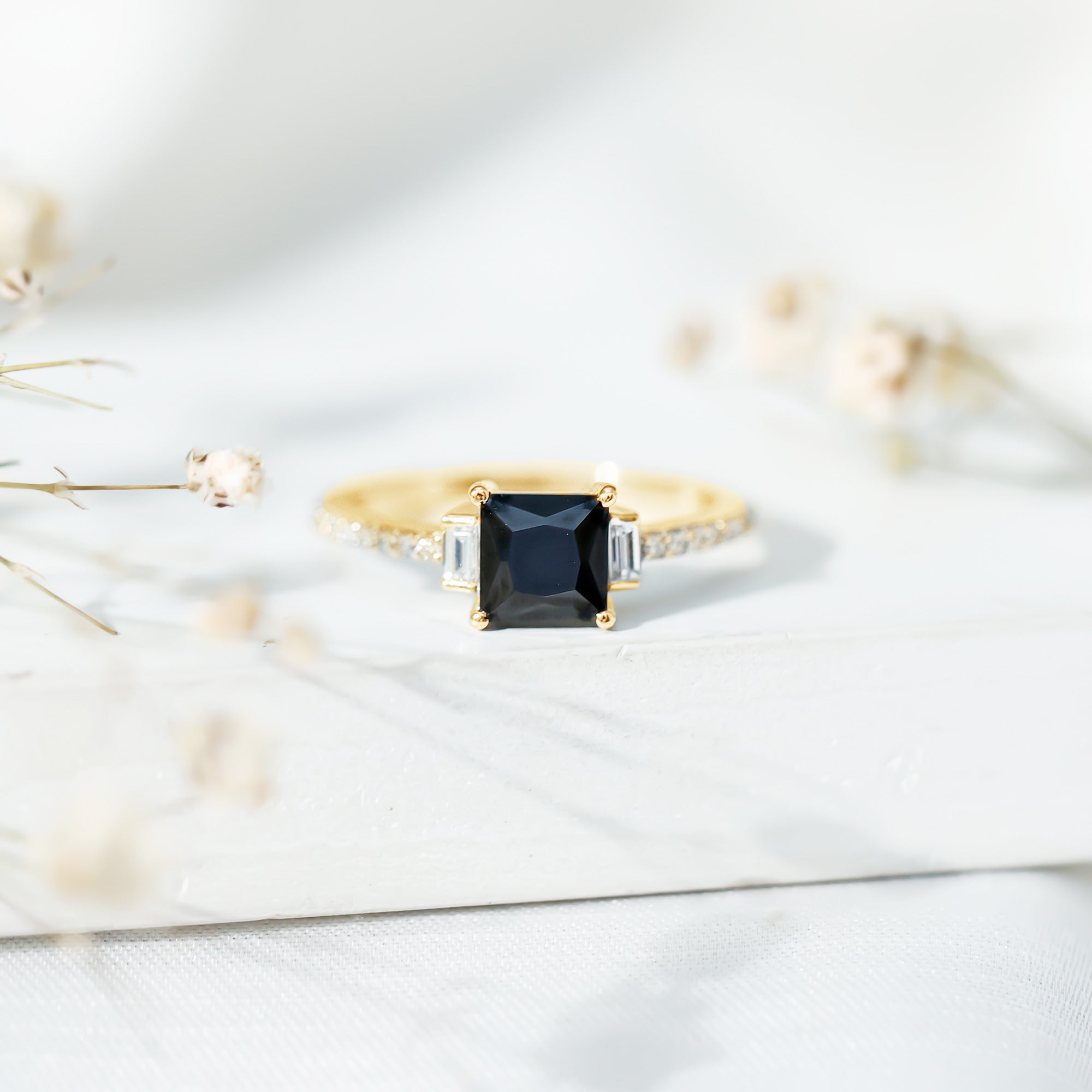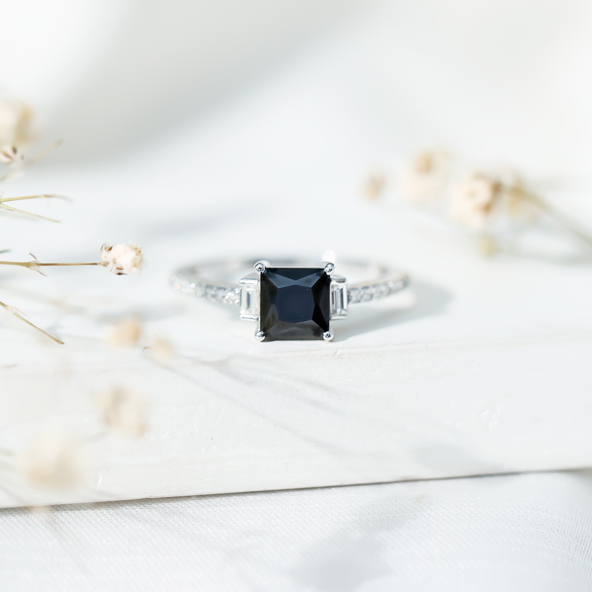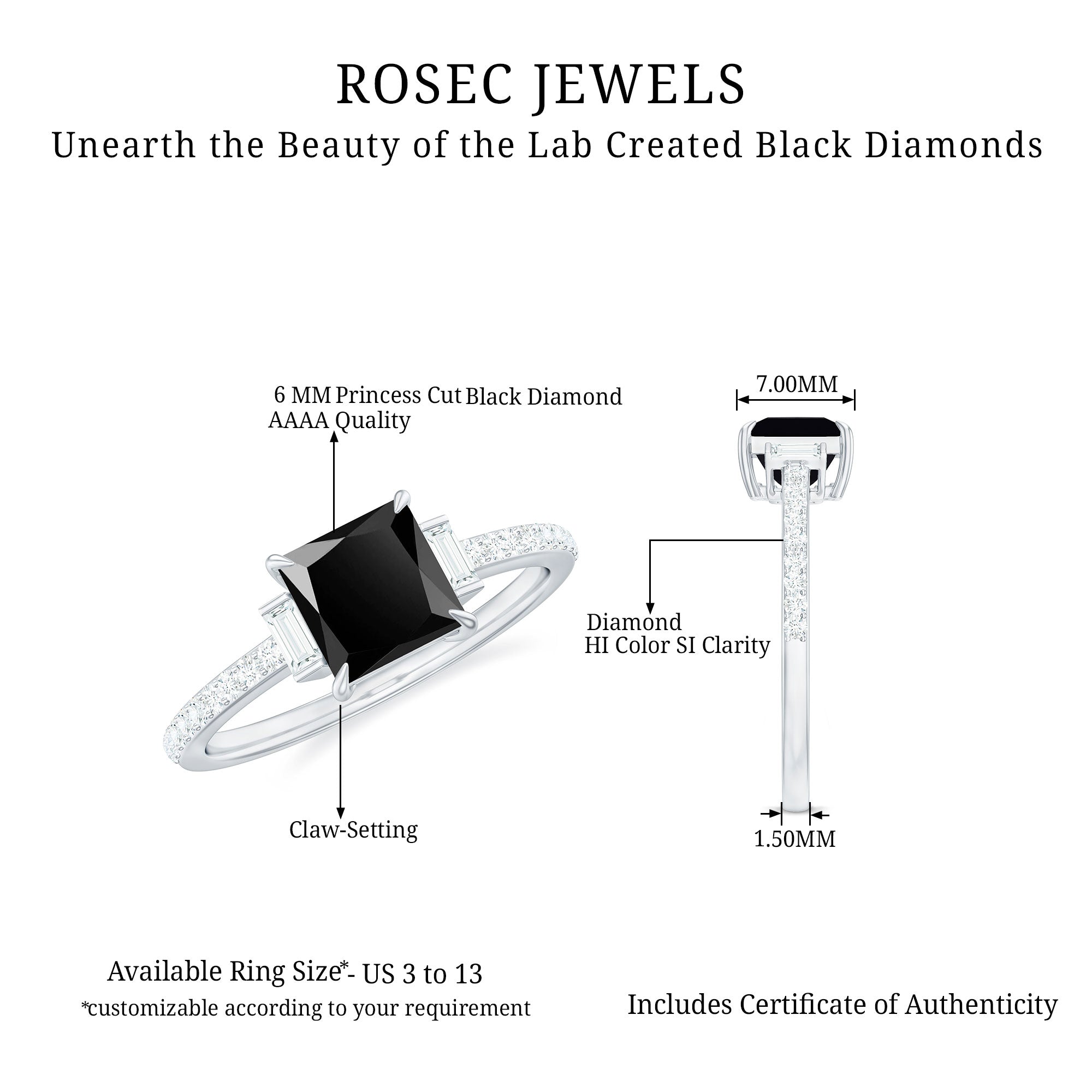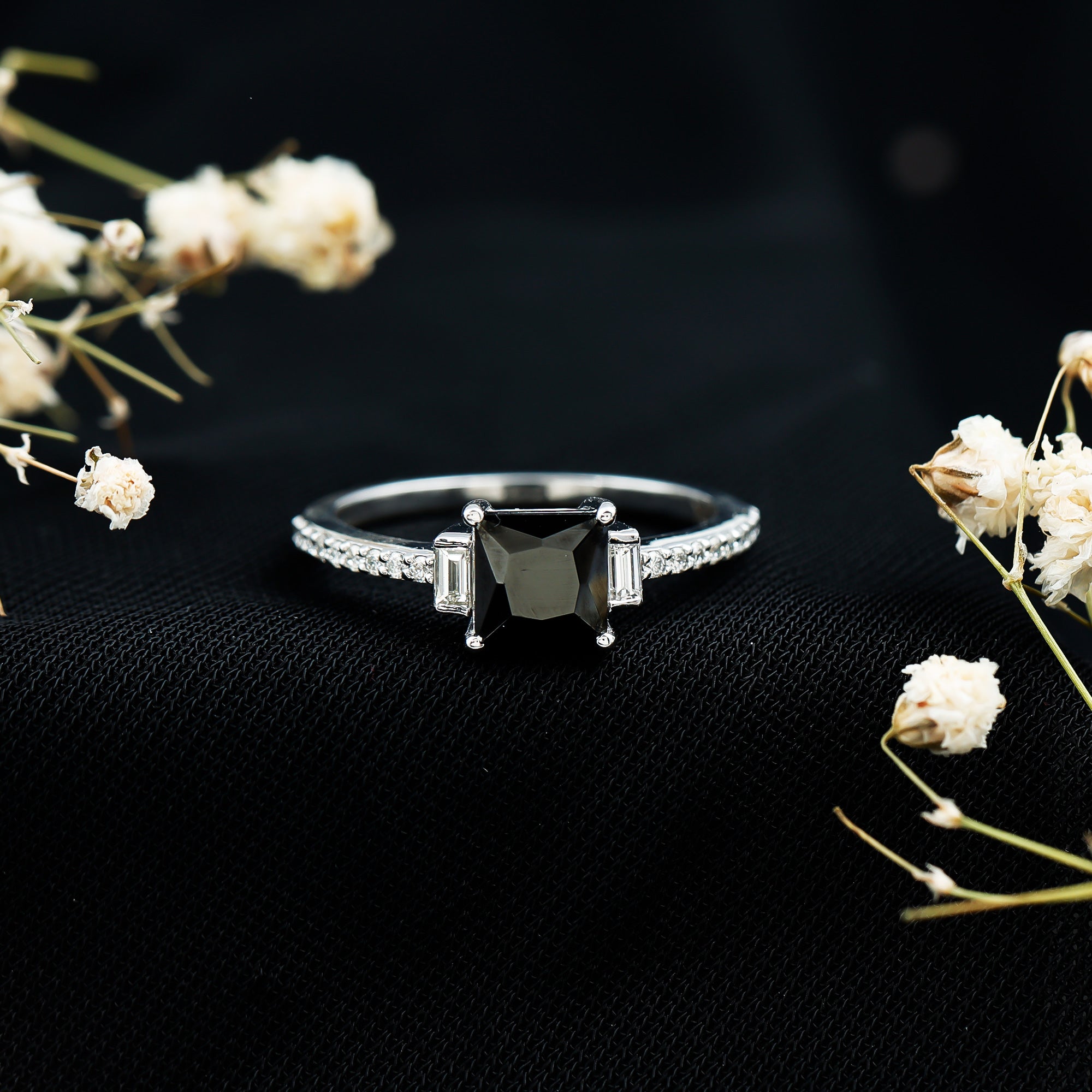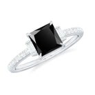 Princess Cut Created Black Diamond Solitaire Ring with Diamond Side Stones