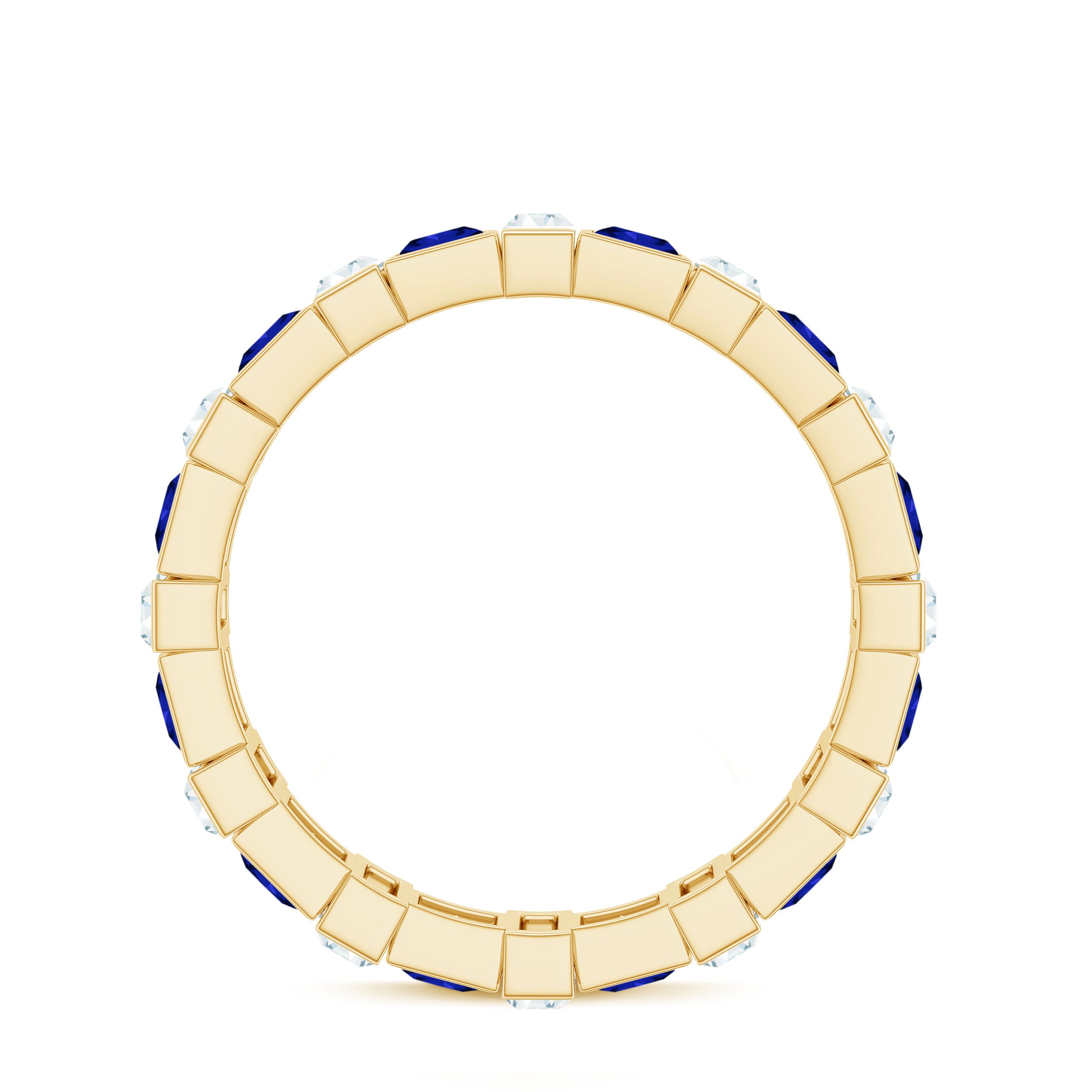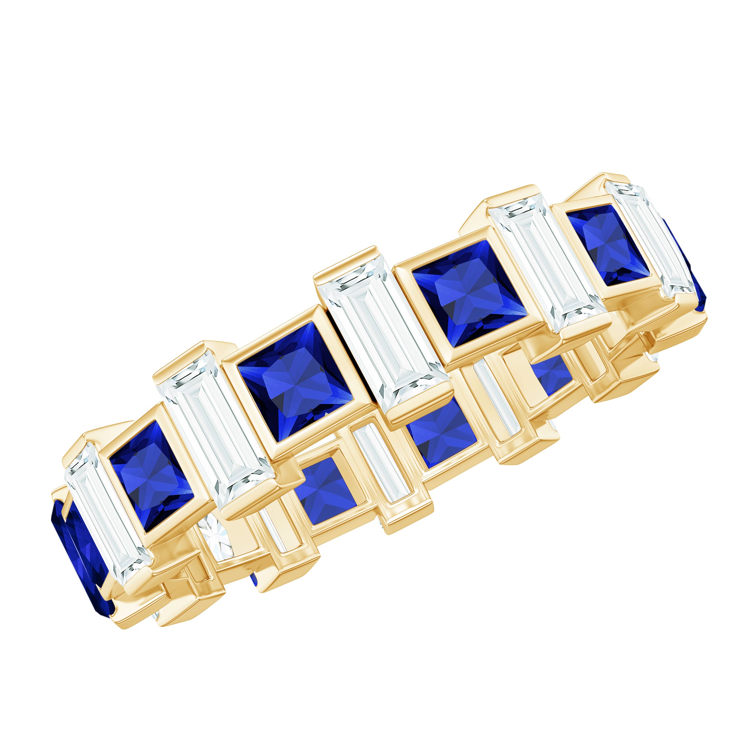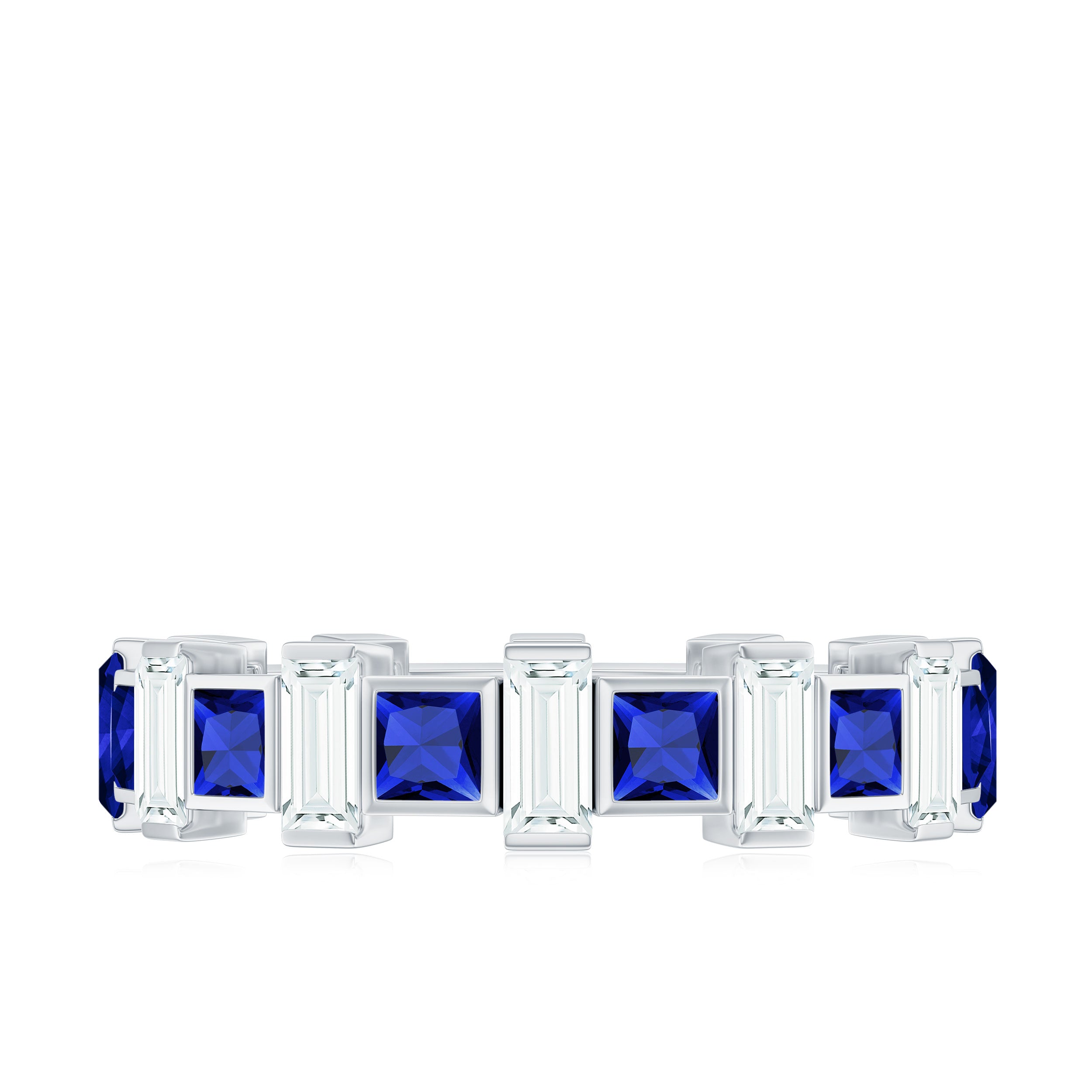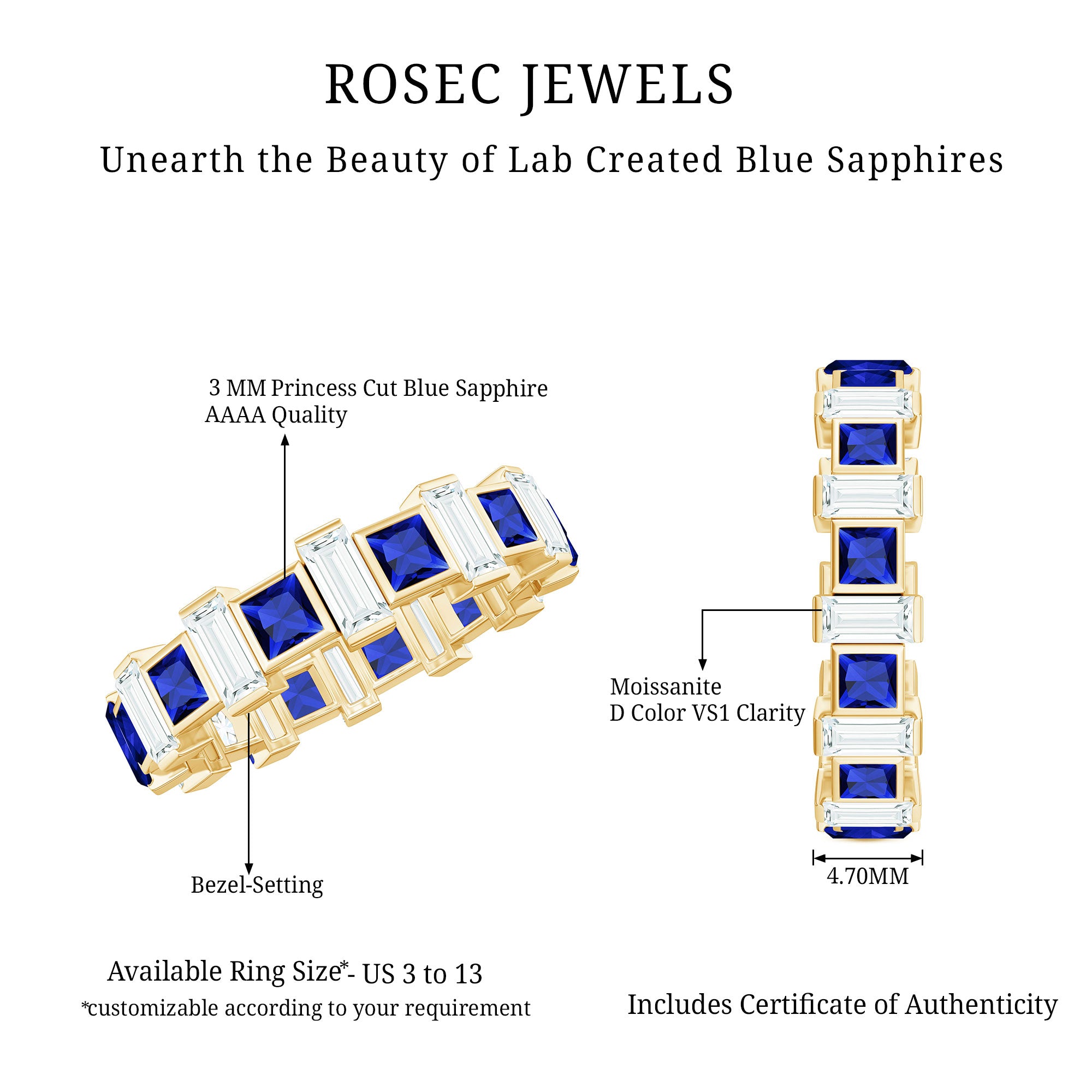 Princess Cut Created Blue Sapphire and Moissanite Eternity Ring