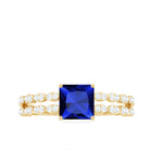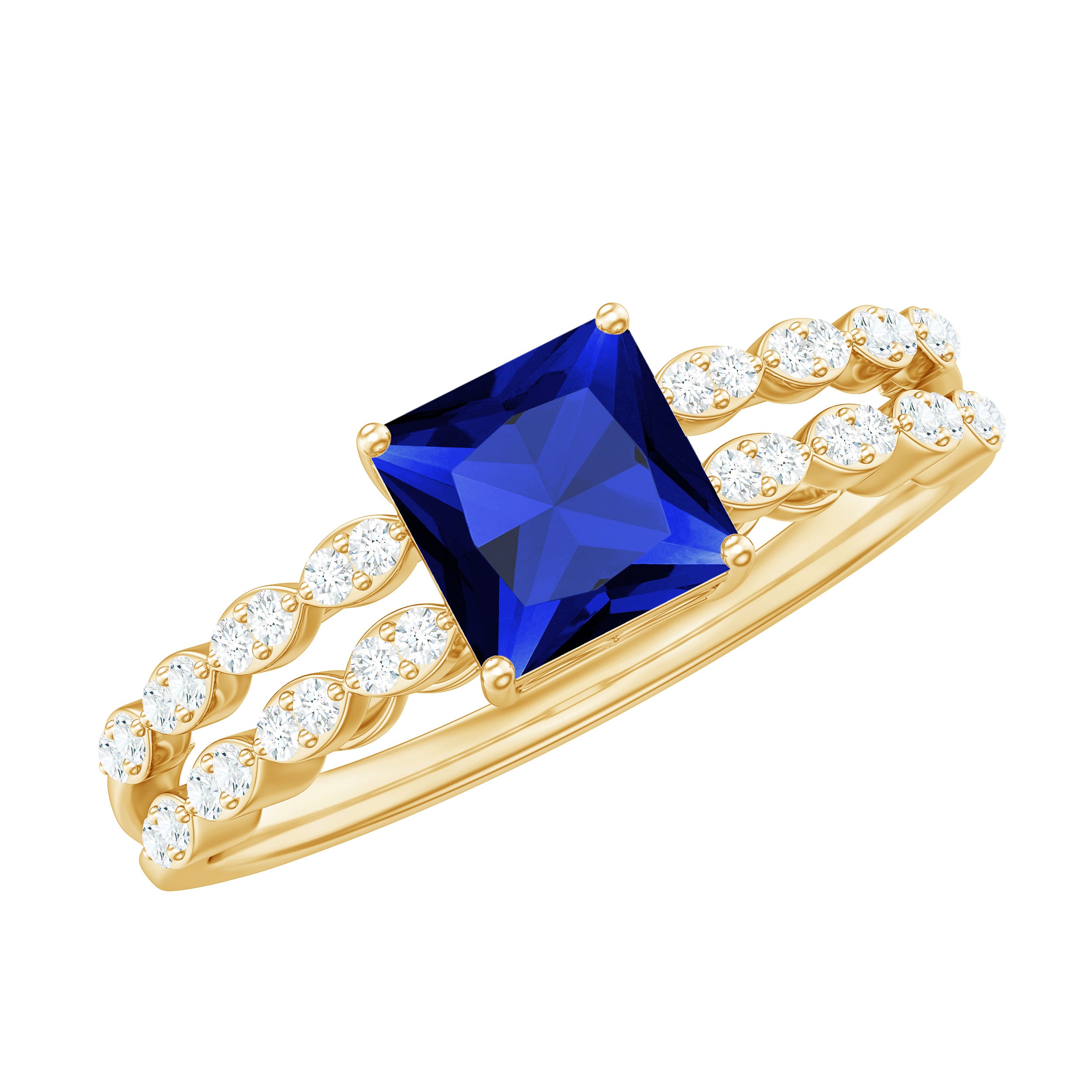 Princess Cut Created Blue Sapphire Double Band Engagement Ring with Diamond