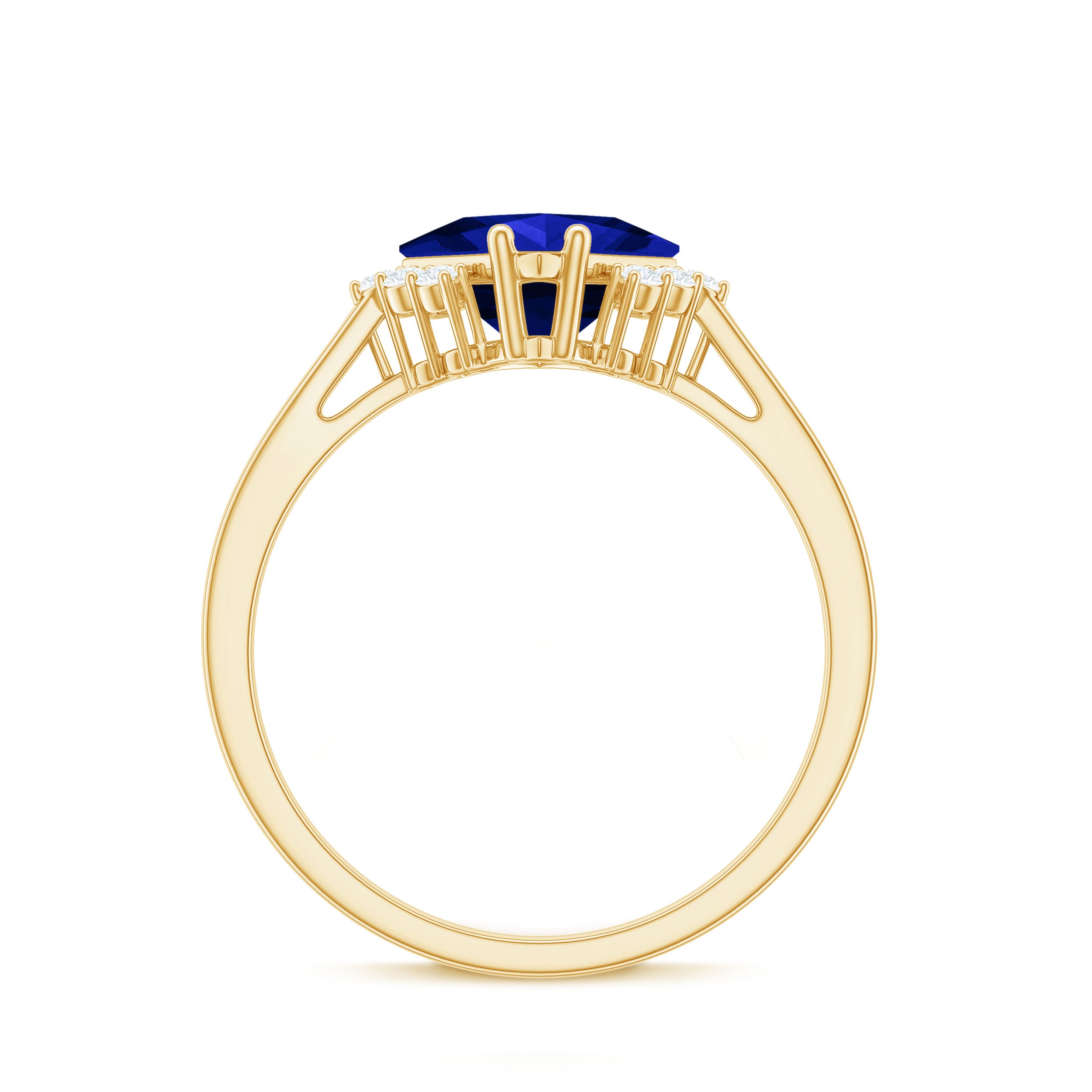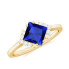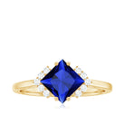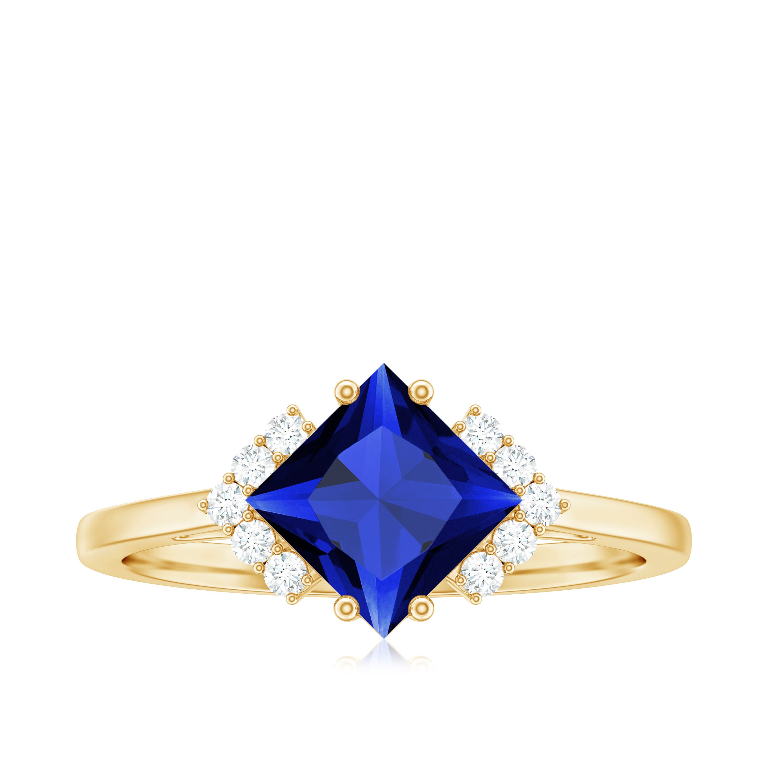 Princess Cut Created Blue Sapphire Engagement Ring with Diamond Accent