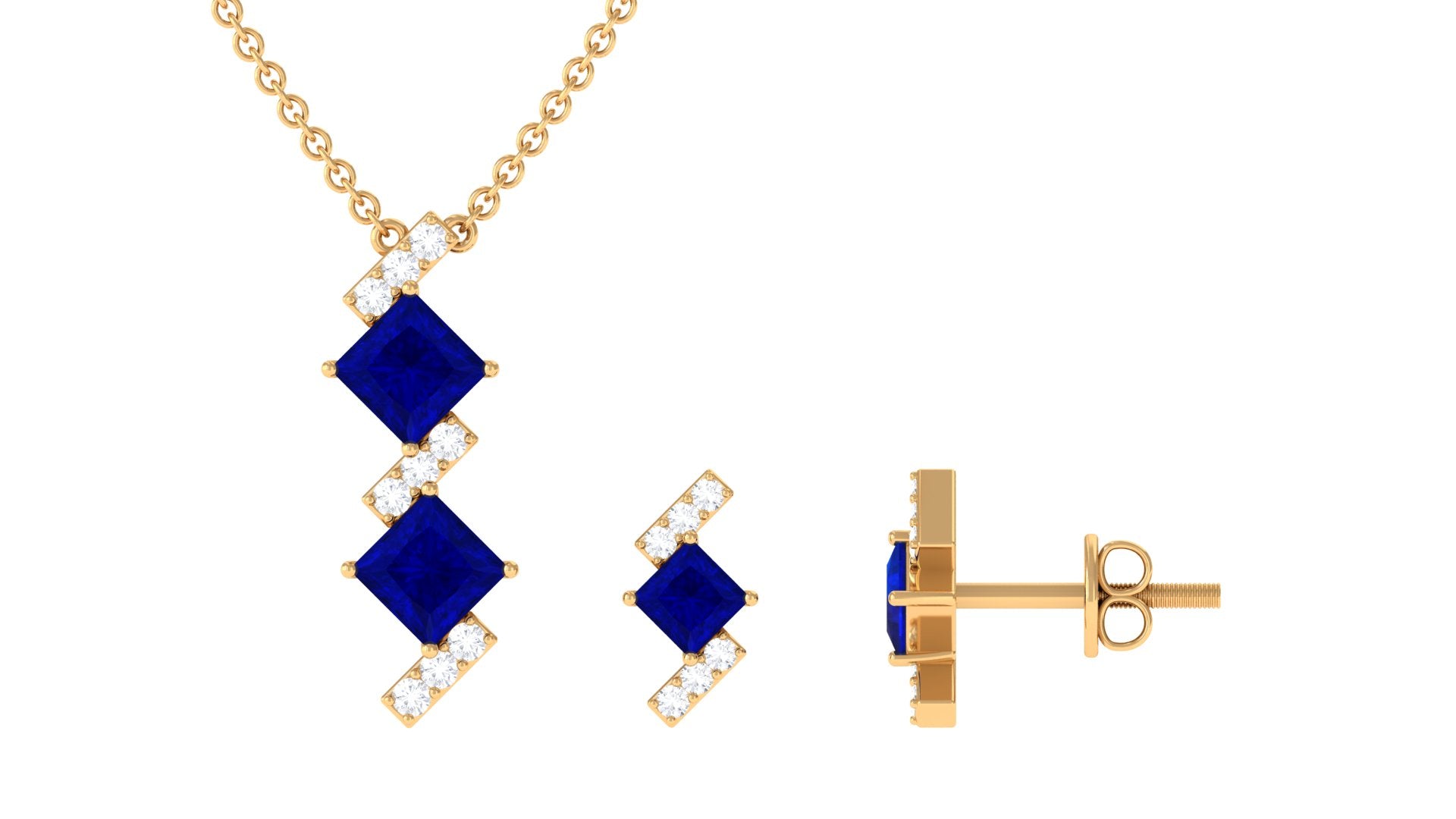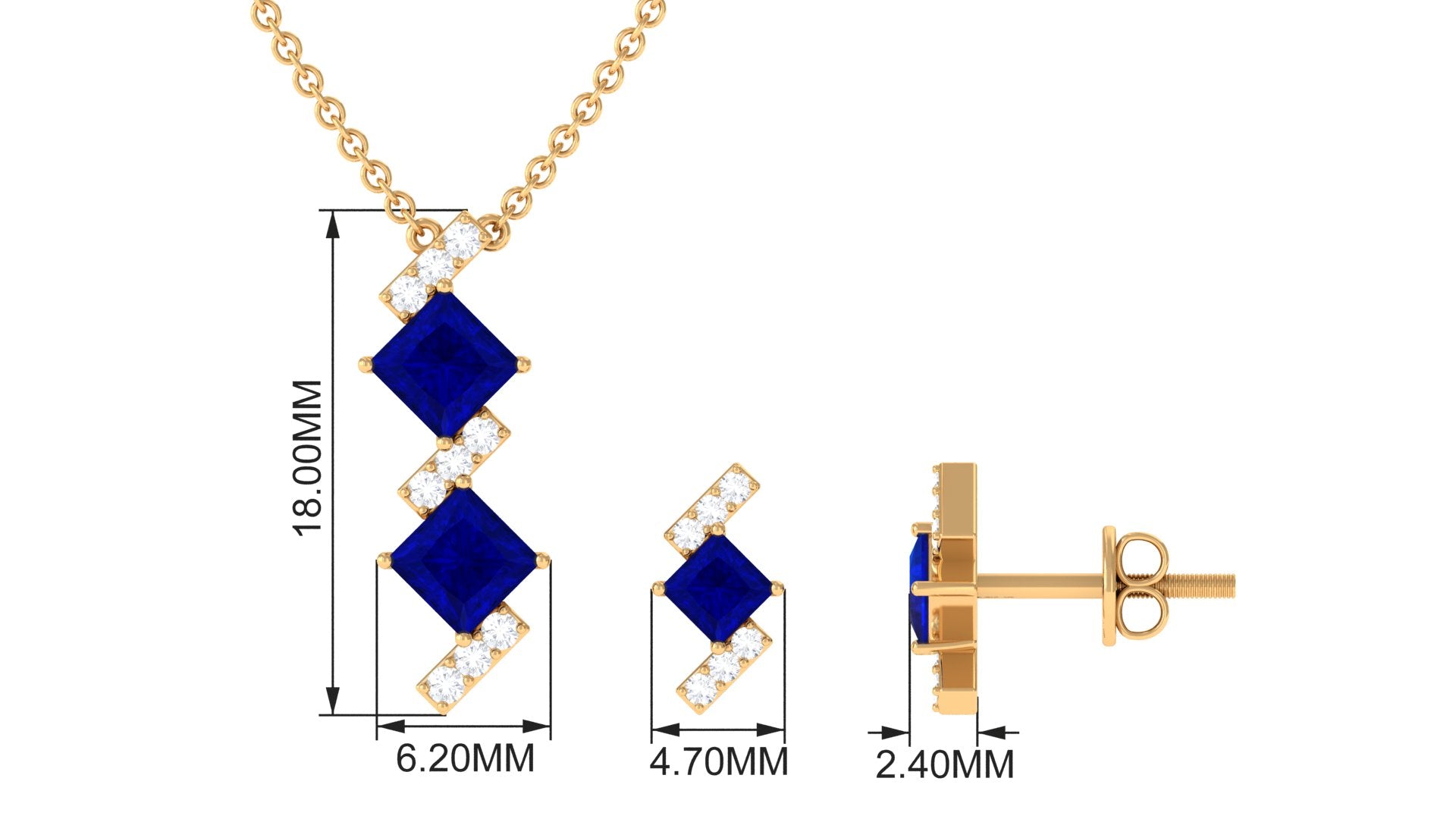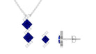 Princess Cut Created Blue Sapphire Modern Jewelry Set with Diamond
