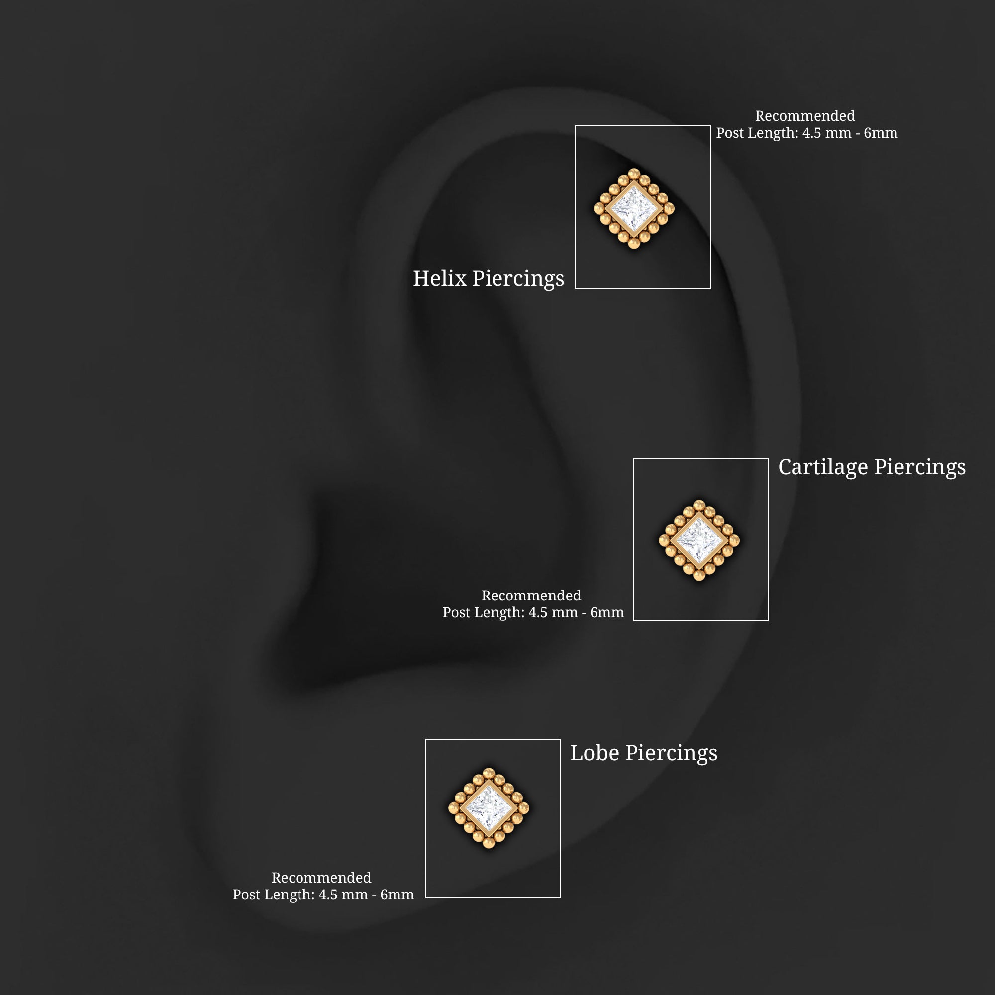 Princess Cut Diamond Solitaire Earring in Beaded Bezel Setting