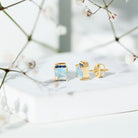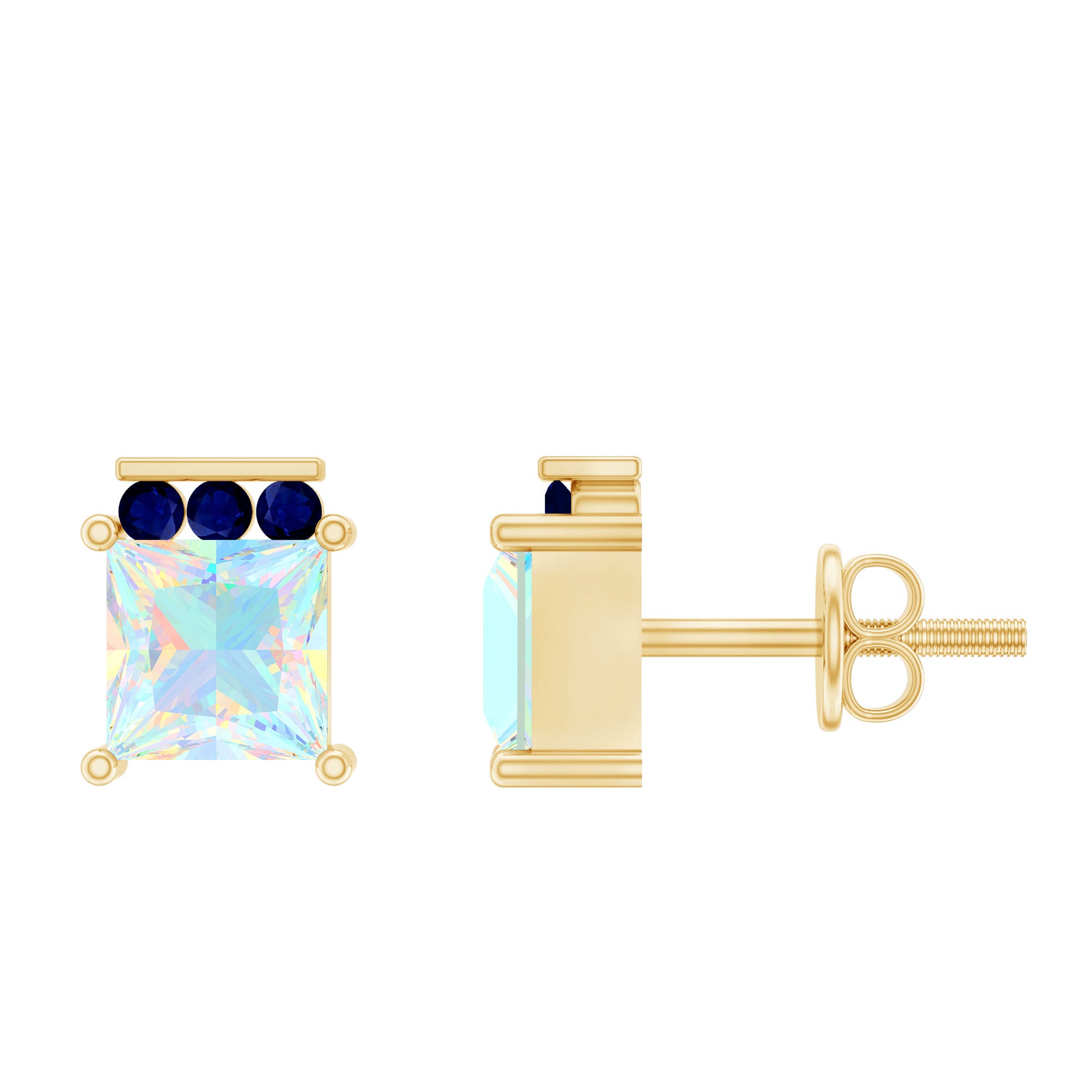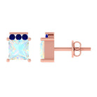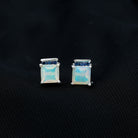 Princess Cut Ethiopian Opal Stud Earrings with Blue Sapphire Trio