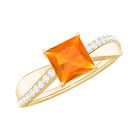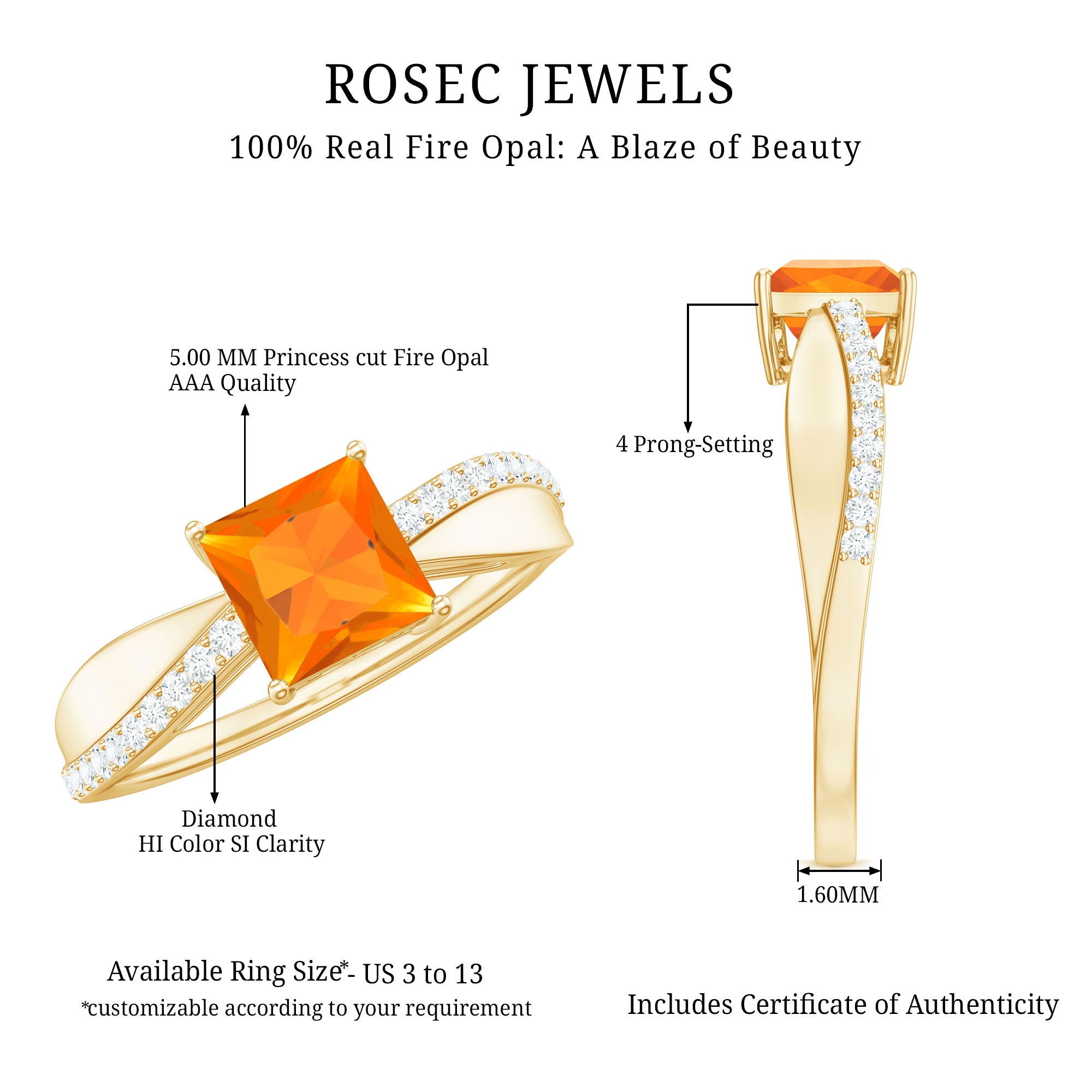 Princess Cut Fire Opal Solitaire Engagement Ring with Diamond