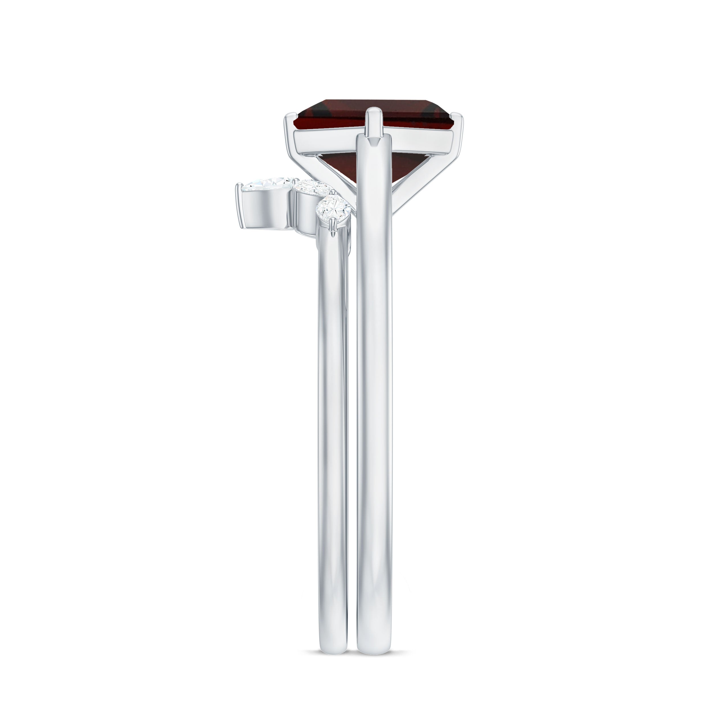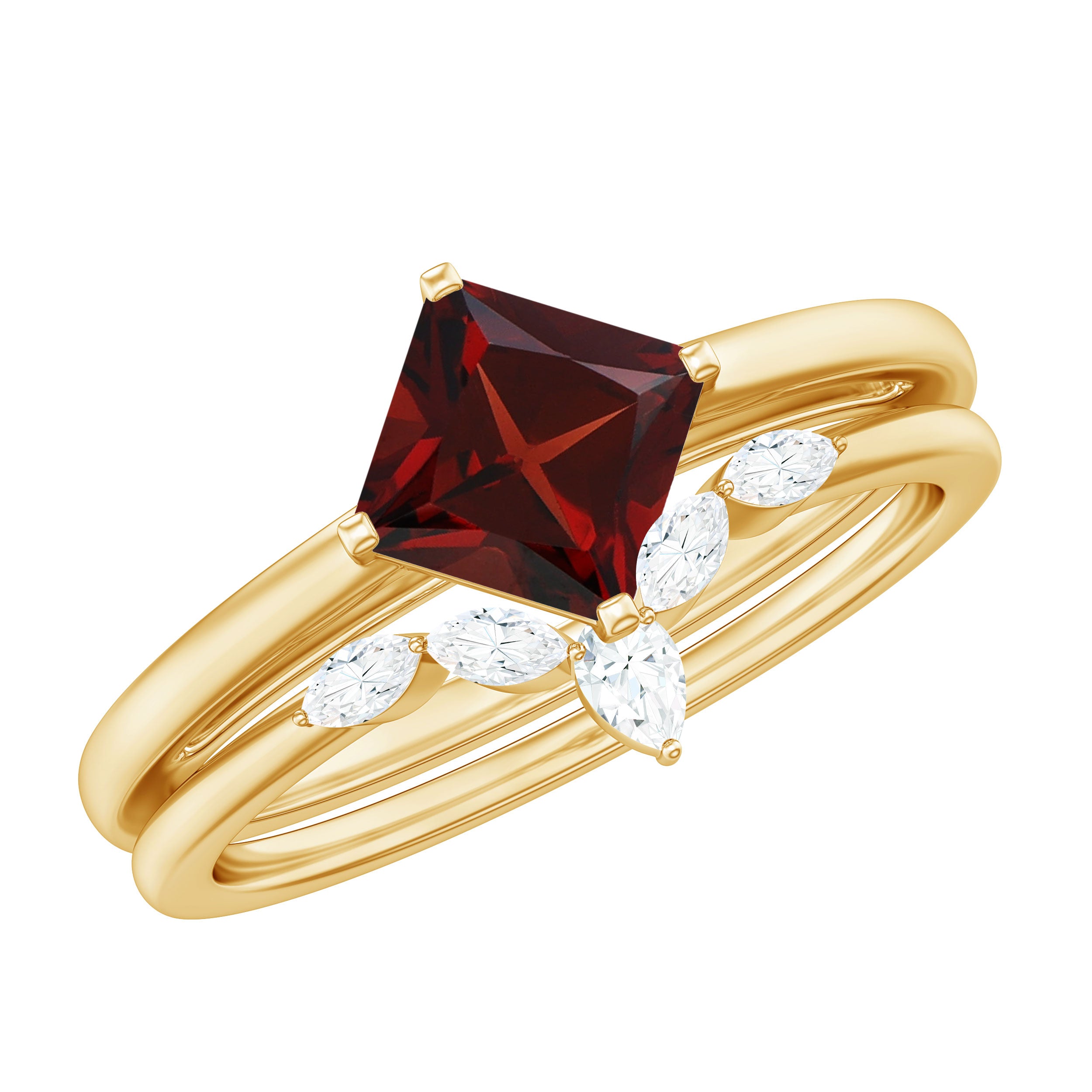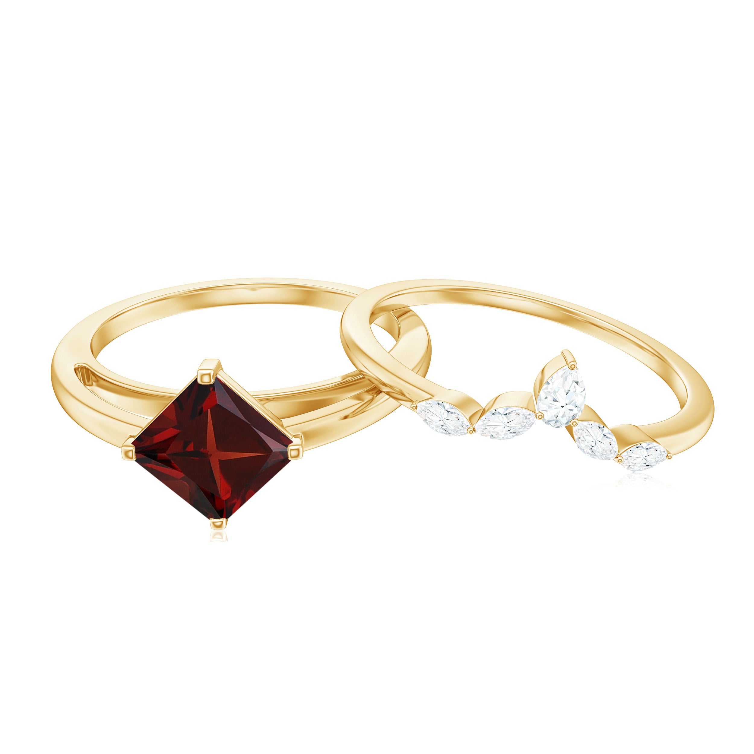 6MM Princess Cut Garnet Solitaire Bridal Ring Set with Diamonds