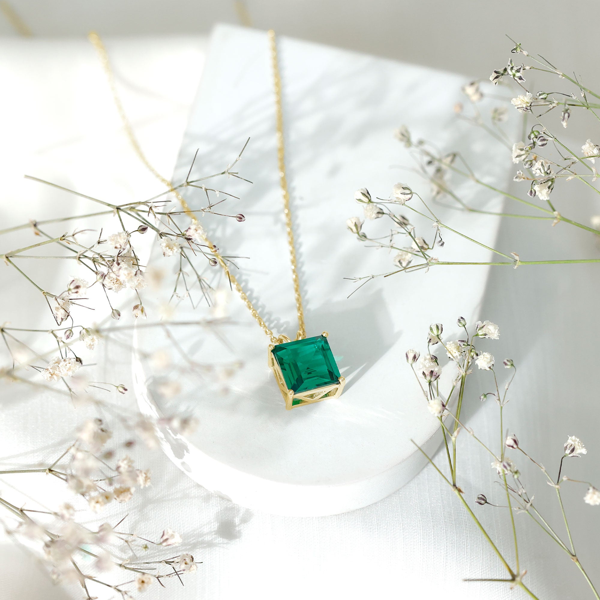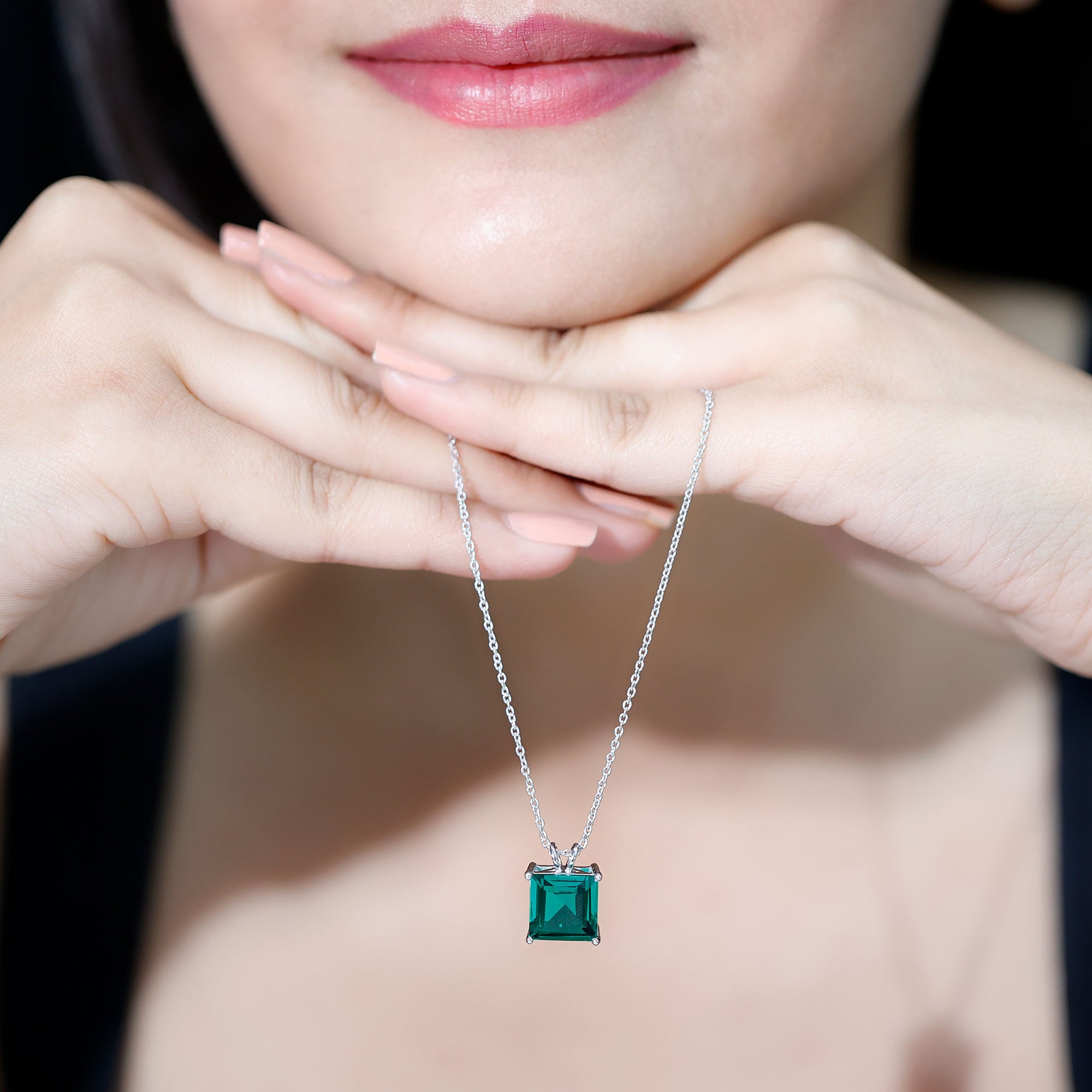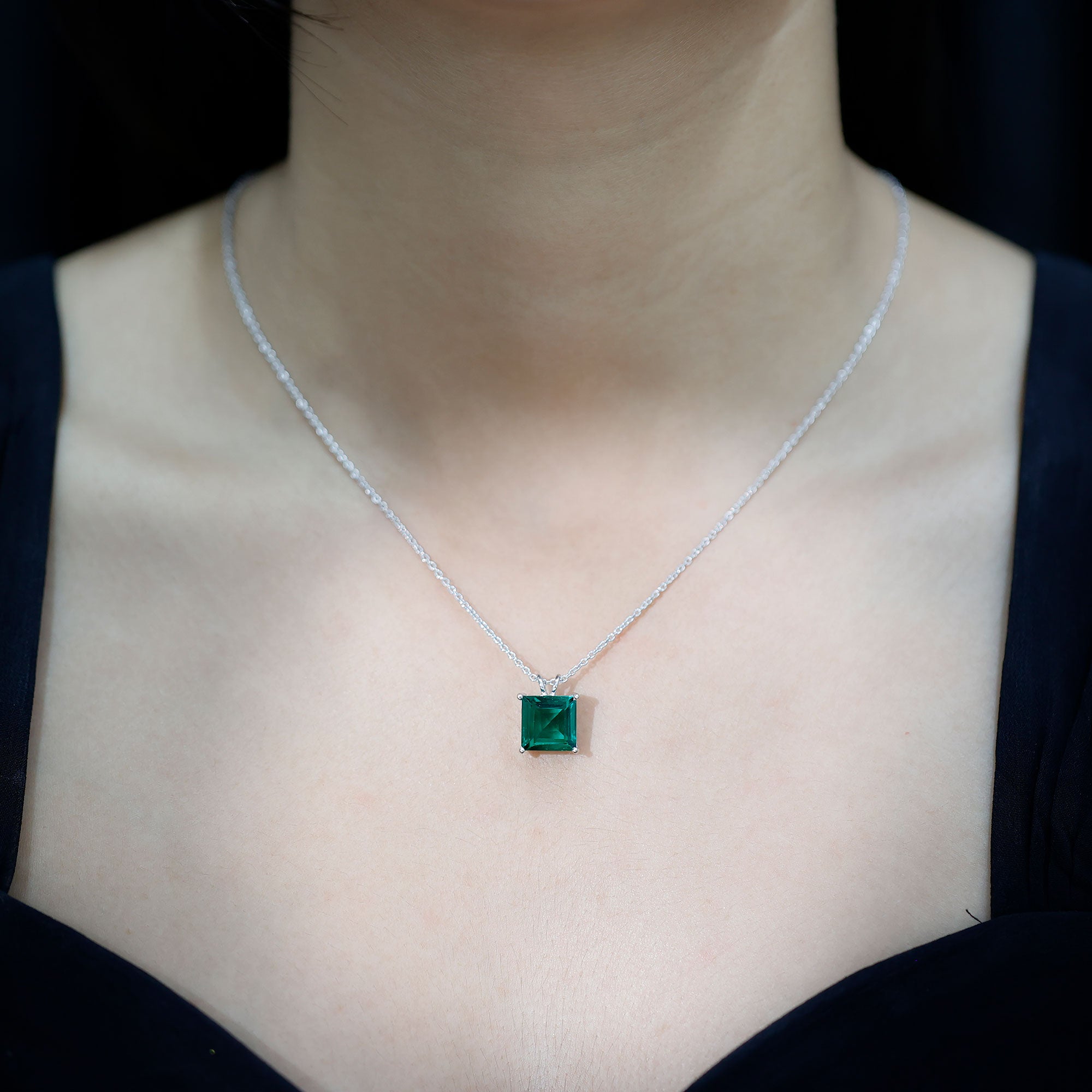 Express your affection to your loved one with this exceptionally Lab Created Emerald Pendant. It features a sparkling 10 MM Princess Cut Lab Created Emerald securely placed in Basket Setting. The Promise Necklace features a unique design that behold charm and desirability, which makes it an extraordinary piece of jewelry. The Solitaire Pendant makes a beautiful gift that can be treasured for years. It comes in an elegant jewelry box, ready to give to someone special or to enjoy for yourself. The bright green shine of the princess cut emerald catches the eye and brings compliments with every wear, making you feel confident and stylish. Perfect for anyone who loves jewelry with both beauty and meaning, this Emerald Green Necklace adds a soft touch of charm to everyday outfits and makes special moments feel even brighter. Its solitaire and classic design ensures it stays a favorite piece, no matter the occasion.