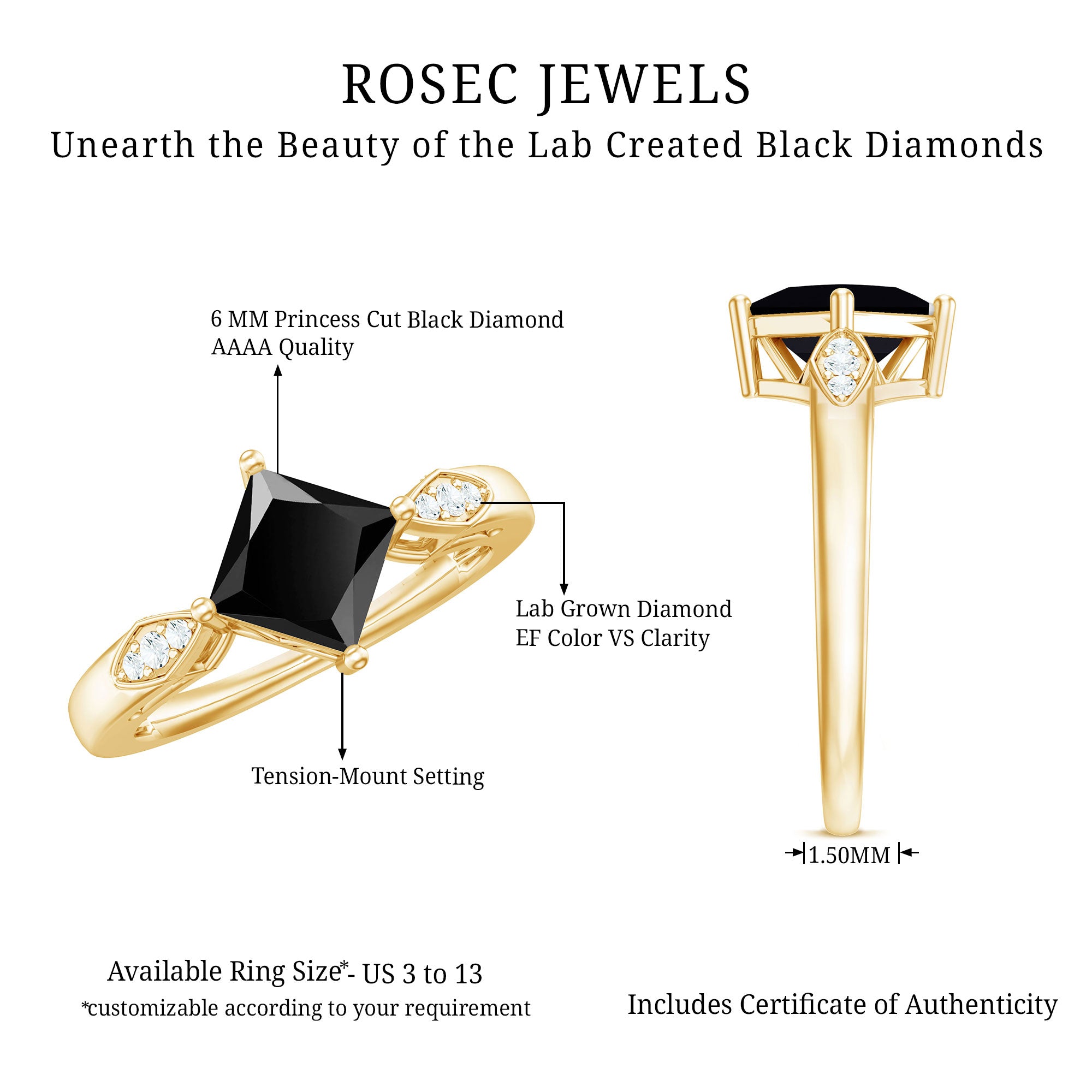 Confess everlasting love with this stunning Solitaire Promise Ring. This exquisite piece is a testament to timeless elegance, featuring a 6 mm Princess Cut Lab Created Black Diamond, diagonally set in Prong Setting. Meticulously crafted, the ring symbolizes commitment and sophistication. Set in a delicate band, the dark allure of Aaaa Quality Black Diamond is enhanced by sparkling Ef-Vs Quality round shape White Lab Grown Diamond gemstones, creating a captivating contrast. Elevate your promise with this Black Diamond Ring made from Rosec Jewels, where quality and style converge to define exquisite beauty and enduring commitment.