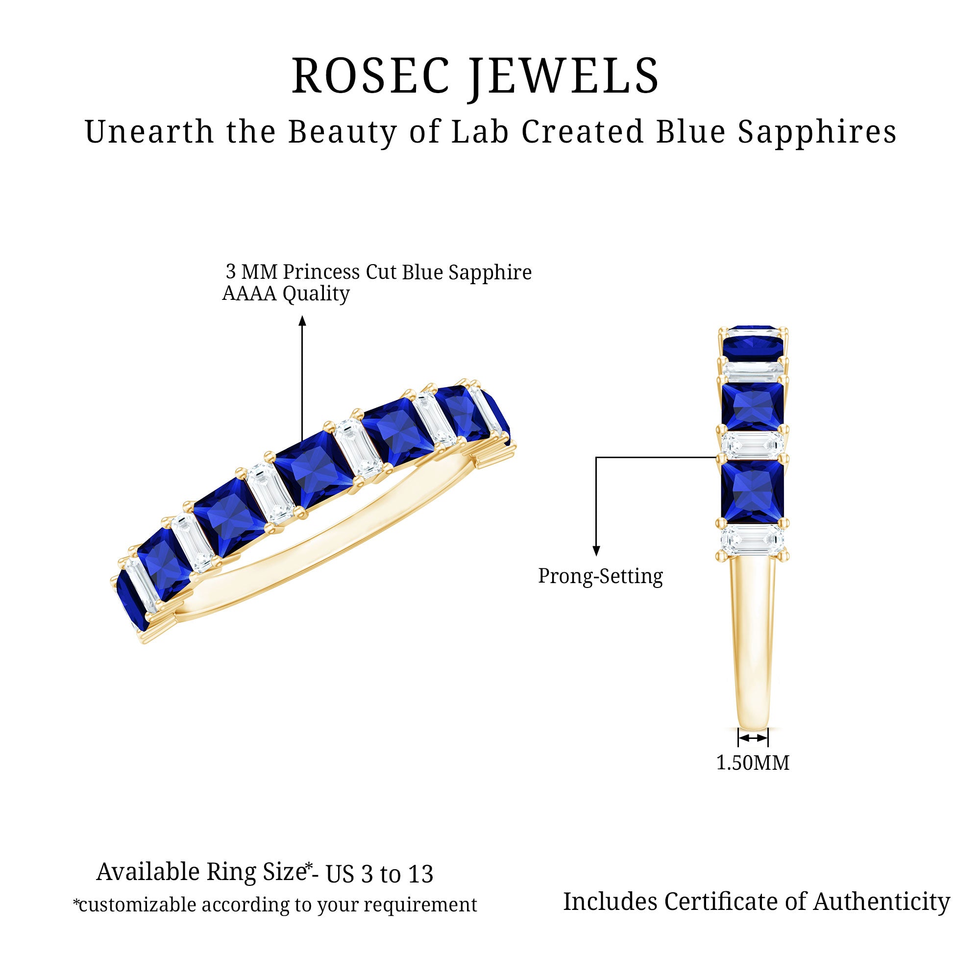 Princess Cut Lab Grown Blue Sapphire Half Eternity Ring with Diamond