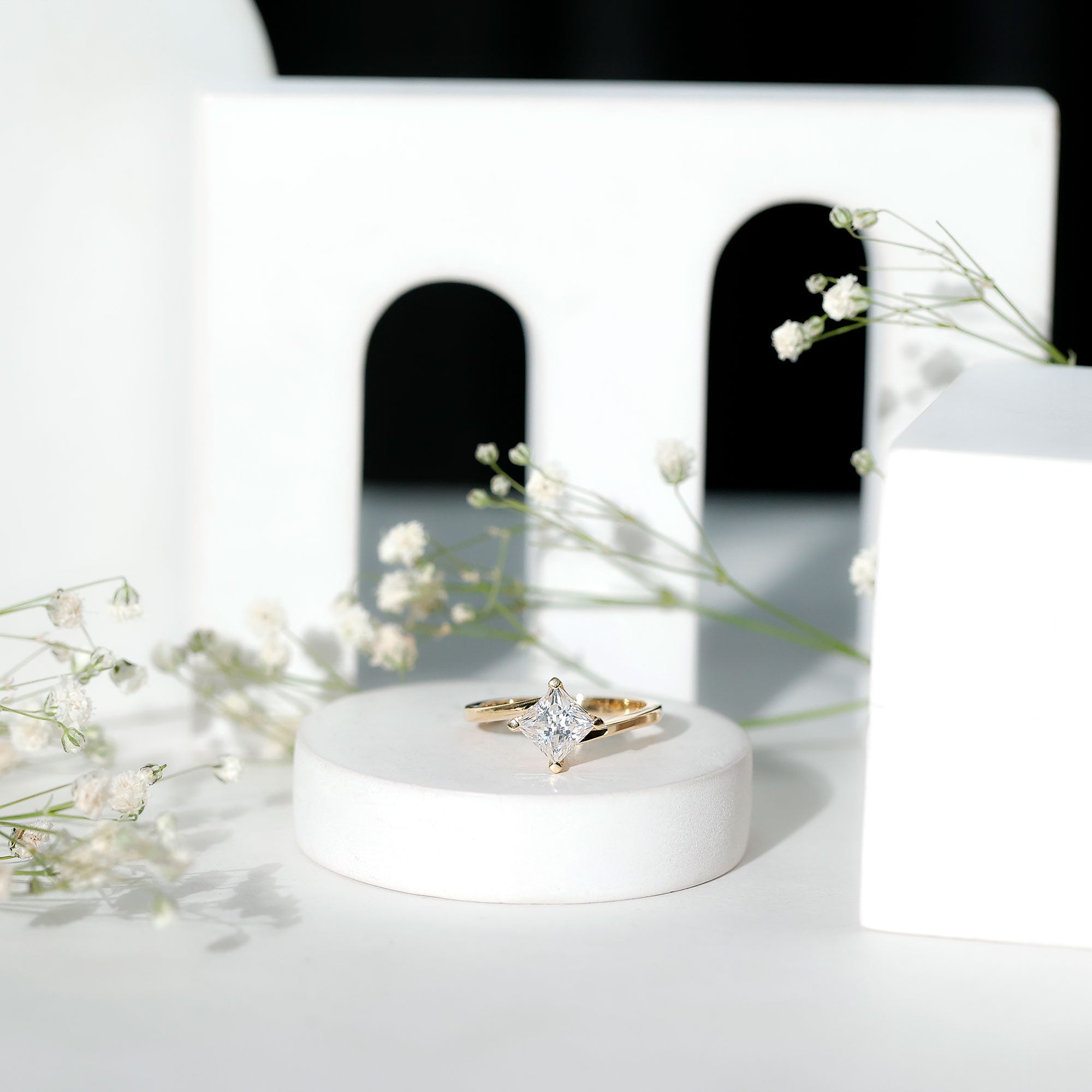 Modern, elegant, and effortlessly stylish, this Lab Grown Diamond Engagement Ring is made for the woman who loves a unique twist on classic design. Featuring a striking 6 MM Princess Cut Lab Grown Diamond at the center in Diagonal Prong Setting, this Bypass Engagement Ring shines with bold sparkle and timeless beauty. The Bypass Band gently curves around it, symbolizing two paths coming together as one. The Bypass Design not only adds a modern feel but also brings a graceful flow to the ring, making it look refined from every angle. Whether you are marking a special milestone or simply want a meaningful piece to wear every day, this Square Engagement Ring is full of charm and significance. This Solitaire Engagement Ring is available in US ring sizes 3 to 13 to ensure a perfect fit and comes in a beautiful jewelry box, ready to make a lasting impression. A perfect blend of beauty and meaning, designed for the one who finds beauty in every detail.