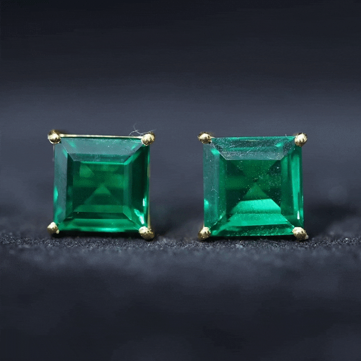 Show your Gratitude in a special and different style by gifting this Solitaire Stud Earrings. This Stud earrings feature with Princess Cut Created Emerald set as Solitaire in a Four Prong Setting.