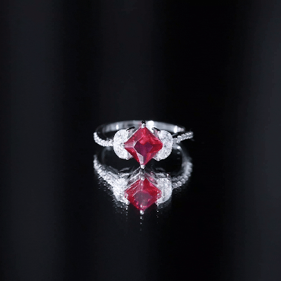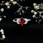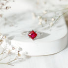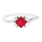 Princess Cut Lab Grown Ruby Solitaire Ring with Diamond