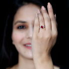 Embrace queenly elegance with this Classic Solitaire Ring. Embellished with a Princess Cut Lab Created Ruby gemstone set diagonally in Prong Setting with sparkling Round and Marquise Shape Diamond gemstones studded above the mesmerizing Bypass Shank.