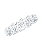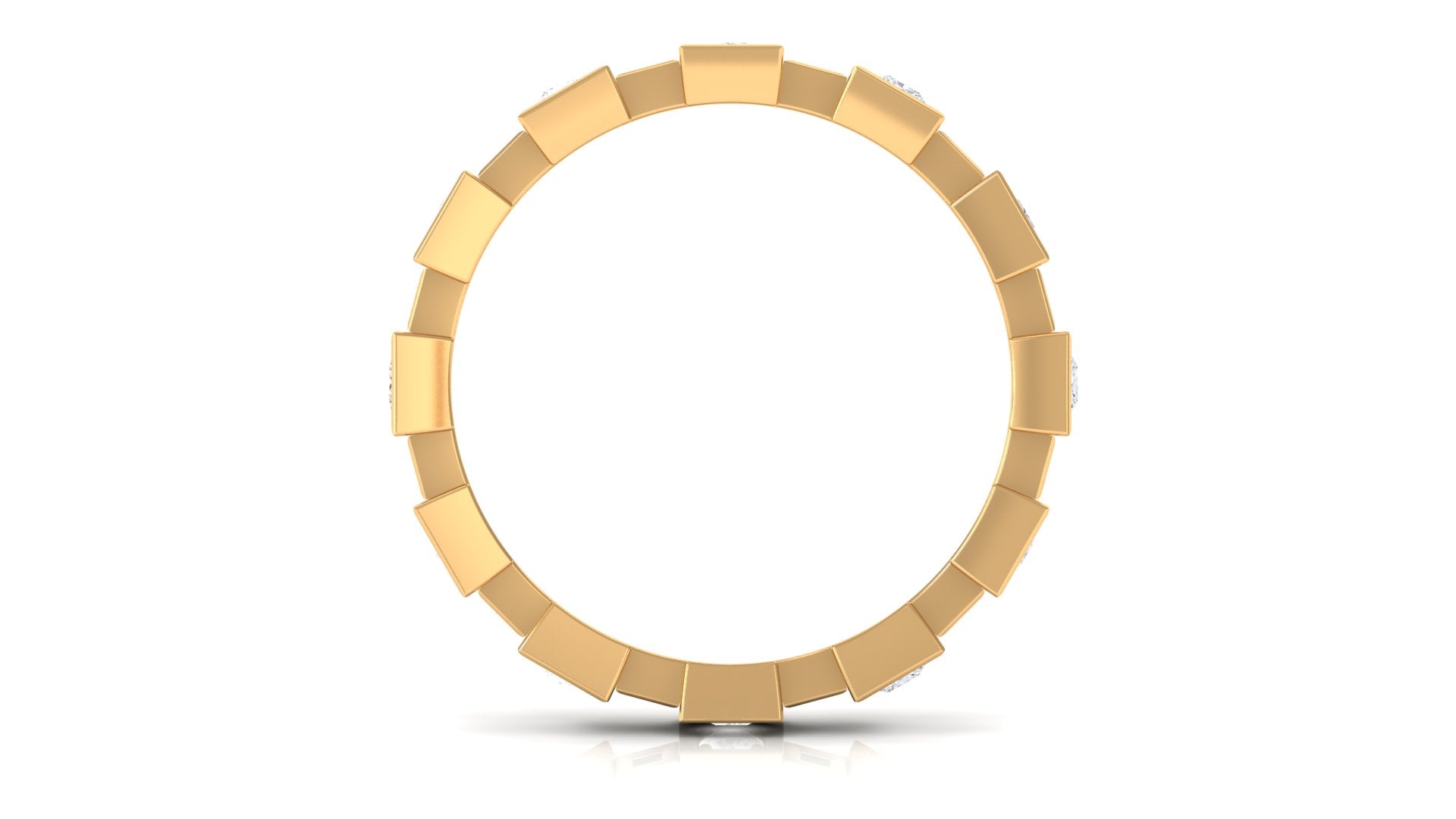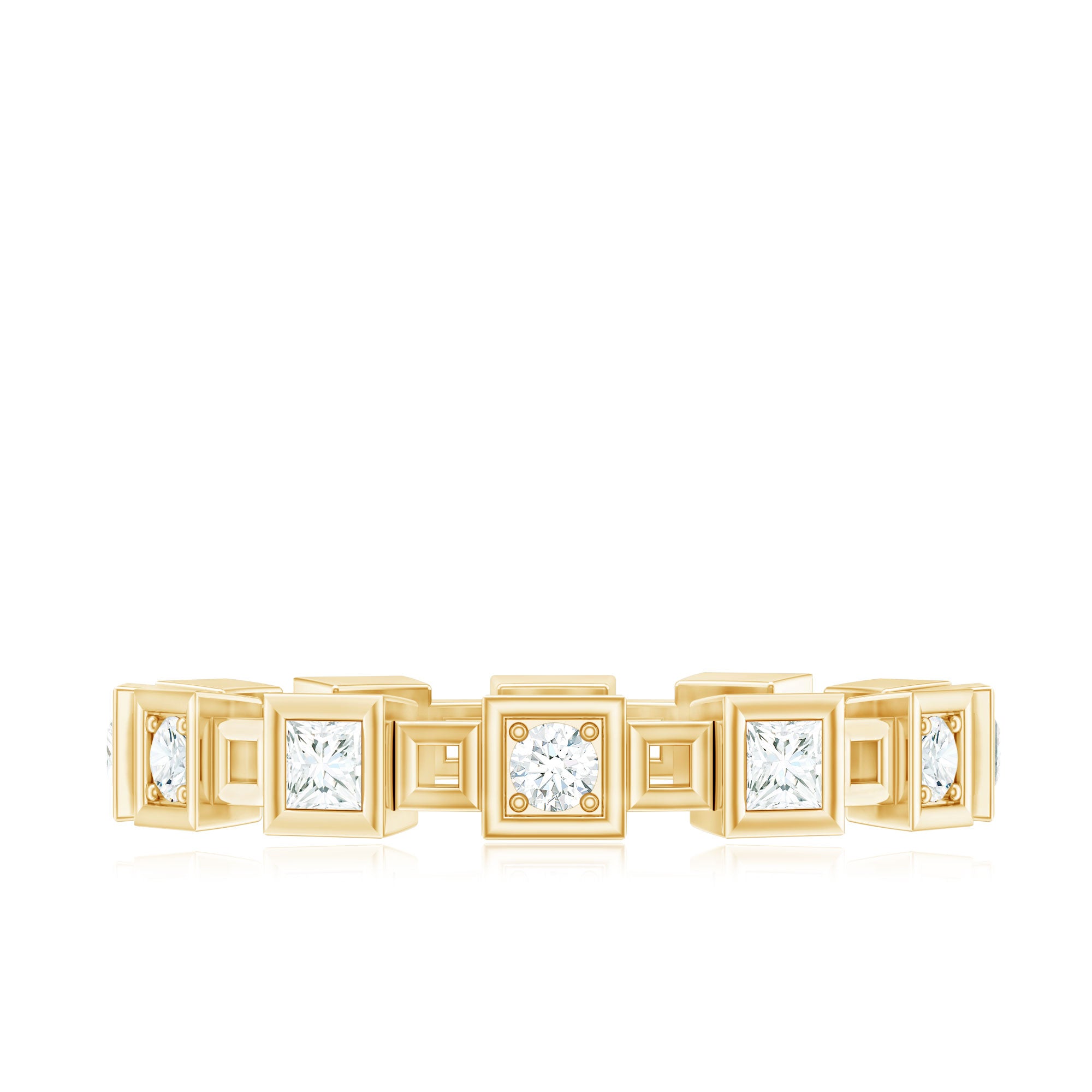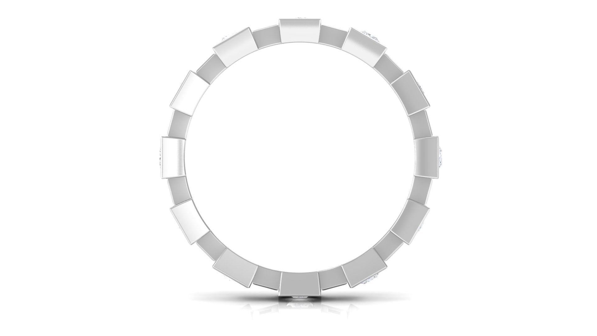 Bold, unique, and beautifully modern, this Moissanite Eternity Band is a true statement piece. Featuring an alternating pattern of princess and round cut moissanite stones, each set within square frames, this Wedding Band Ring brings together clean lines and eye-catching sparkle in a stunning geometric design. Whether you wear it as a wedding band, an anniversary gift, or a Moissanite Stackable Ring with a twist, it is sure to stand out. The open square motifs in between the stones add dimension and airiness to the overall design, giving it a lighter, architectural feel despite its bold presence. This Geometric Wedding Band is perfect for someone who appreciates a sleek, modern aesthetic but still wants that timeless sparkle. It is minimal, yet intricate. Refined, yet expressive. The structured layout gives the piece a strong identity, making it ideal for stacking with other rings or wearing solo as a signature look. The craftsmanship ensures each D-VS1 quality moissanite is set securely and precisely, catching the light at every angle without being overly flashy. Whether you are marking a special moment or simply treating yourself to something striking and meaningful, this contemporary band blends contemporary design with classic brilliance in the most effortless way.