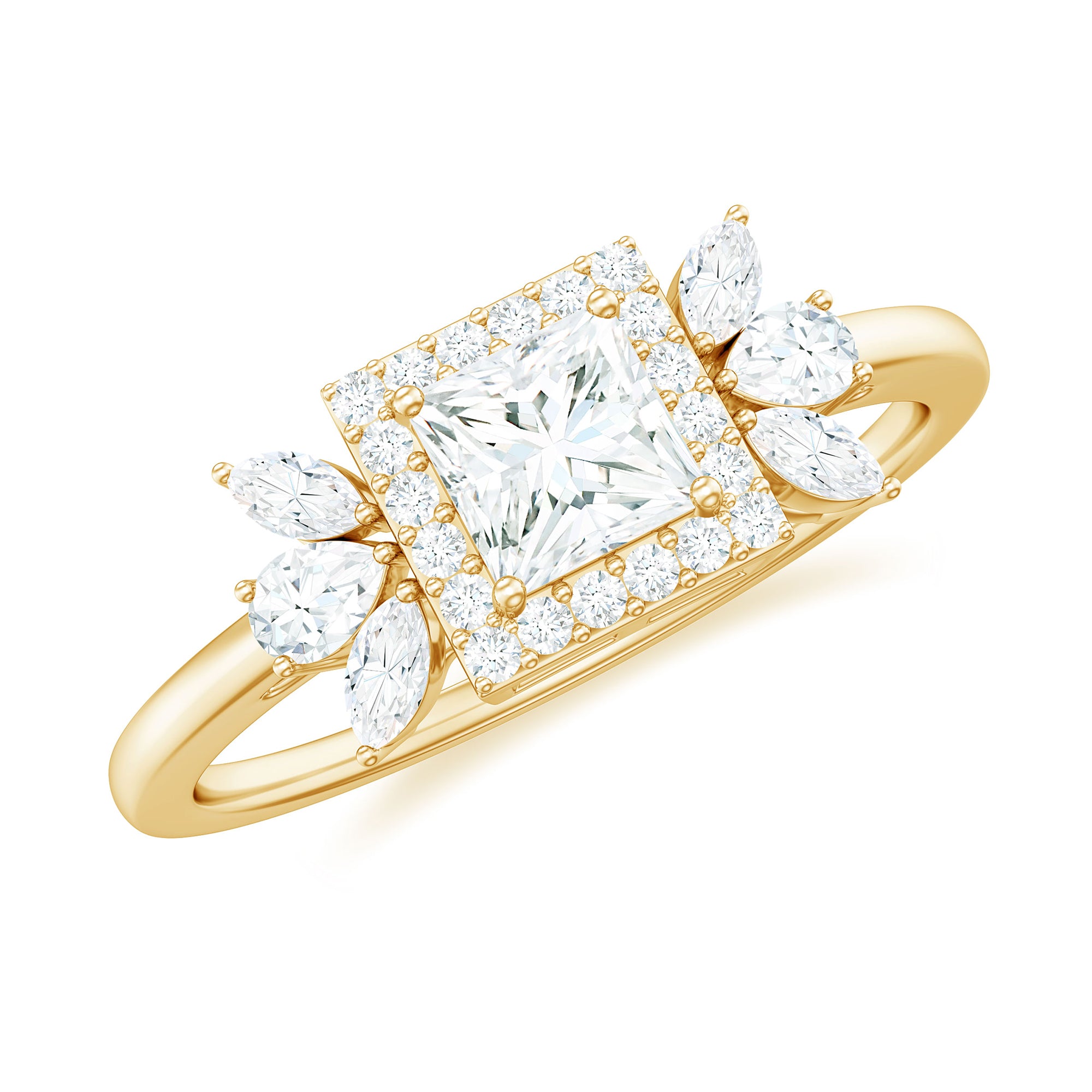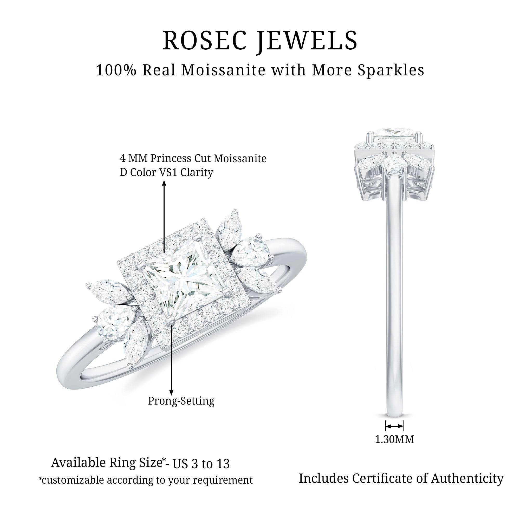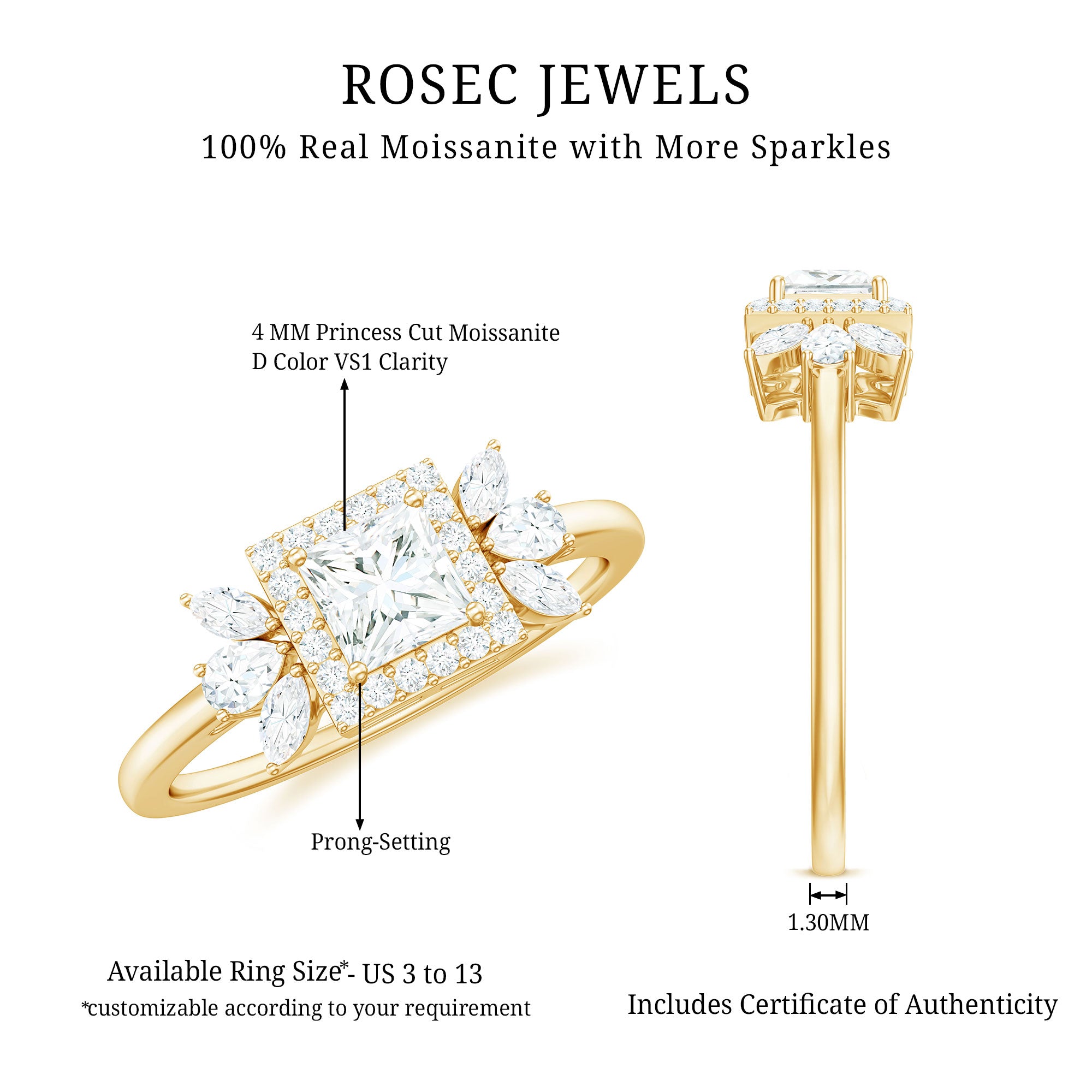 Princess Cut Moissanite Halo Engagement Ring with Certificate