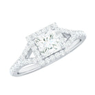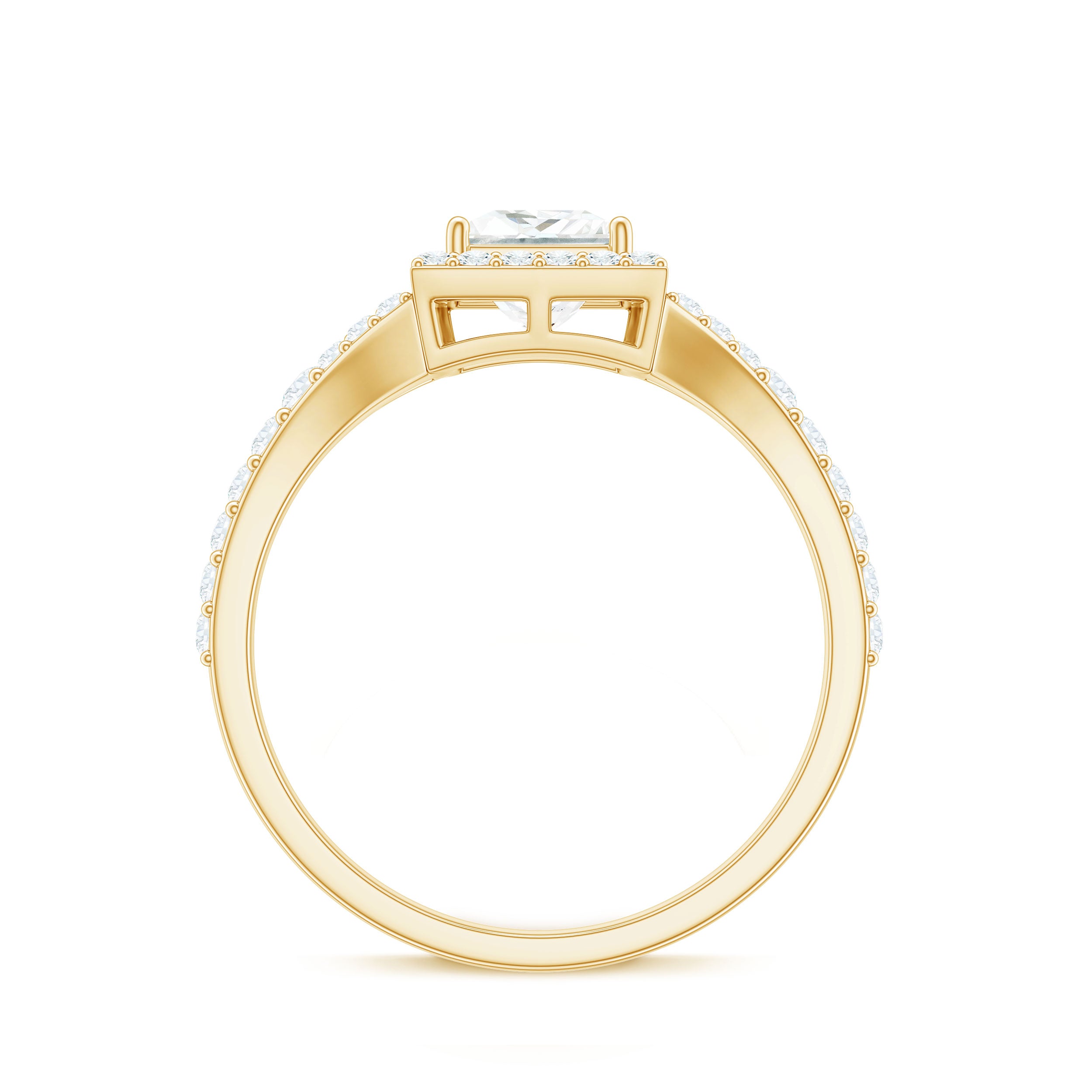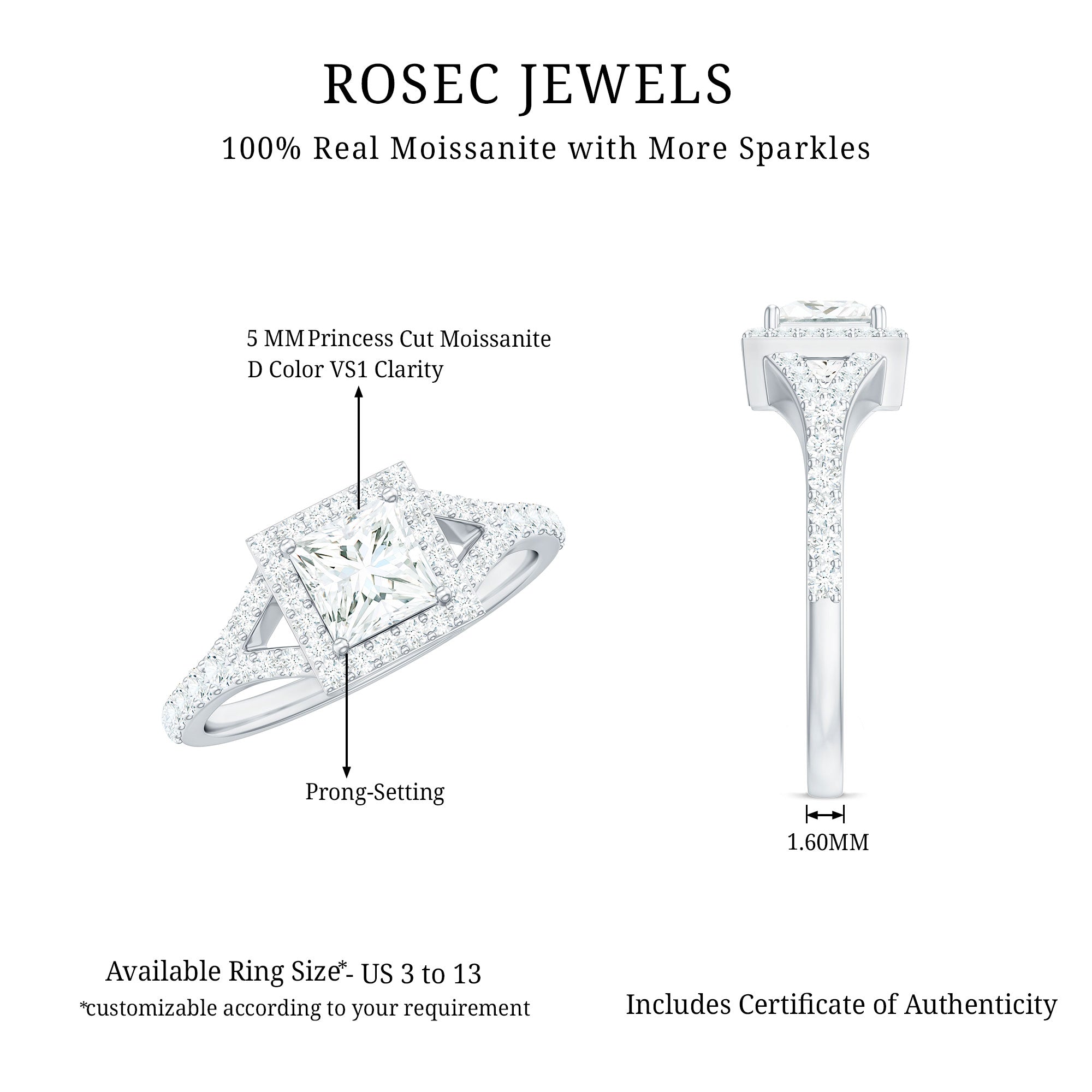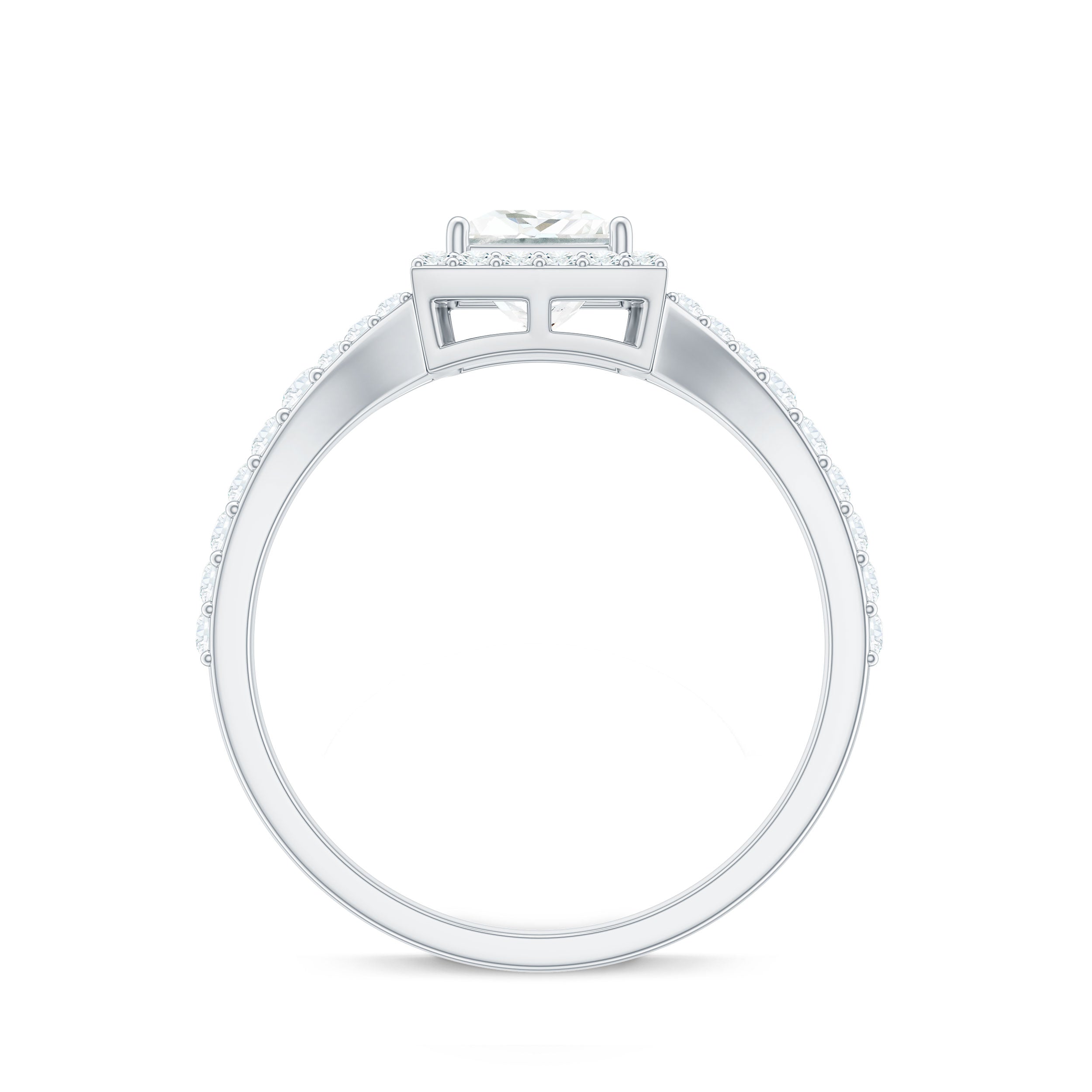 Princess Cut Moissanite Halo Engagement Ring with Split Band