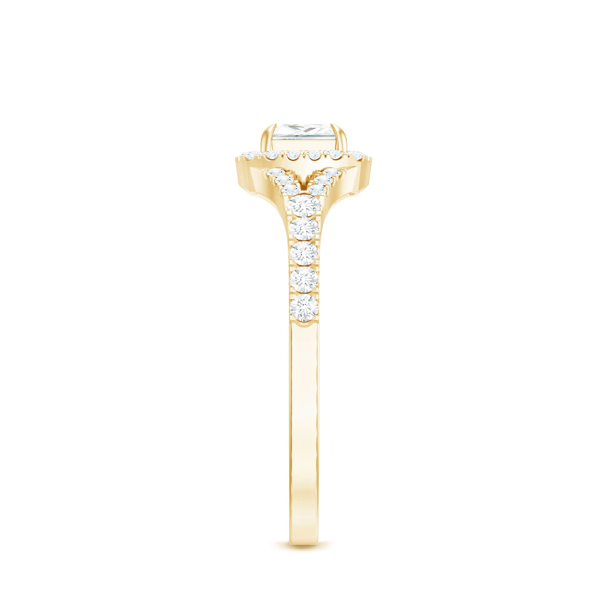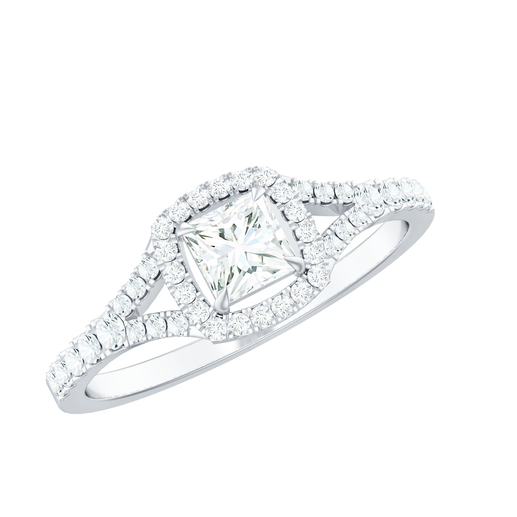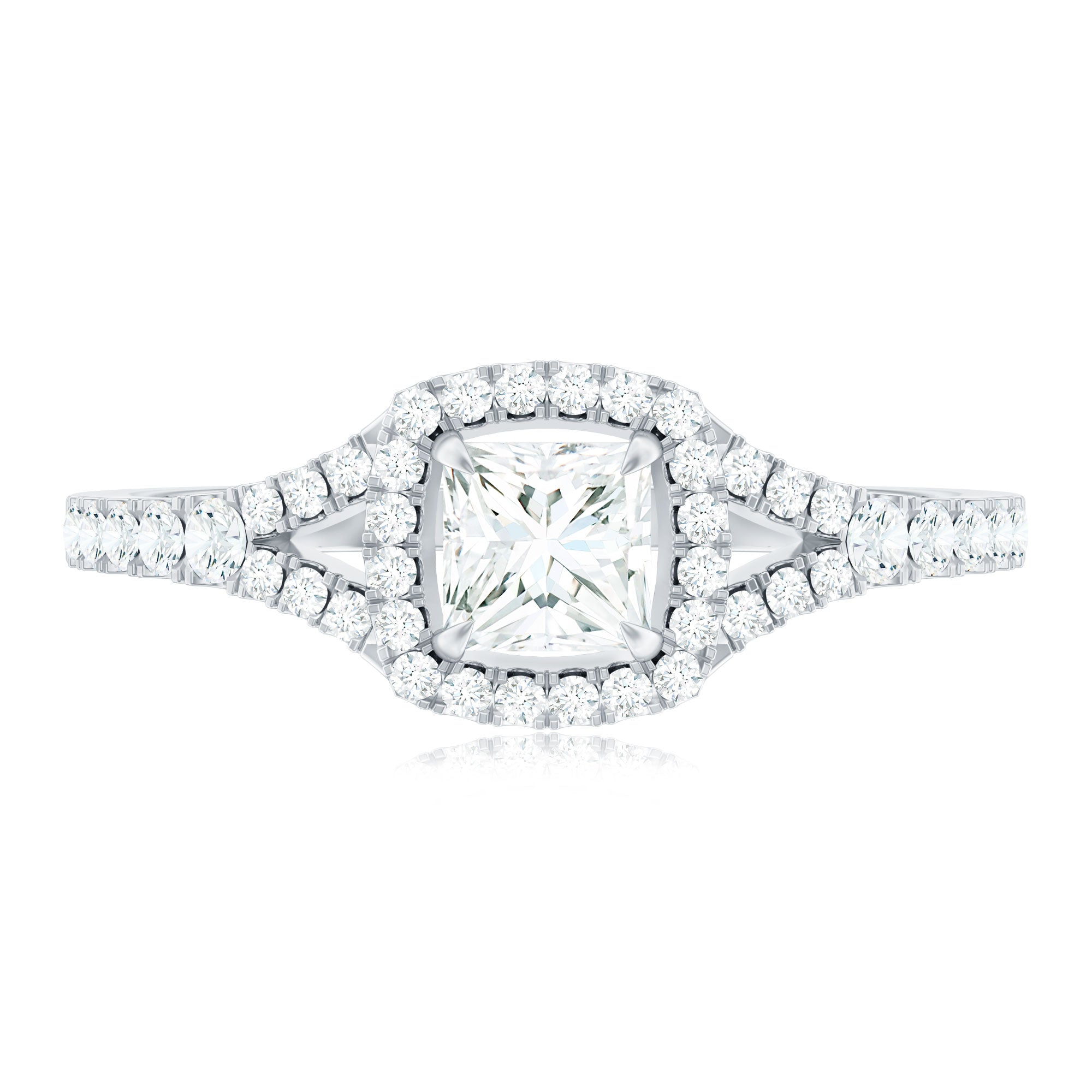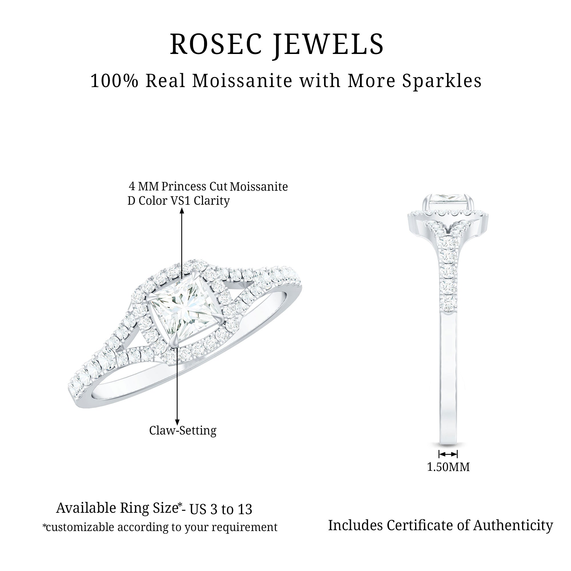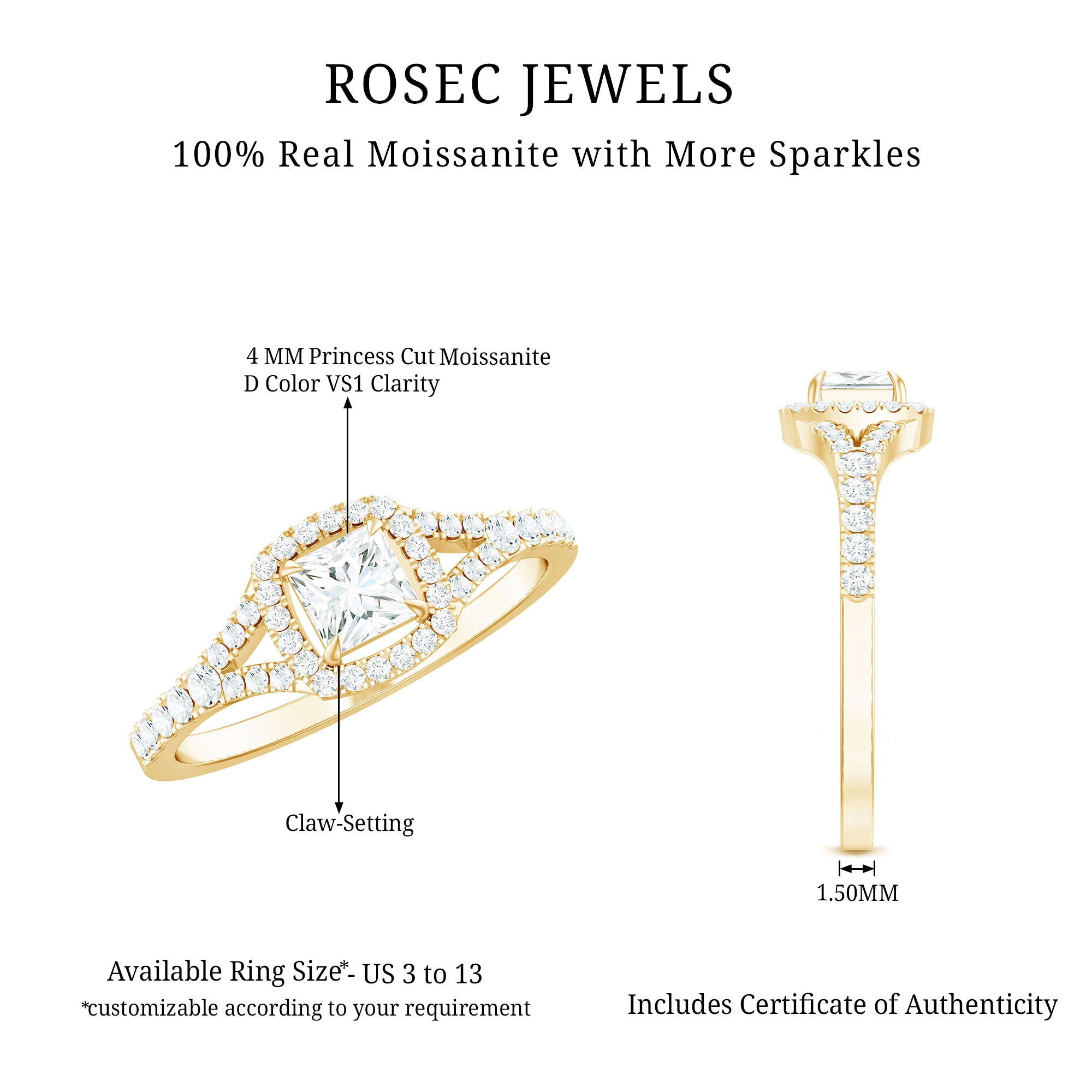 Princess Cut Moissanite Halo Engagement Ring with Split Shank