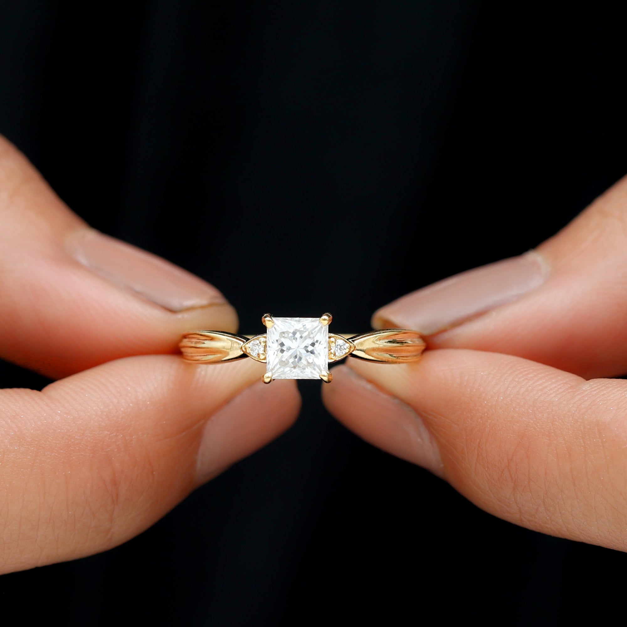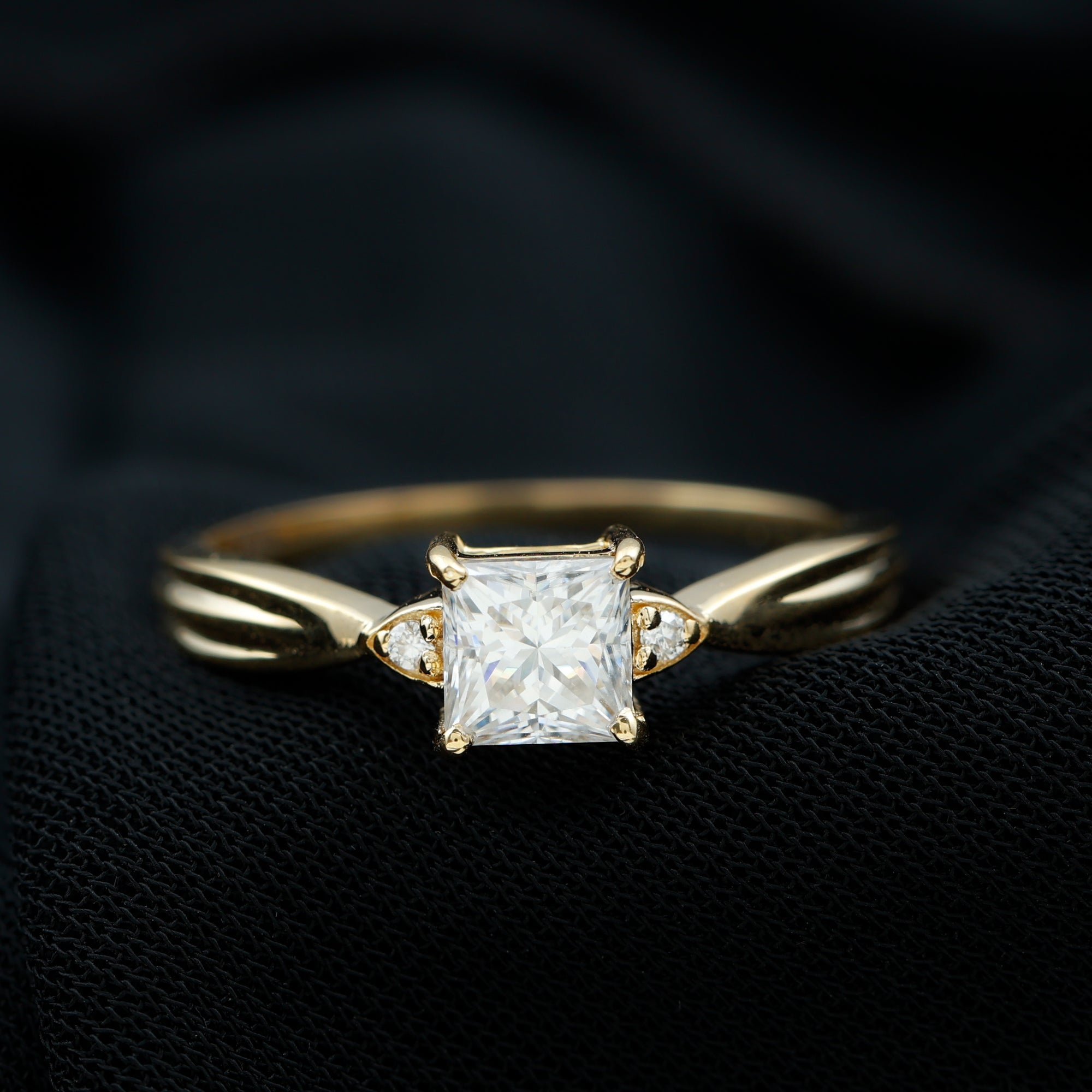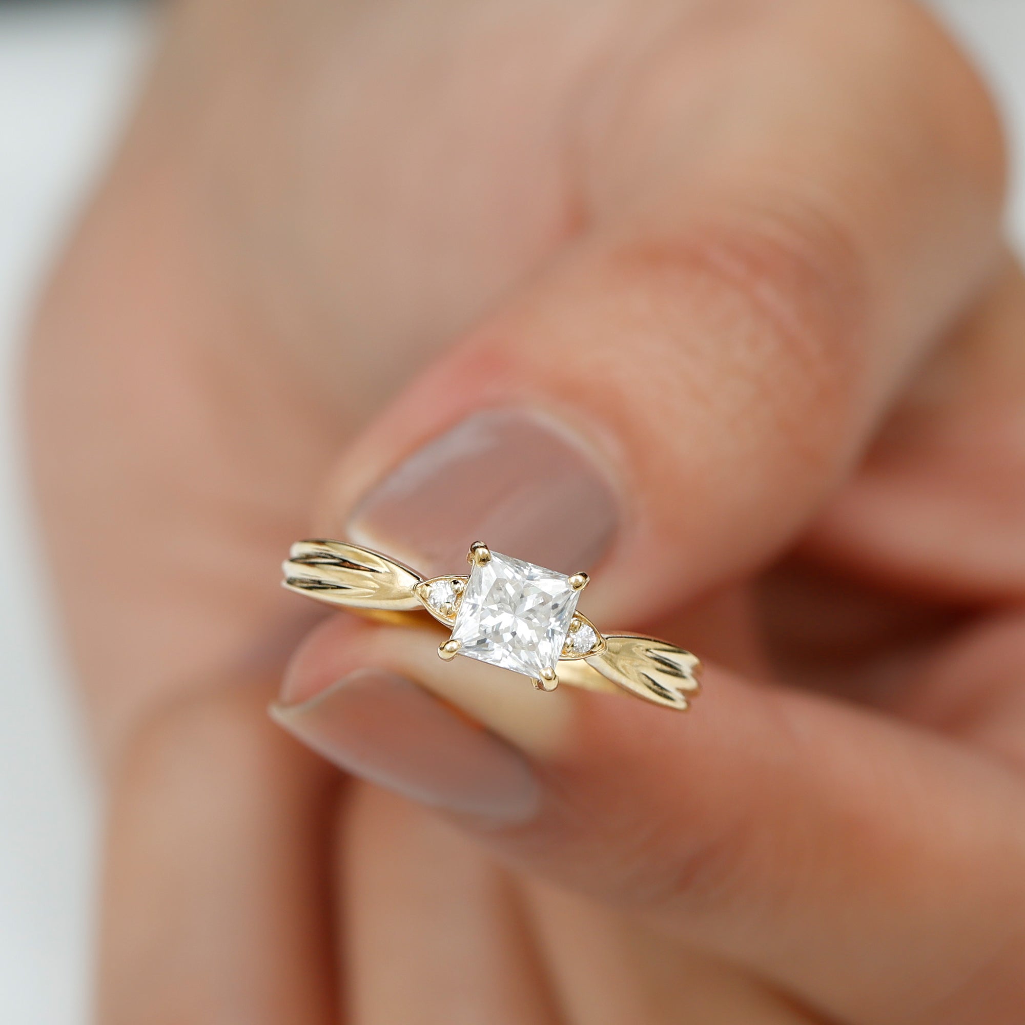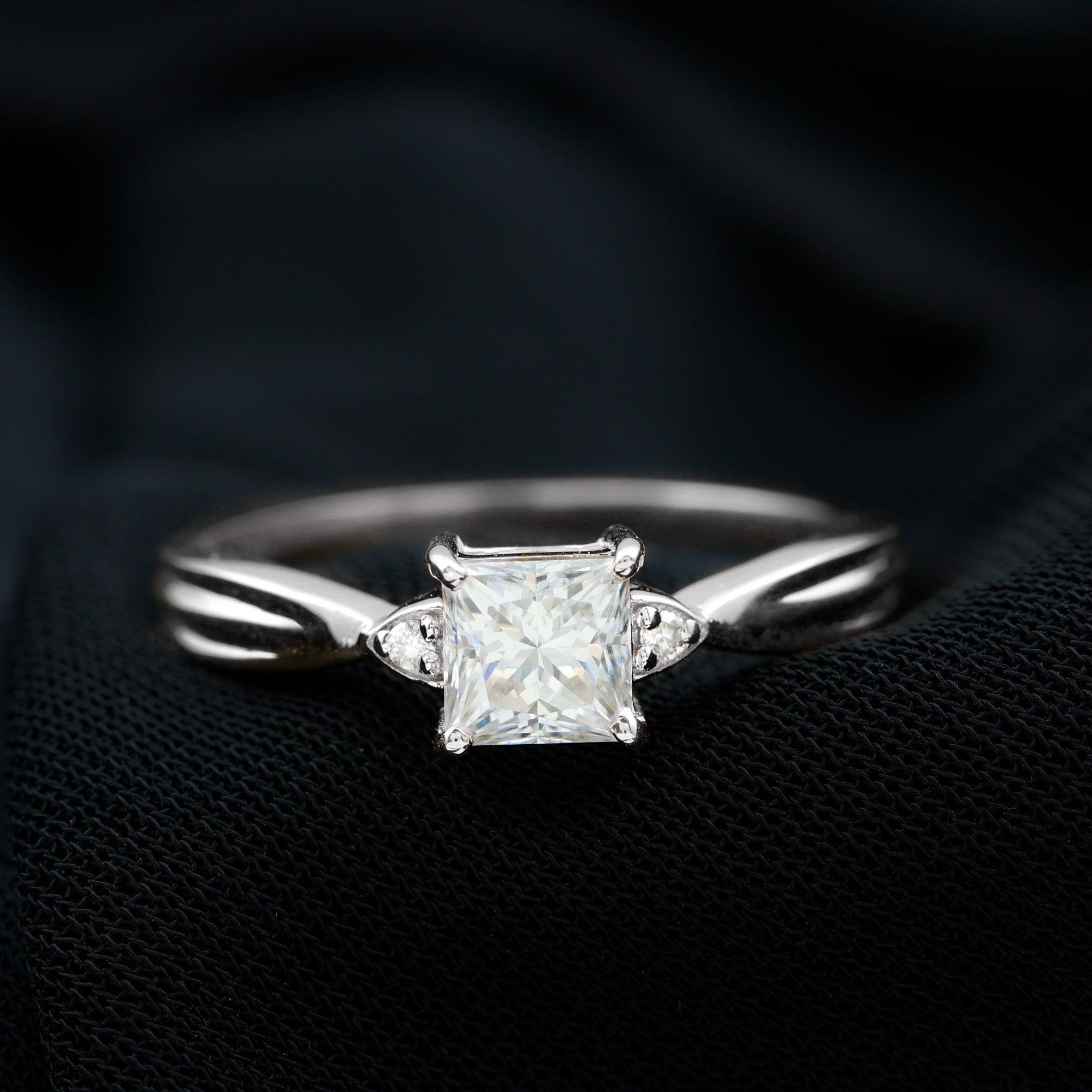 Princess Cut Moissanite Simple Solitaire Engagement Ring for Girlfriend