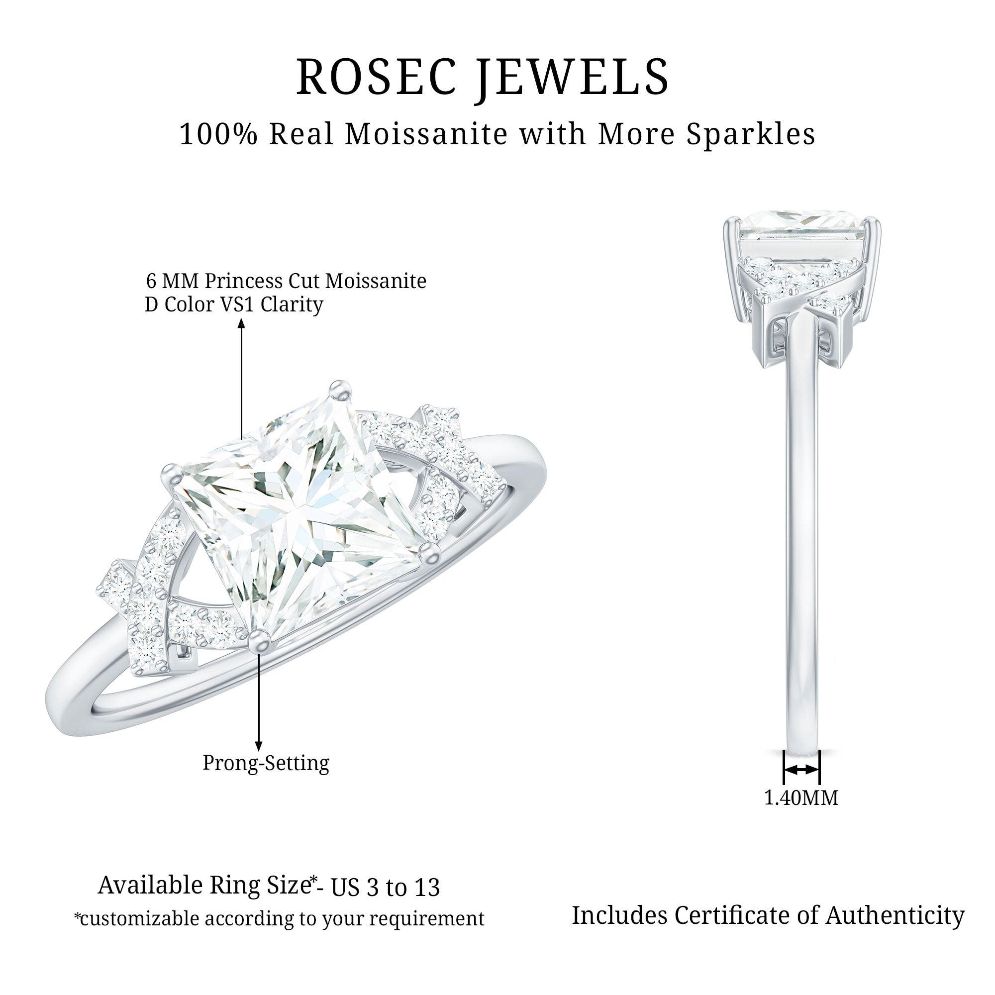 6X8 mm Princess Cut Moissanite Solitaire Engagement Ring