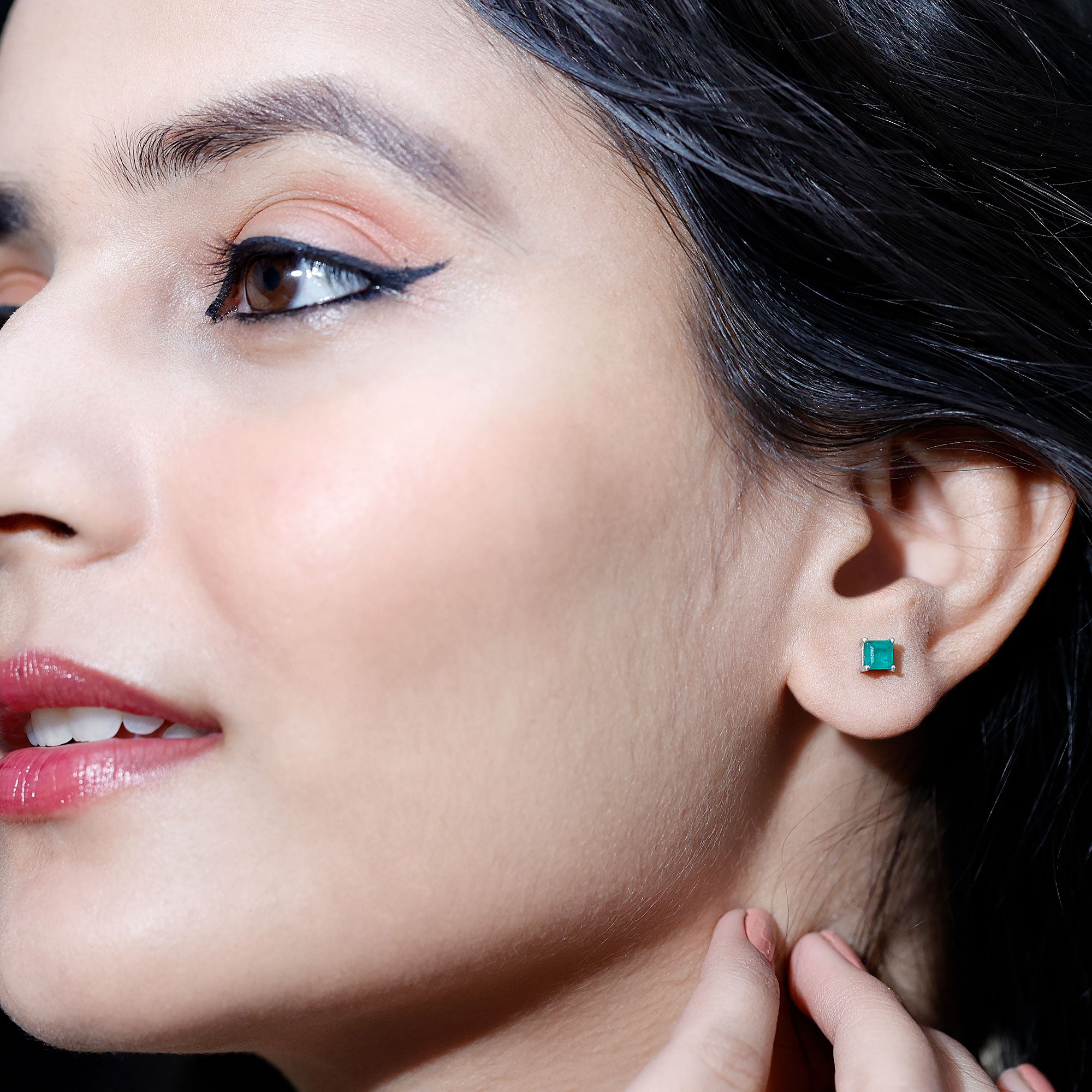 Make your loved ones day with our stunning Solitaire Stud Earring featuring a 5mm Princess Cut Emerald. Crafted with elegance and shine in mind.