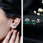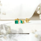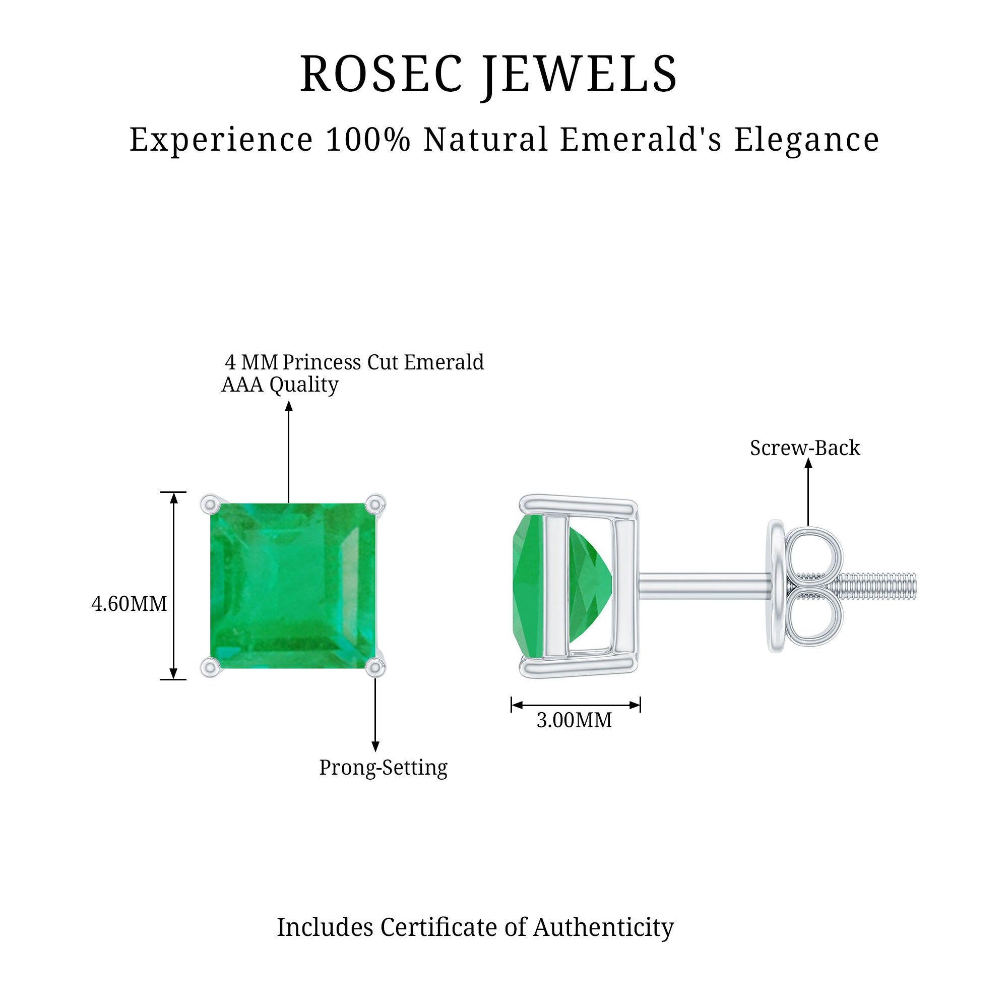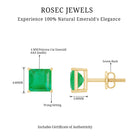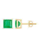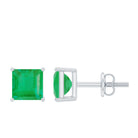 Princess Cut Natural Emerald Simple Solitaire Stud Earrings
